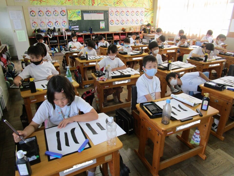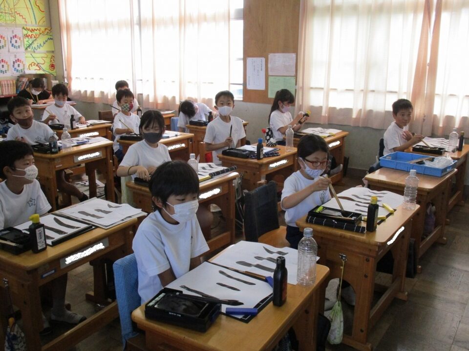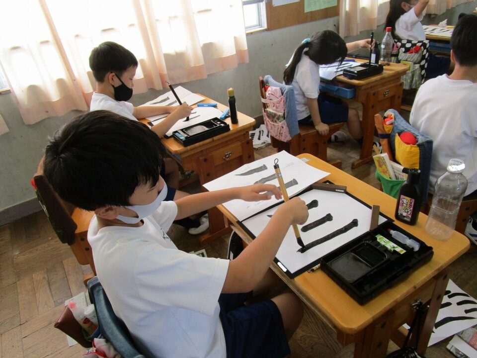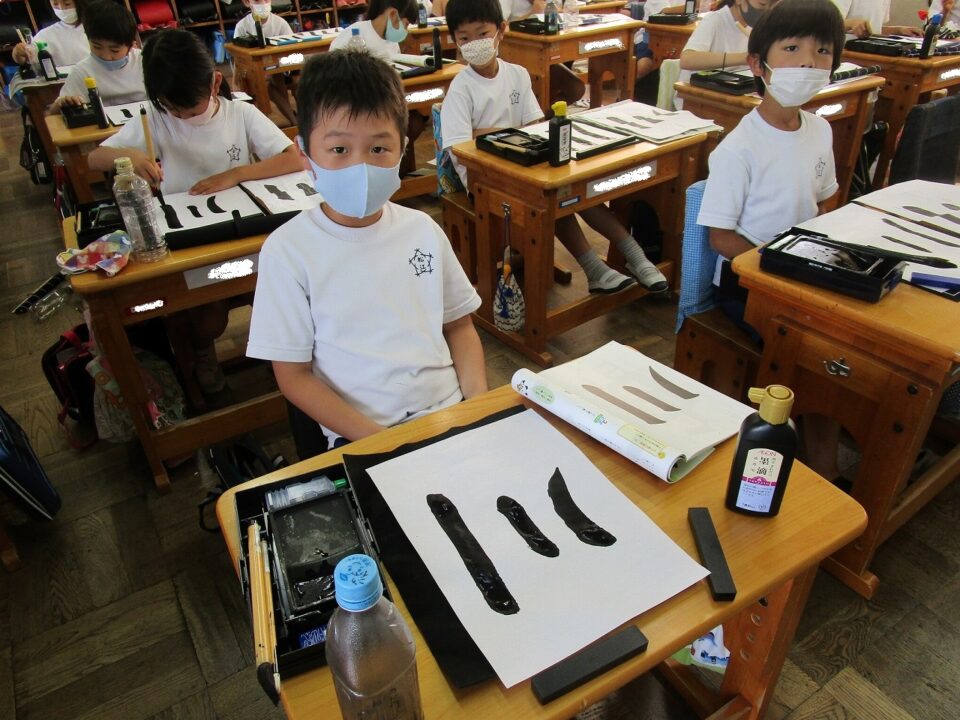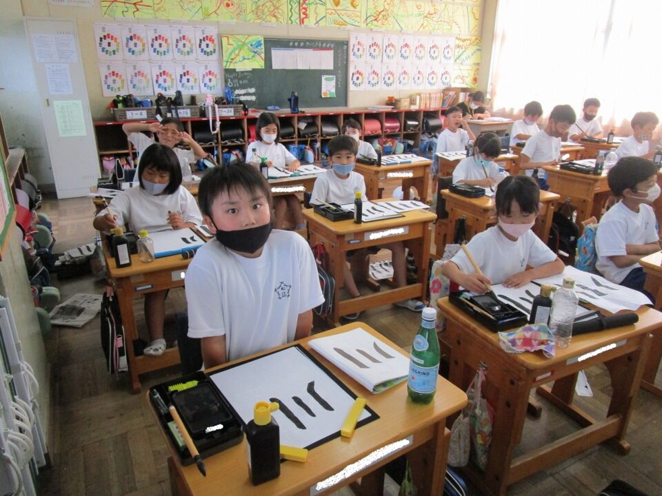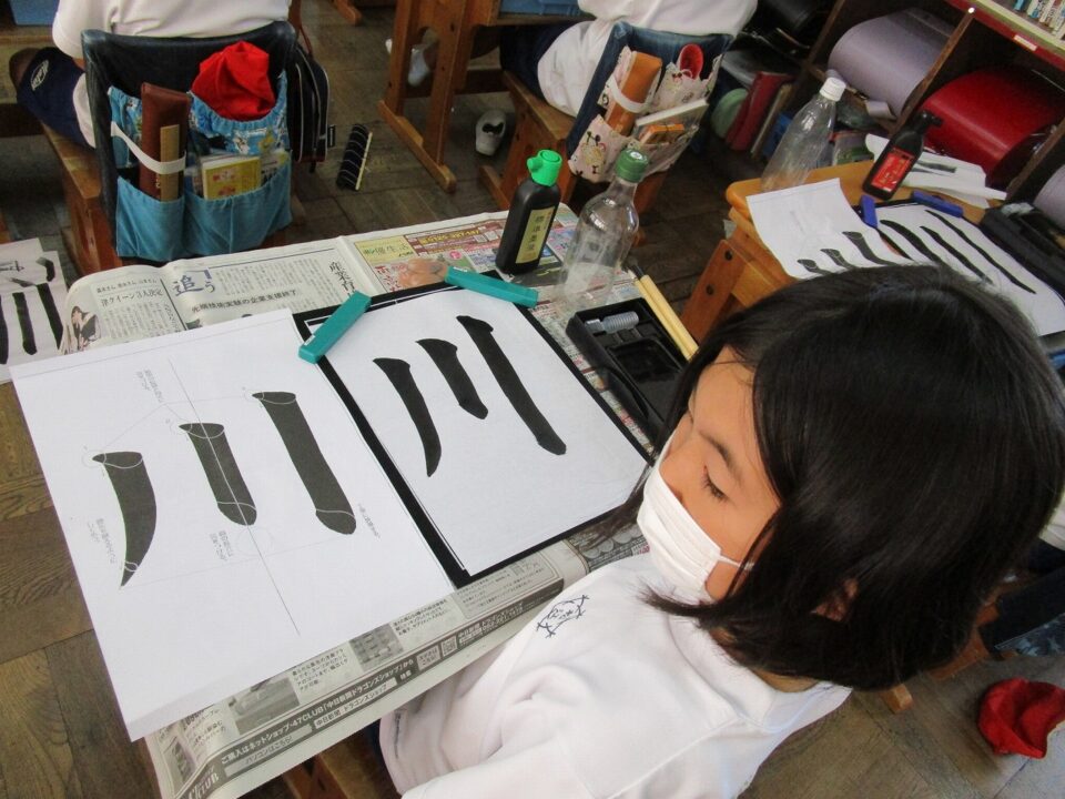 隣りのクラスは、書写でした。静か~~~~に集中して「川」という字を書いていました。
