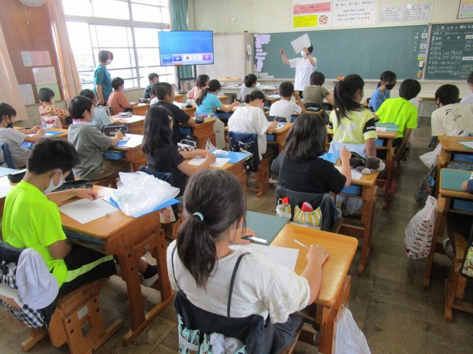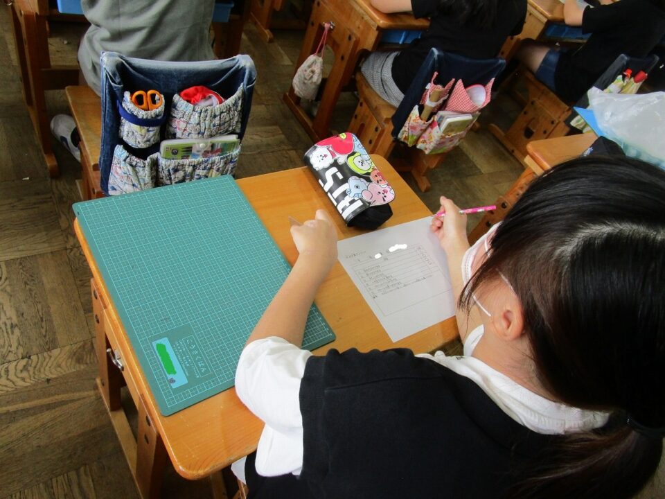 9月の水泳は、子ども10人に対して1人のインストラクターさんの水泳教室ですので、きめ細やかに教えていただけます。そのためにグループを編成するため、簡単なアンケートに答えてもらっています。今日は、5年1組では、水泳アンケートを行いました。