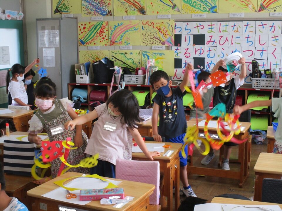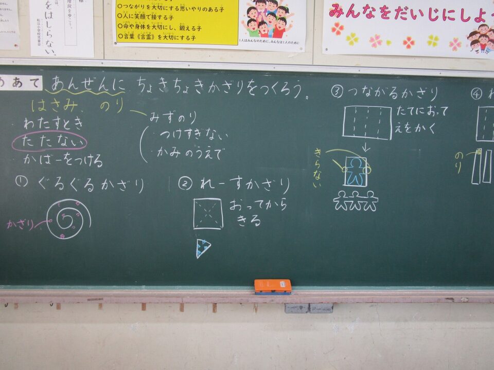 ホーム > 日々の活動の様子 / 2021年度 1年生(ねんせい)図工科(ずこうか) ちょきちょきかざり 1年生(ねんせい)の図工(ずこう)では、『ちょきちょきかざり』づくりに取(と)り組(く)んでいます。 1組(くみ)は、今日(きょう)からです。 「どんなかざりにしようかな~~?」 2組(くみ)は、2回(かい)めですのでほぼ完成(かんせい)してきました(^O^)/ シェアする Twitter でシェア はてなブックマークに保存 LINE でシェア Facebook でシェア Pocket に保存 Feedly で購読 関連投稿 2025年度 / 日々の活動の様子 しゃぼん玉 日々の活動の様子 / 2022年度 まつさかペットボトルロケット大会(たいかい) 日々の活動の様子 / 2020年度 給食(きゅうしょく)再開(さいかい)です。 日々の活動の様子 / 2022年度 修学旅行(しゅうがくりょこう)1日目(にちめ) ~出発(しゅっぱつ)~ 日々の活動の様子 / 2023年度 学習(がくしゅう)の様子(ようす) ~4年生(ねんせい)~ 日々の活動の様子 / 2020年度 We Love 弁当(べんとう)コンテスト6年(ねん) 前の投稿 今日(きょう)の給食(きゅうしょく) いかのさらさ揚(あ)げ・・・? 次の投稿 今日(きょう)の給食(きゅうしょく)はチキンカレー🐓/放送委員会(ほうそういいんかい)インタビュー