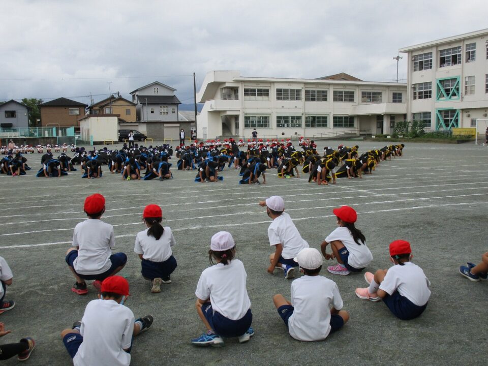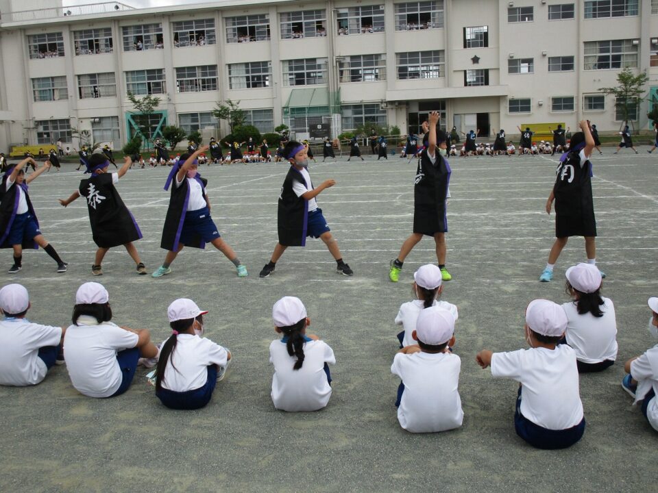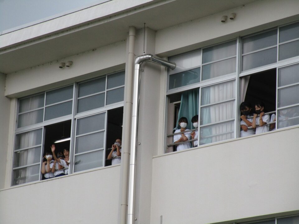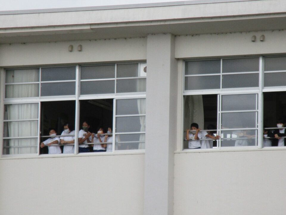 5.6年生ねんせいたちは、教室きょうしつから応援おうえんです。