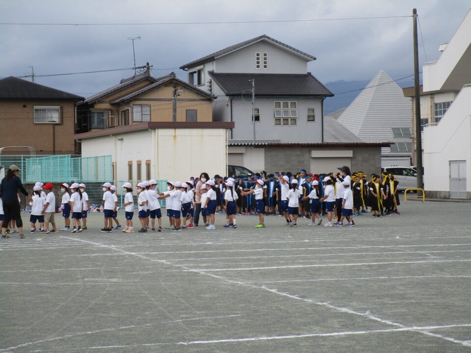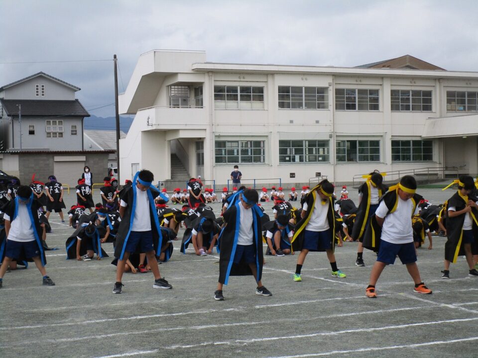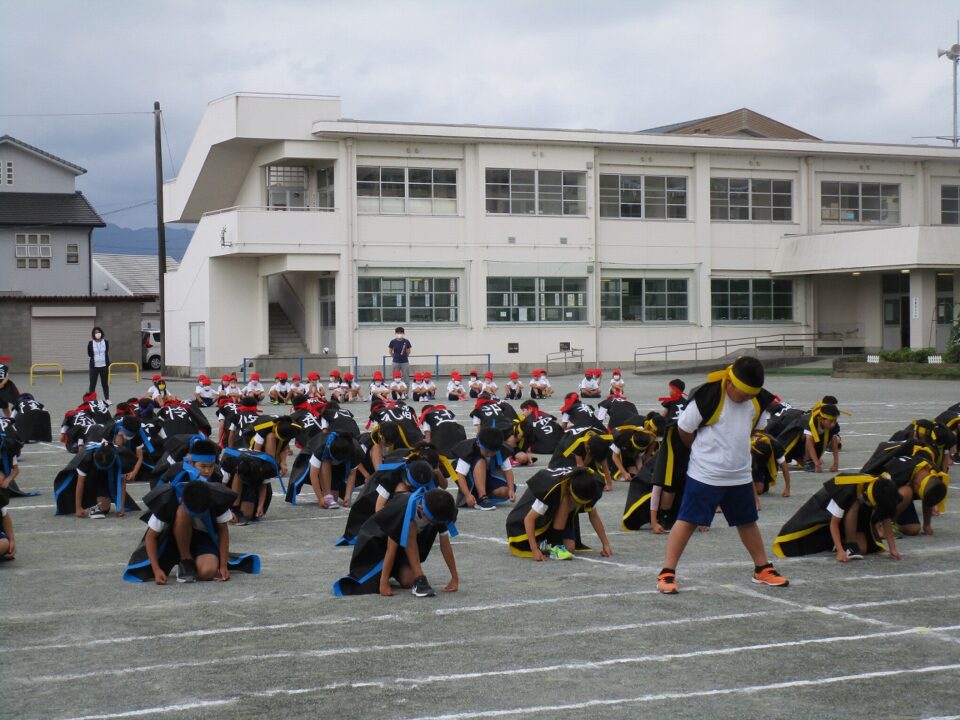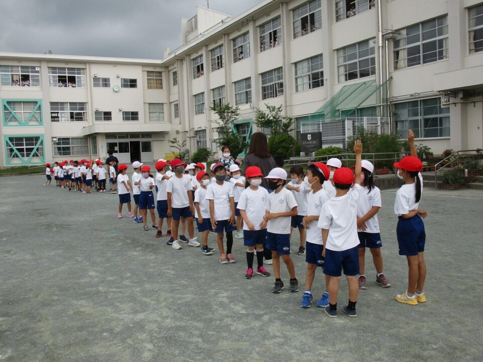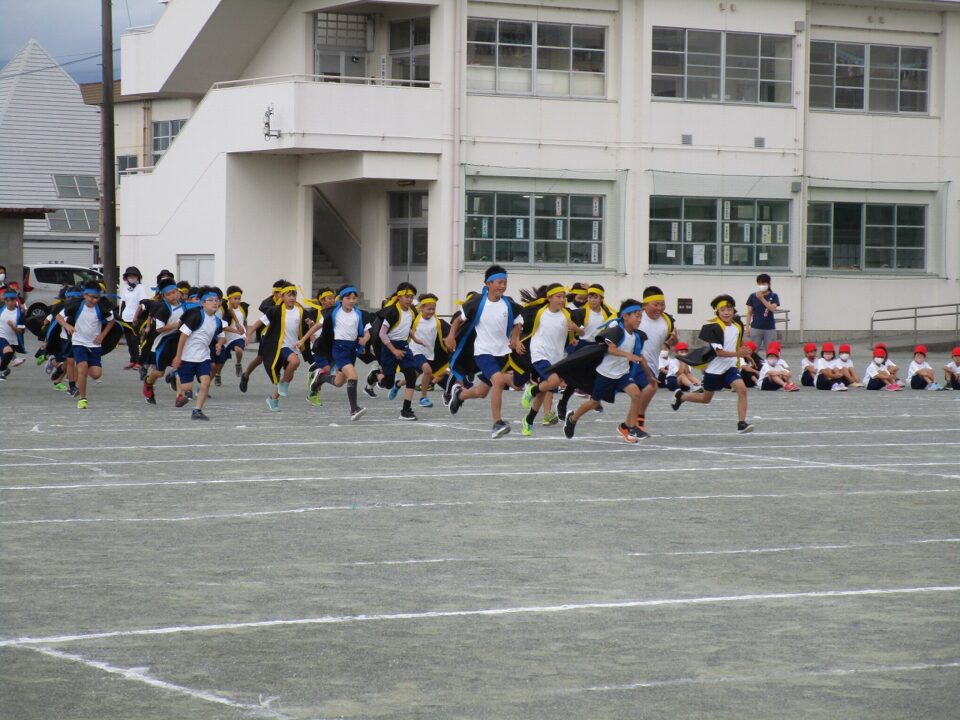 5.6年生ねんせいたちは、教室きょうしつから応援おうえんです。