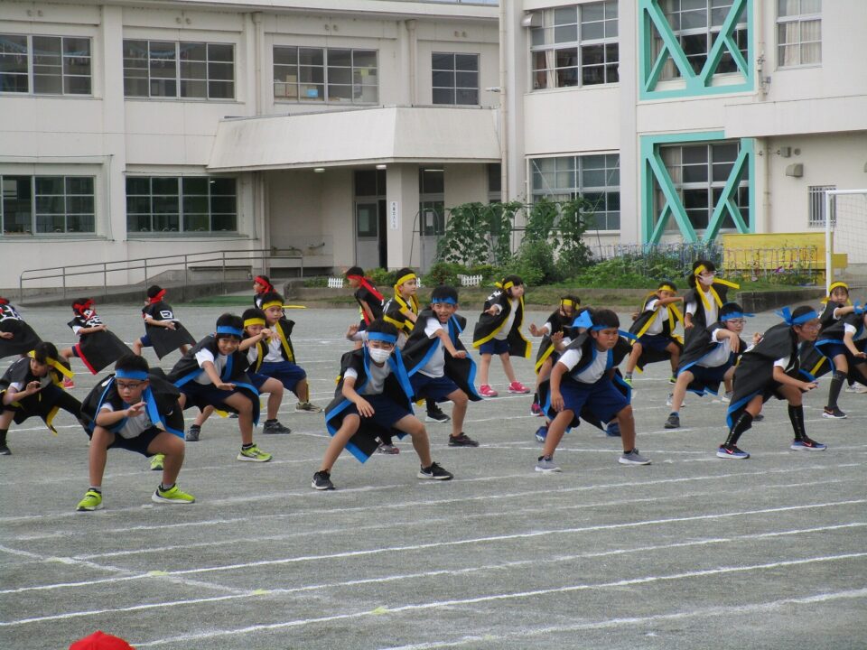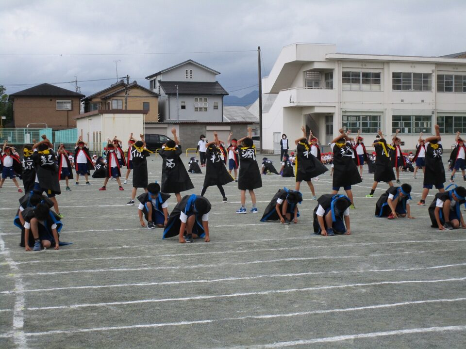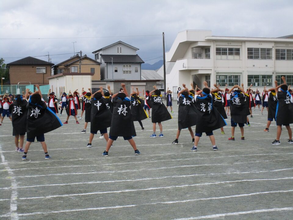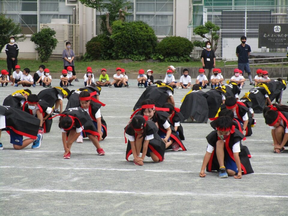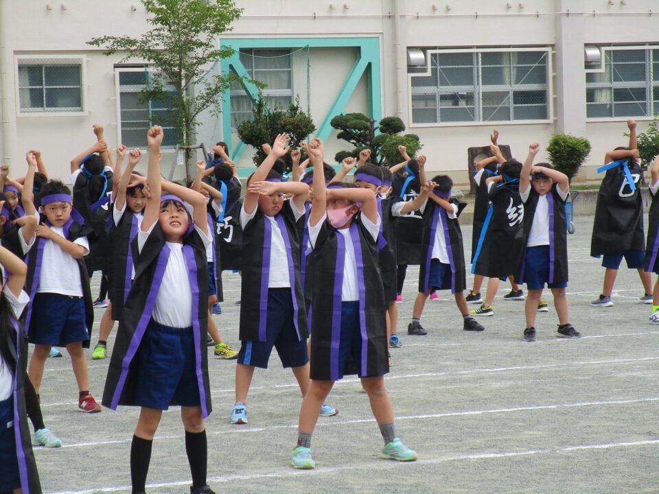 自分じぶん名前なまえ一文字ひともじ背中せなかにプリントした法被はっぴて、音楽おんがくわせて、披露ひろうしてくれました。