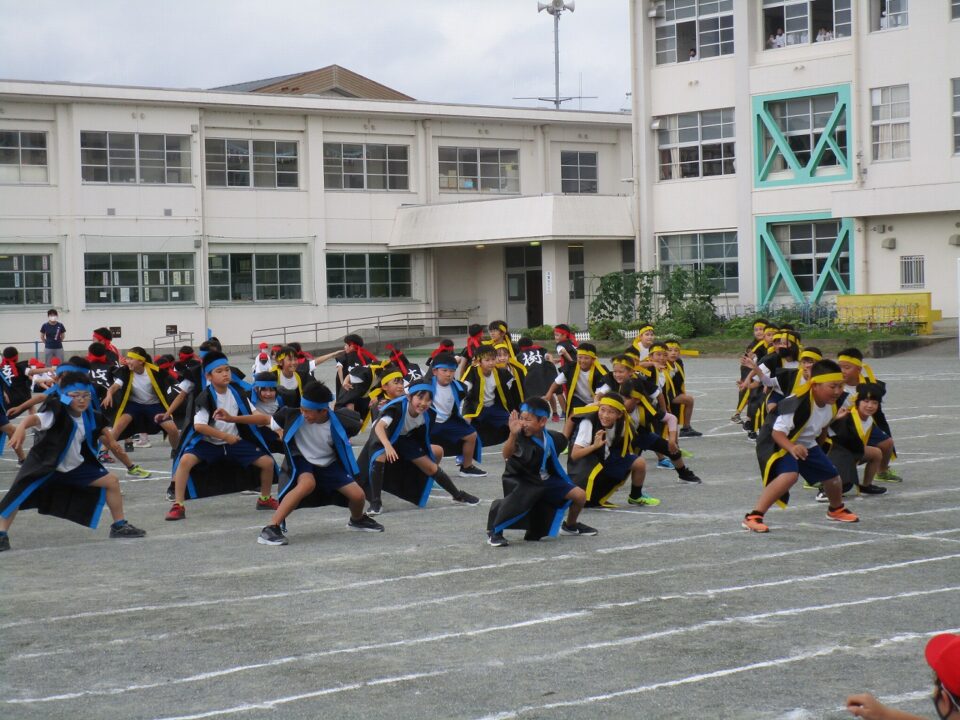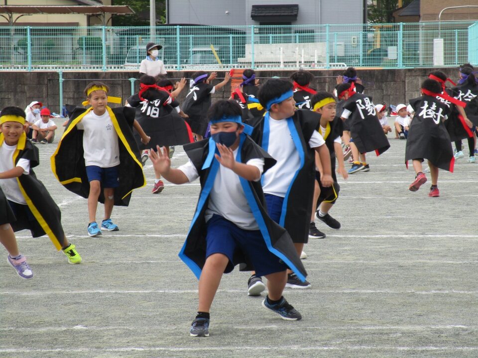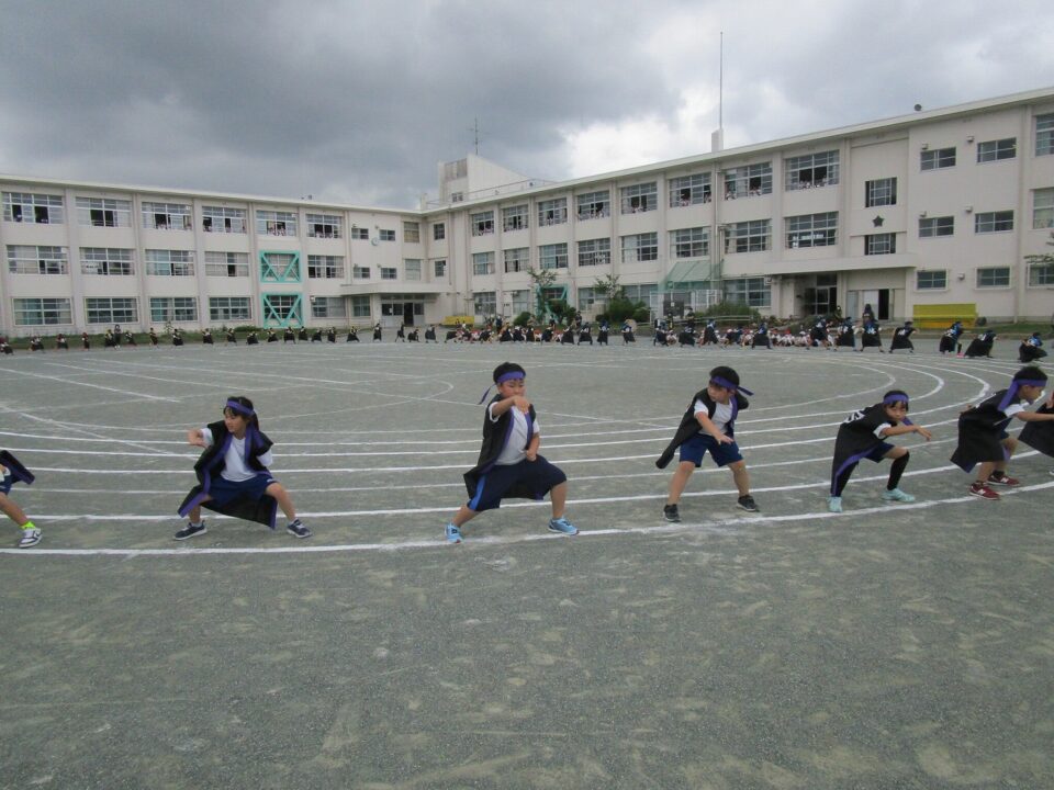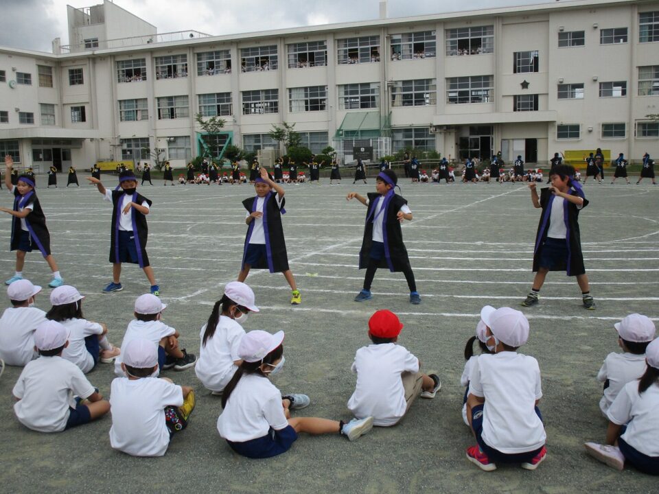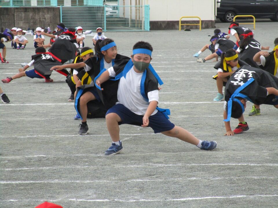 自分じぶん名前なまえ一文字ひともじ背中せなかにプリントした法被はっぴて、音楽おんがくわせて、披露ひろうしてくれました。