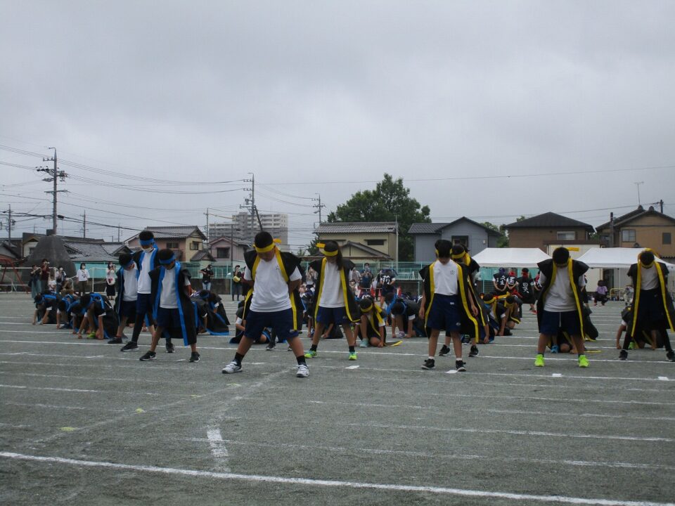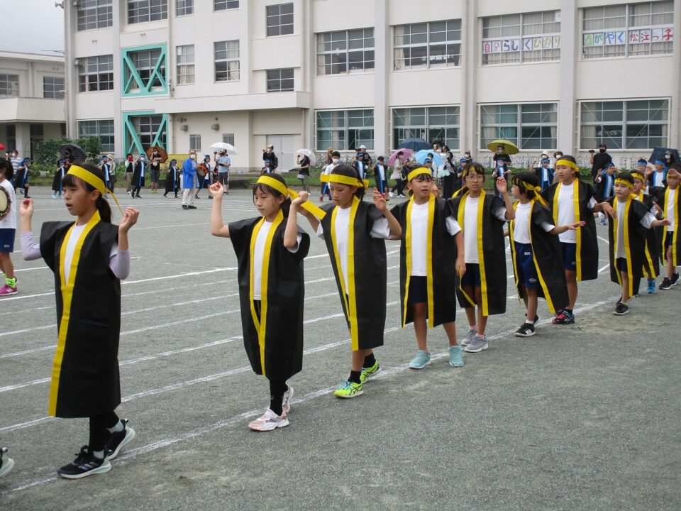 ホーム > 日々の活動の様子 / 2021年度 運動会(うんどうかい)中学年(ちゅうがくねん) 照(て)らず、降(ふ)ってもポツポツで、運動会(うんどうかい)を実施(じっし)いたしました。 中学年(ちゅうがくねん)が開会式(かいかいしき)に出(で)ました。 準備体操(じゅんびたいそう)です。 まずは、80m走(そう)です。 リレー「心(こころ)をつなげ!」 しょんがい音頭(おんど)を踊(おど)り保存会(ほぞんかい)の方(かた)と一緒(いっしょ)に踊(おど)りました。 南中(なんちゅう)ソーラン 松江組(まつえぐみ) シェアする Twitter でシェア はてなブックマークに保存 LINE でシェア Facebook でシェア Pocket に保存 Feedly で購読 関連投稿 日々の活動の様子 / 2022年度 文化祭(ぶんかさい)のふりかえり 2025年度 / 日々の活動の様子 委員会活動頑張っています。 日々の活動の様子 / 2019年度 冬休(ふゆやす)み明(あ)け集会(しゅうかい)がありました 日々の活動の様子 / 2021年度 学級掃除(がっきゅうそうじ)できれいになっています。 日々の活動の様子 / 2021年度 全国学力(ぜんこくがくりょく)・学習状況調査(がくしゅうじょうきょうちょうさ)6年生(ねんせい)、みえスタディチェック4年生(ねんせい)5年生(ねんせい) 日々の活動の様子 / 2020年度 子(こ)どもたちの学習(がくしゅう)の様子(ようす) 前の投稿 運動会(うんどうかい)を実施(じっし)いたします。 次の投稿 運動会(うんどうかい)低学年(ていがくねん)