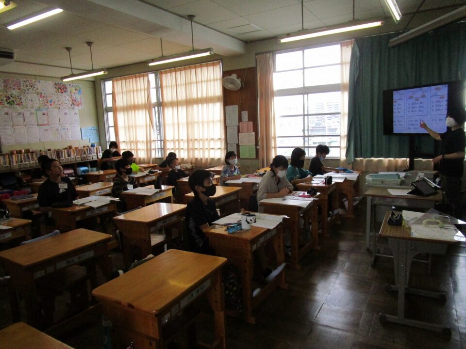 5年生では、算数は少人数制を取っています。半分の人数で学習し、よりきめ細やかな指導ができるように4年生とともに実施しています。
