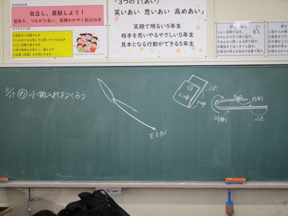 3限目が始まり、1組は家庭科でした。小物入れ作りです。