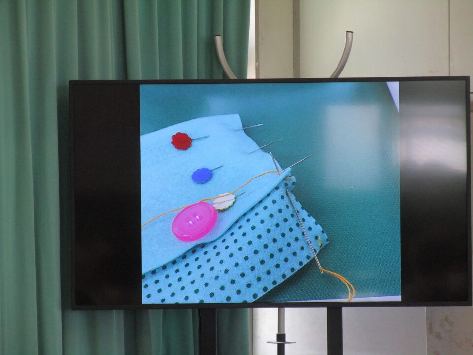 3限目が始まり、1組は家庭科でした。小物入れ作りです。
