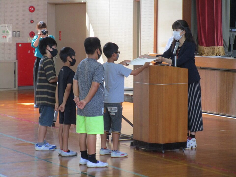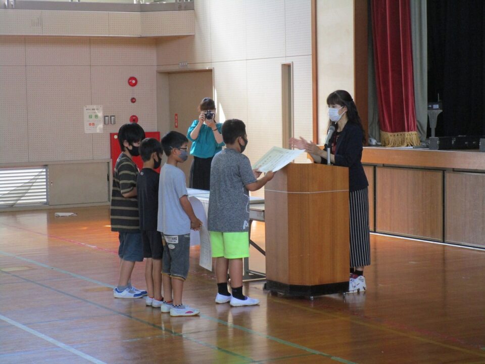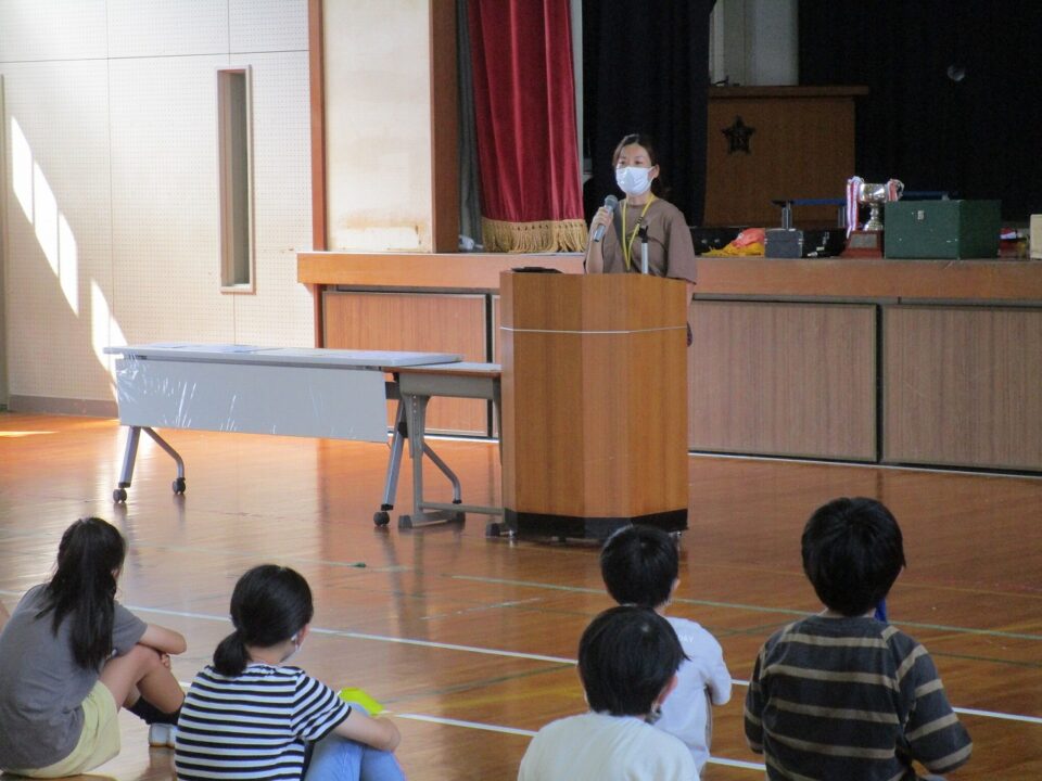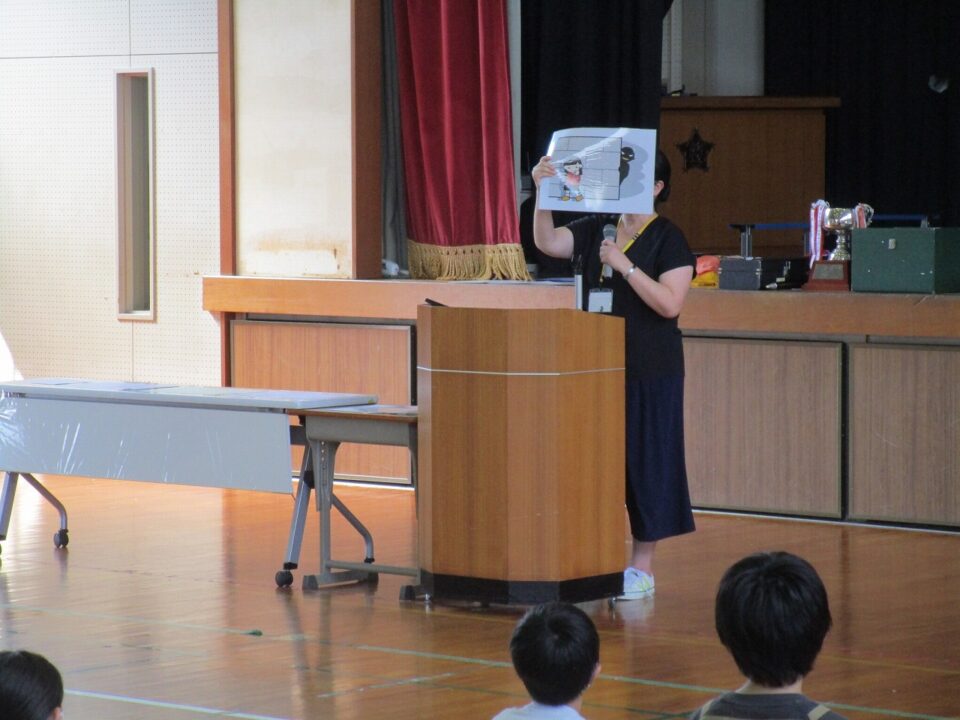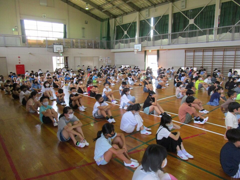 4年生~6年生は、体育館に集まり夏休み前の集会を行い、1年生~3年生は、教室で担任の先生から話をしてもらいました。