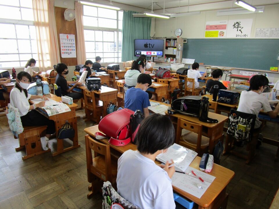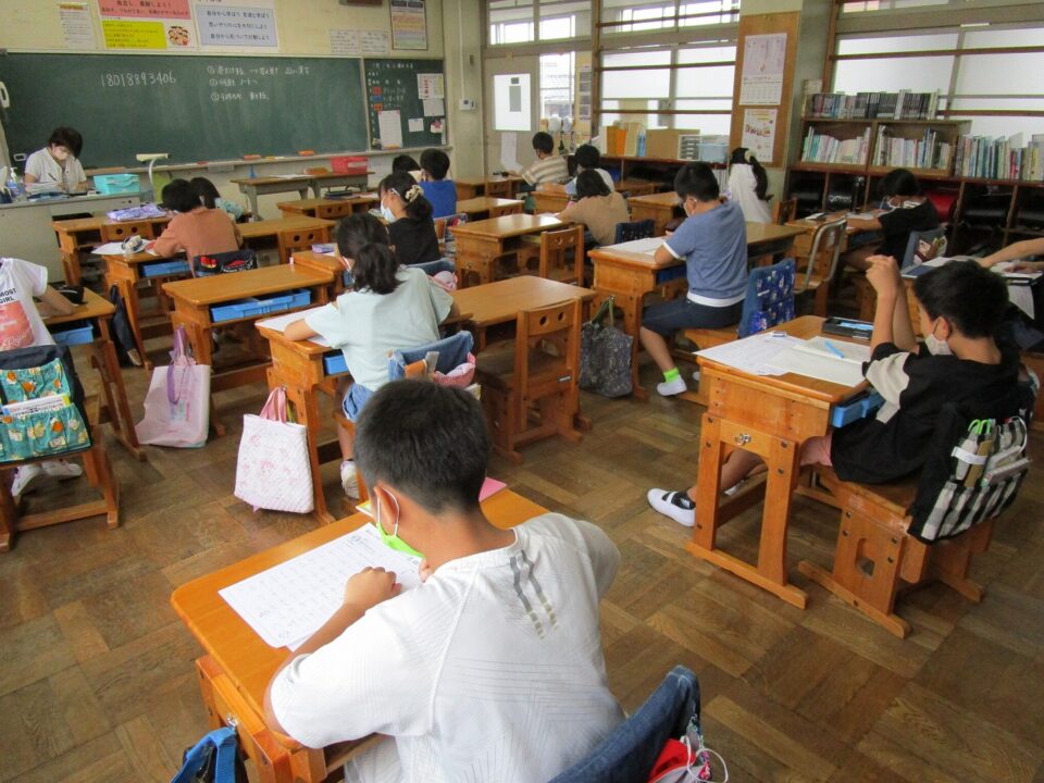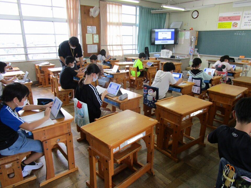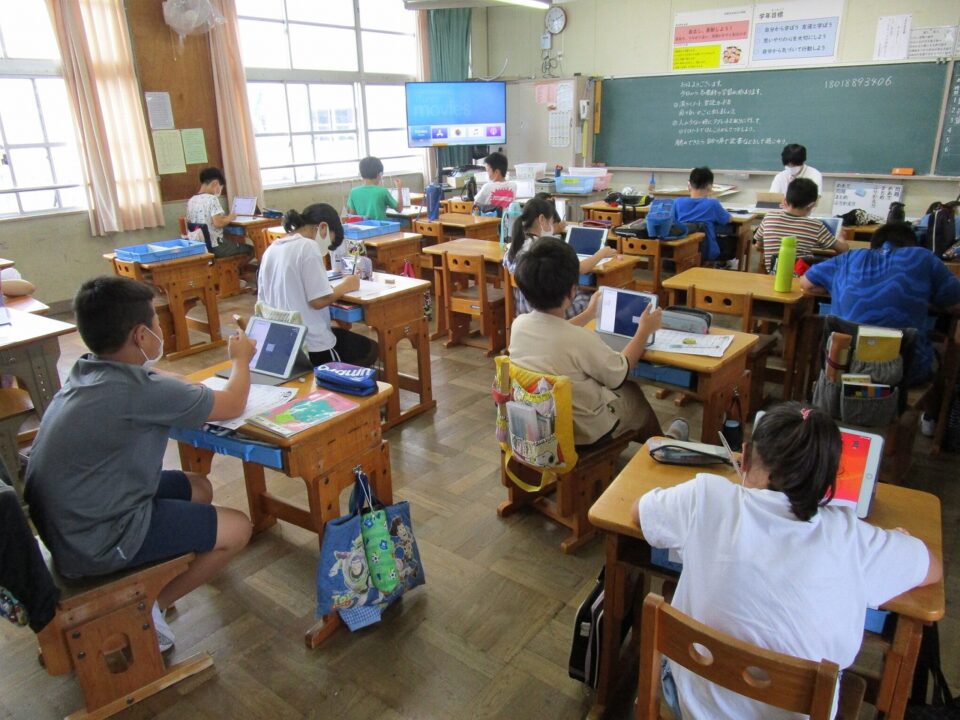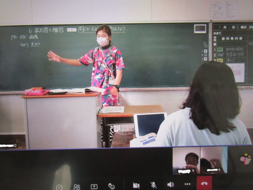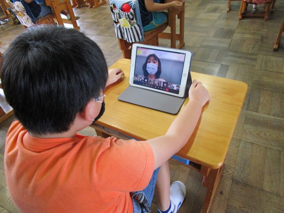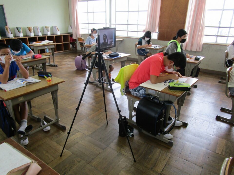 今日きょうは、6年生ねんせいでは動作環境どうさかんきょう音量おんりょう具合ぐあいをテストするのもねて、オンラインで自宅じたくとをつなぎ、算数さんすう学習等がくしゅうとう実施じっししていました。さすが、6年生ねんせいです。しっかり画面越がめんごしに真剣しんけんなまなざしで学習がくしゅうしていました。