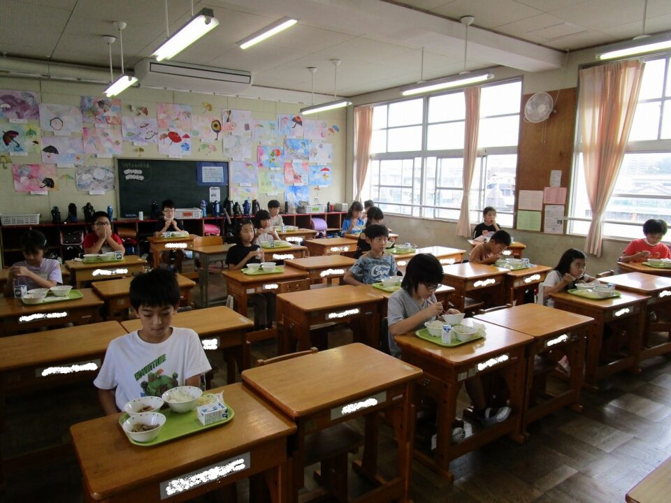 ホーム > 日々の活動の様子 / 2021年度 給食(きゅうしょく)の様子(ようす) 今日(きょう)の給食(きゅうしょく)の献立(こんだて)は、 ご飯(はん)、牛乳(ぎゅうにゅう)、豚肉(ぶたにく)とたまねぎのしょうが炒(いた)め、大豆入(だいずい)りサラダ、パインアップルでした。 今日(きょう)も黙食(もくしょく)で食(た)べました。 今日(きょう)も栄養満点(えいようまんてん)ですね! シェアする Twitter でシェア はてなブックマークに保存 LINE でシェア Facebook でシェア Pocket に保存 Feedly で購読 関連投稿 2025年度 / 日々の活動の様子 10月下旬 秋です。 日々の活動の様子 / 2023年度 運動会(うんどうかい)の練習(れんしゅう)がんばっています ~低学年(ていがくねん)~ 日々の活動の様子 / 2019年度 6年生(ねんせい)人権学習講演会(じんけんがくしゅうこうえんかい) 2024年度 / 日々の活動の様子 ちゃちゃもランチ 日々の活動の様子 / 2021年度 5,6年生(ねんせい)「一旗団結(いっきだんけつ)」 日々の活動の様子 / 2021年度 英語(えいご)リモート学習(がくしゅう)6-2後半(こうはん) 前の投稿 学習(がくしゅう)の様子(ようす)6日目(むいかめ) 次の投稿 理科(りか)リモート学習(がくしゅう)5-C
