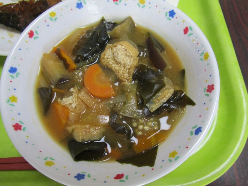 ホーム > 日々の活動の様子 / 2021年度 給食(きゅうしょく)の様子(ようす) 今日(きょう)の給食(きゅうしょく)の献立(こんだて)は、 ご飯(はん)、牛乳(ぎゅうにゅう)、さばの煮付(につ)け、キャベツのごま和(あ)え、なすのみそ汁(しる) でした。 ものすごくおいしかったです。 味付(あじつ)けが良(よ)く、みそ汁(しる)は具(ぐ)だくさんで栄養満点(えいようまんてん)なメニューでした。 シェアする Twitter でシェア はてなブックマークに保存 LINE でシェア Facebook でシェア Pocket に保存 Feedly で購読 関連投稿 2024年度 / 日々の活動の様子 委員会活動(いいんかいかつどう)が始(はじ)まりました 日々の活動の様子 / 2022年度 なかよし班結成集会(はんけっせいしゅうかい)・遠足(えんそく) ~鈴(すず)の森公園(もりこうえん)~ 日々の活動の様子 / 2023年度 リコーダー講習会(こうしゅうかい) ~3年生(ねんせい)~ 日々の活動の様子 / 2020年度 休憩時間(きゅうけいじかん)には晴(は)れました。 日々の活動の様子 / 2020年度 3密(みつ)を避(さ)けるための工夫(くふう) 日々の活動の様子 / 2019年度 2(2)年生(ねんせい) プール(ぷーる)での水中(すいちゅう)生(い)き物(もの)観察(かんさつ) 前の投稿 分散学習延長(ぶんさんがくしゅうえんちょう)です。 次の投稿 緊急事態宣言延長(きんきゅうじたいせんげんえんちょう)となり、分散学習継続(ぶんさんがくしゅうけいぞく)です。