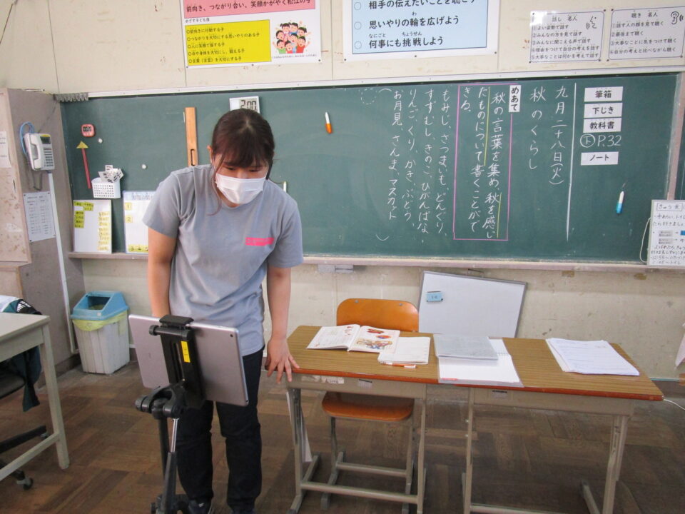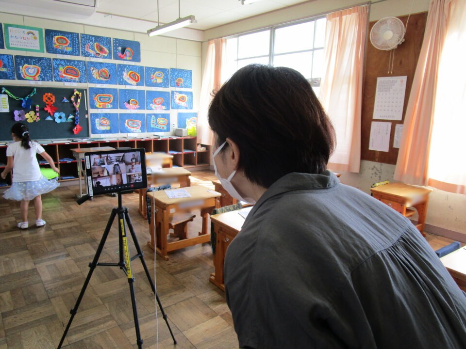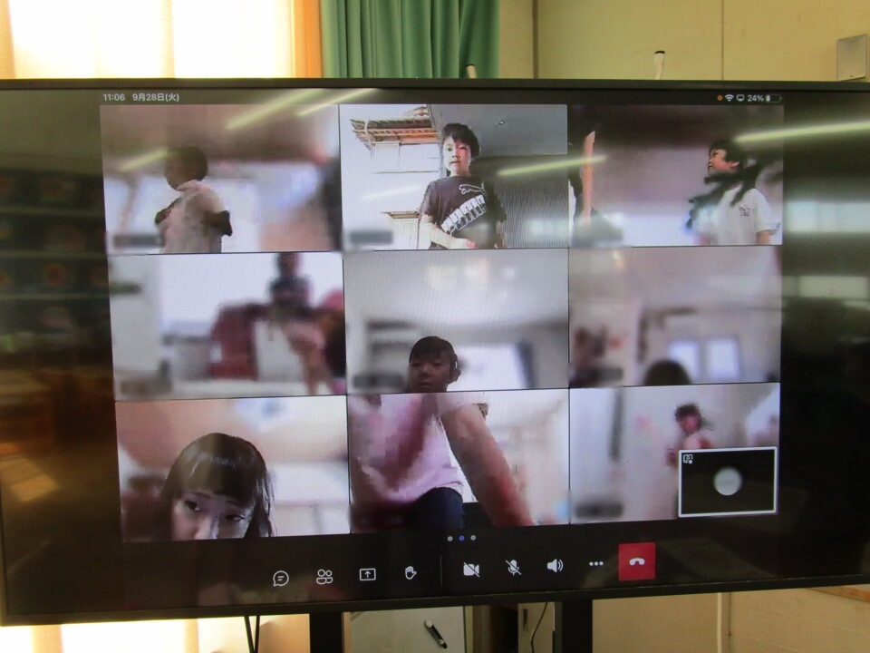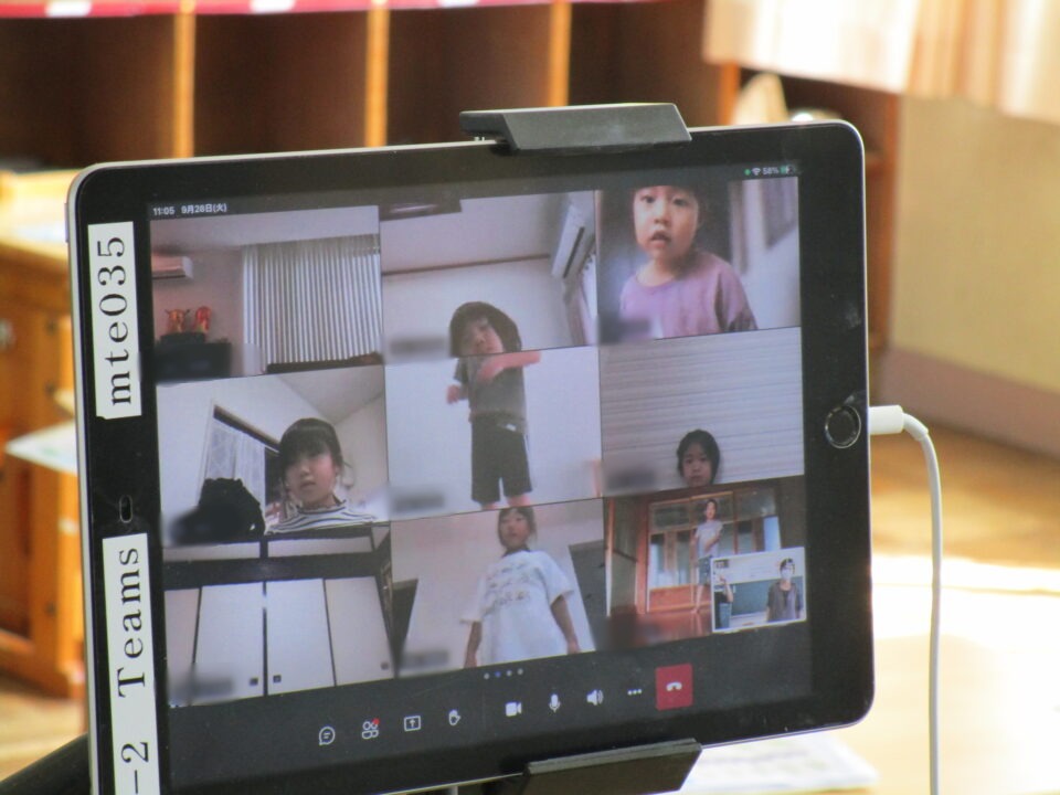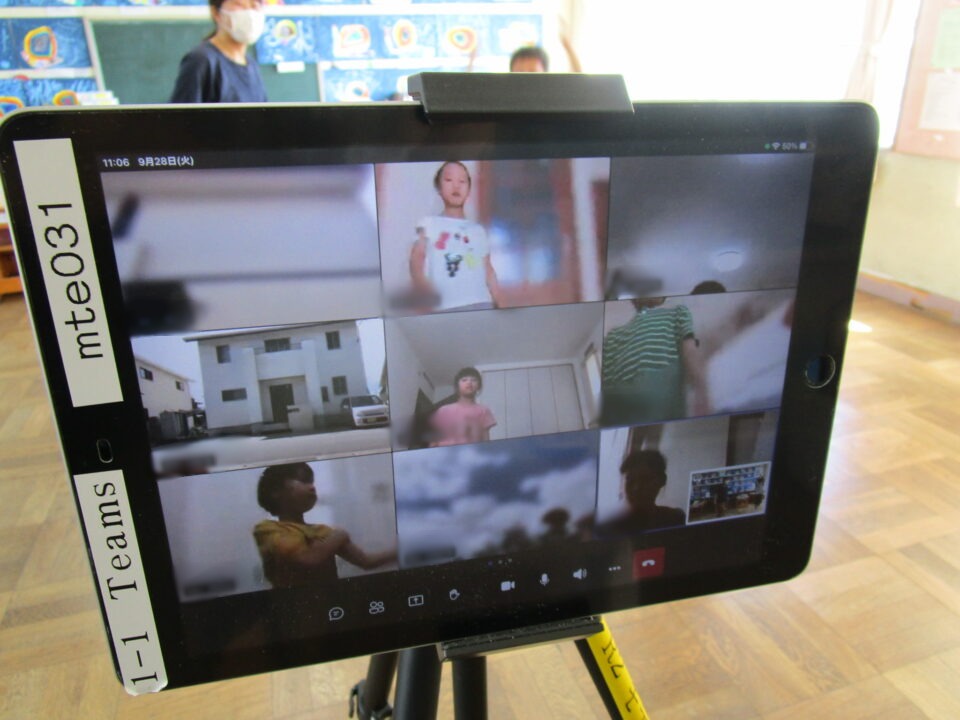 1年生では、保護者の方の協力も得ながら体育のオンライン学習もありました。
