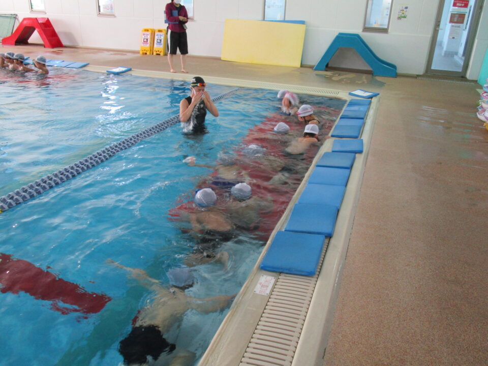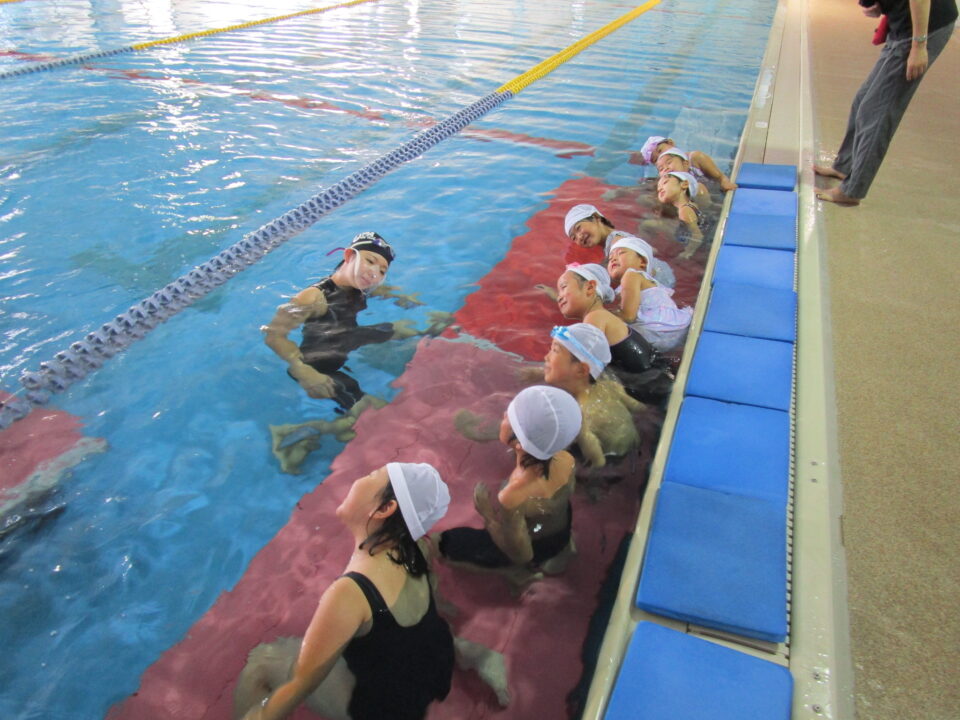 水には、慣れたかな?水泳教室で楽しかったことをお家でもお話してみてくださいね。