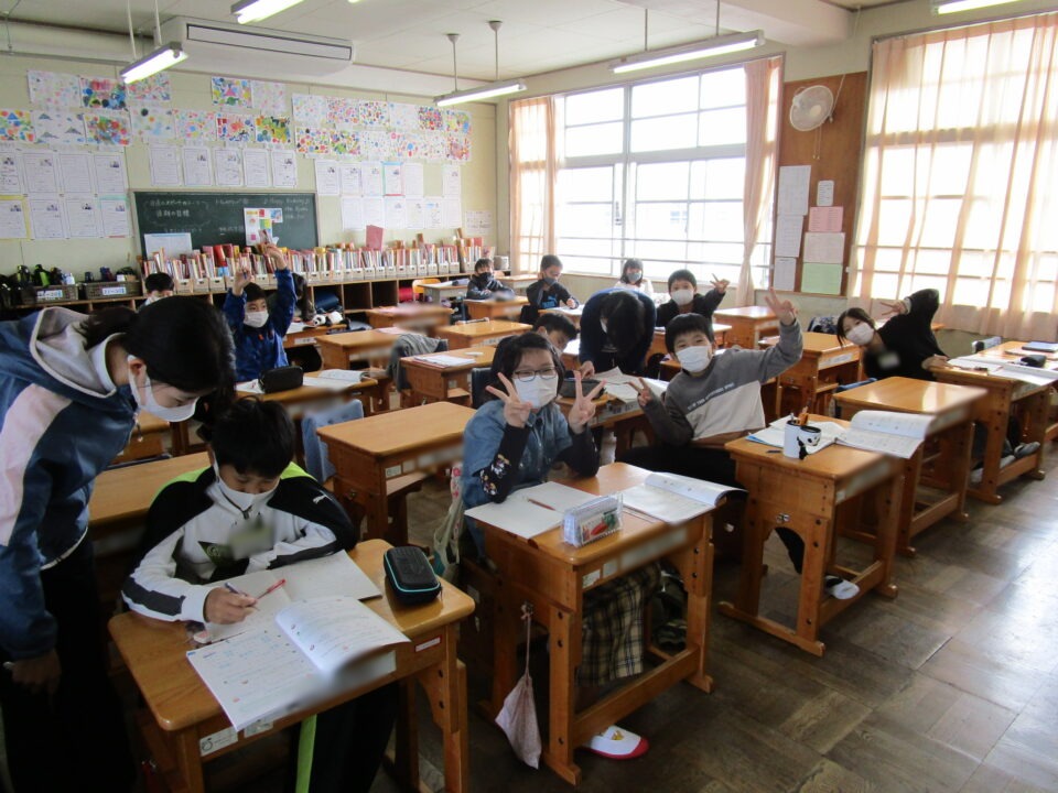 5年生は、図工の作品にニスを塗る時間でした。先生が図工室でニスの準備をしている間、クラスでは、子どもたちでニスを塗る順番を話し合いで決めていました。先生が仕切らなくても子どもたちで話し合って進めていける力のある子たちです。