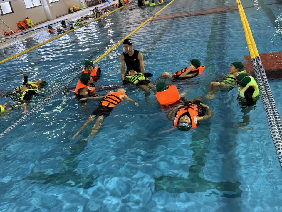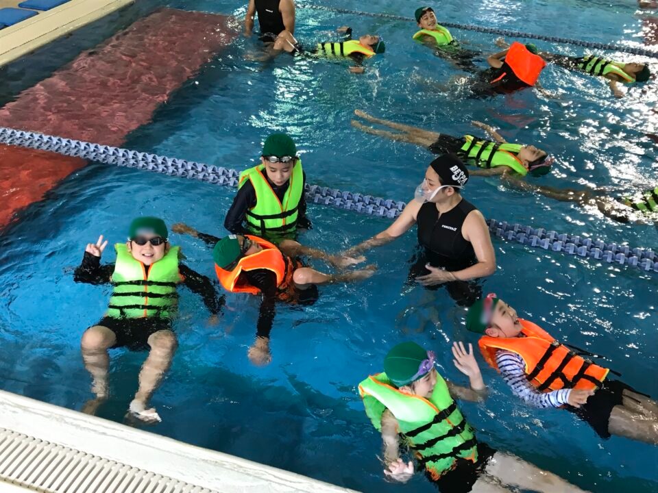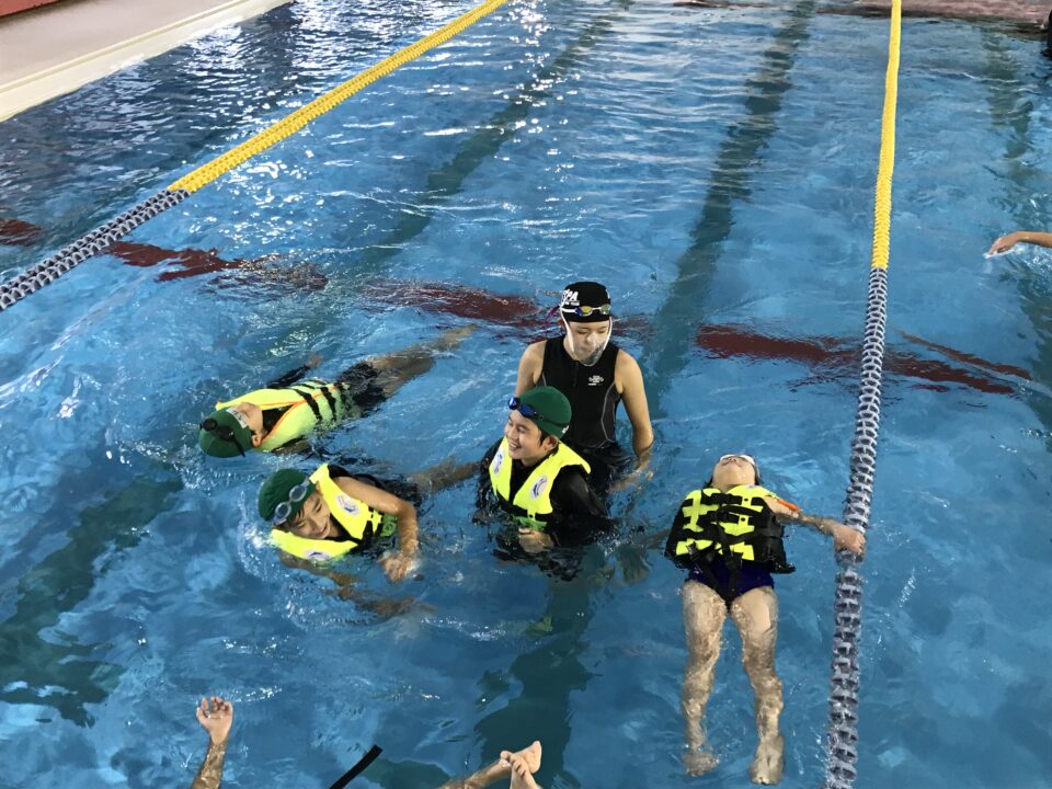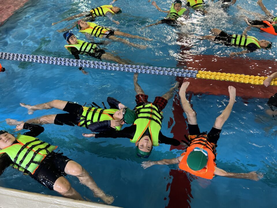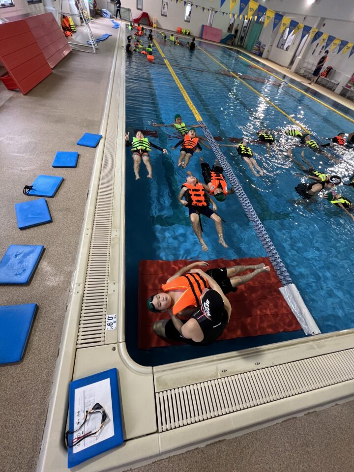 そして、ライフジャケットを装着し、浮く体験もしました。