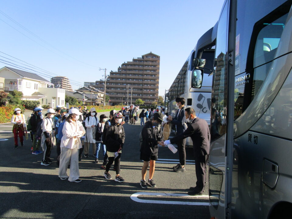 出発しました。社会見学には、絶好の日和です。