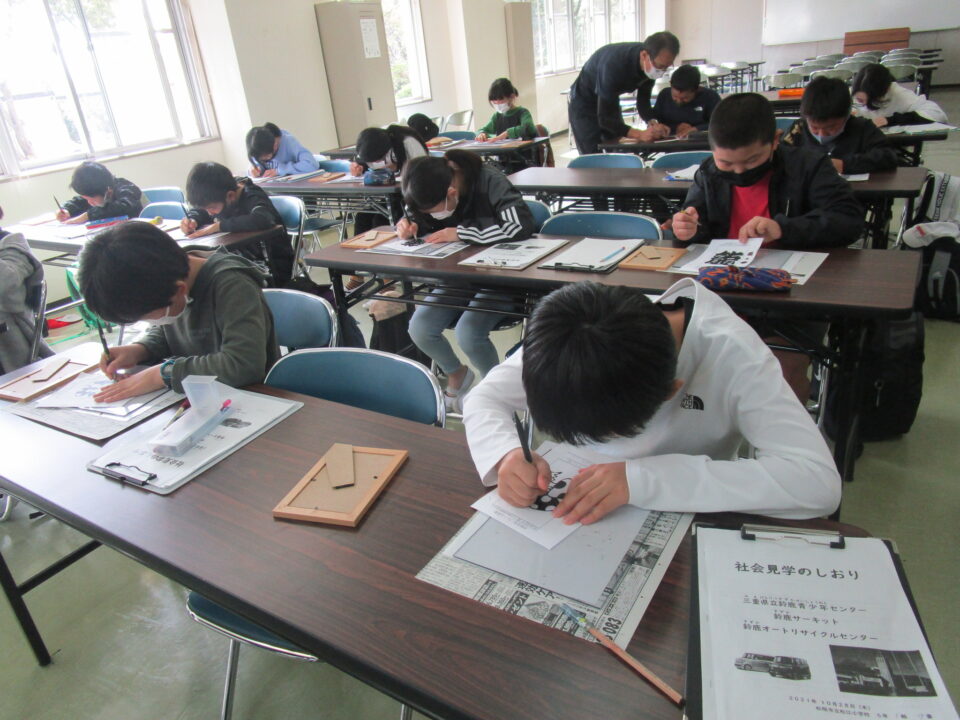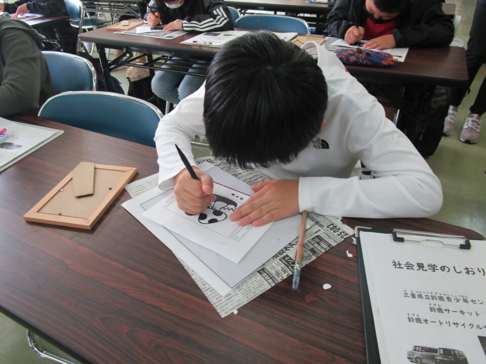 まず、鈴鹿青少年センターに行き、伊勢型紙の体験をしました。