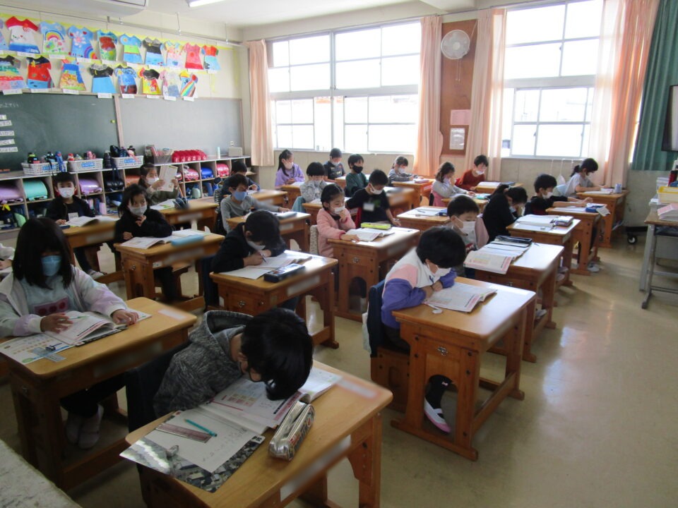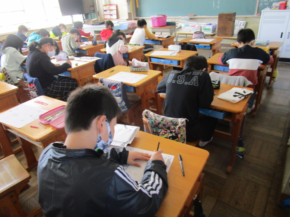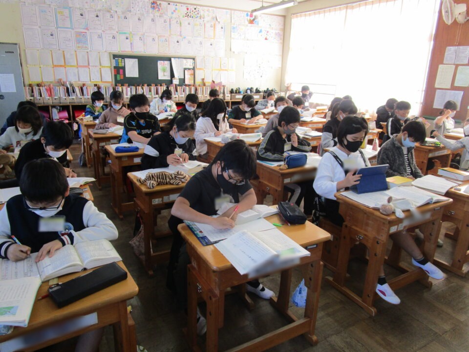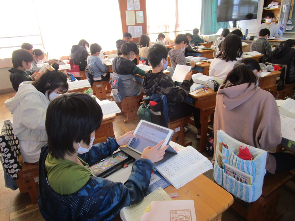 年生ねんせいのもう1クラスは、図工作品ずこうさくひんのニスりをしていましたが、人数にんずうおおいので順番じゅんばんおこなうため、時間じかんにできる学習がくしゅうって、それぞれ個々ここ学習がくしゅうすすめていました。