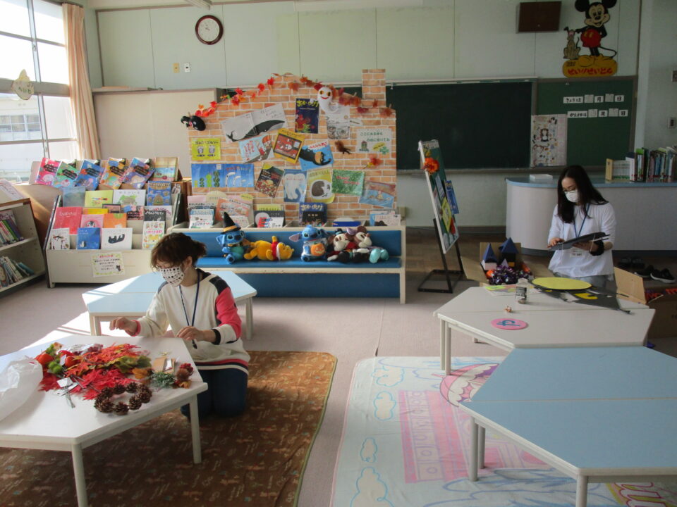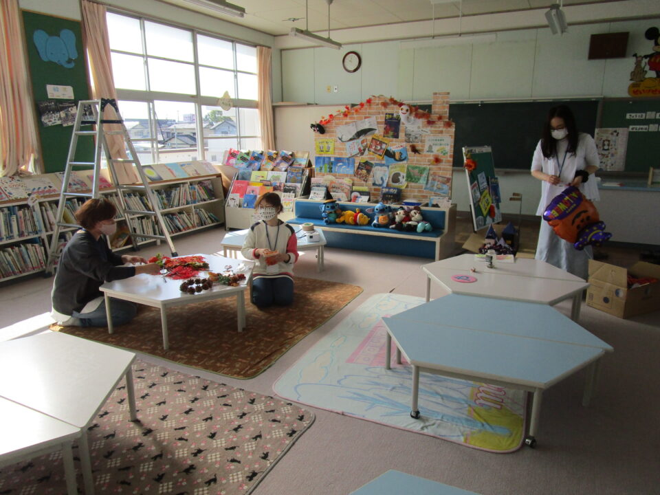 かせしつでは、図書としょボランティアの方々かたがた活動かつどうをされていました。きな時間じかんにアイディアをいながら、気軽きがるたのしんでしていただいています。
