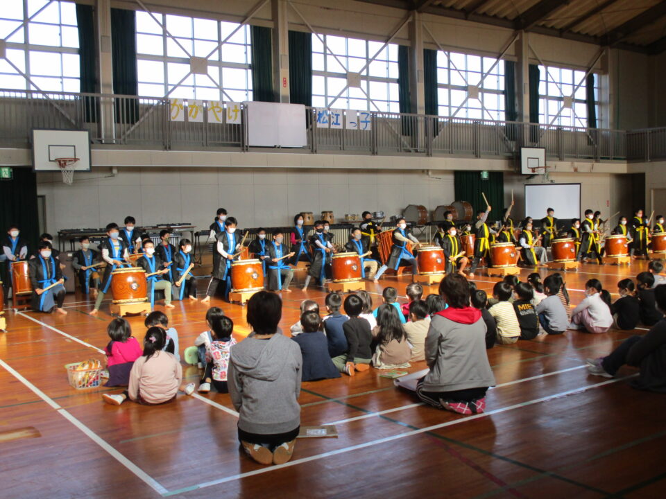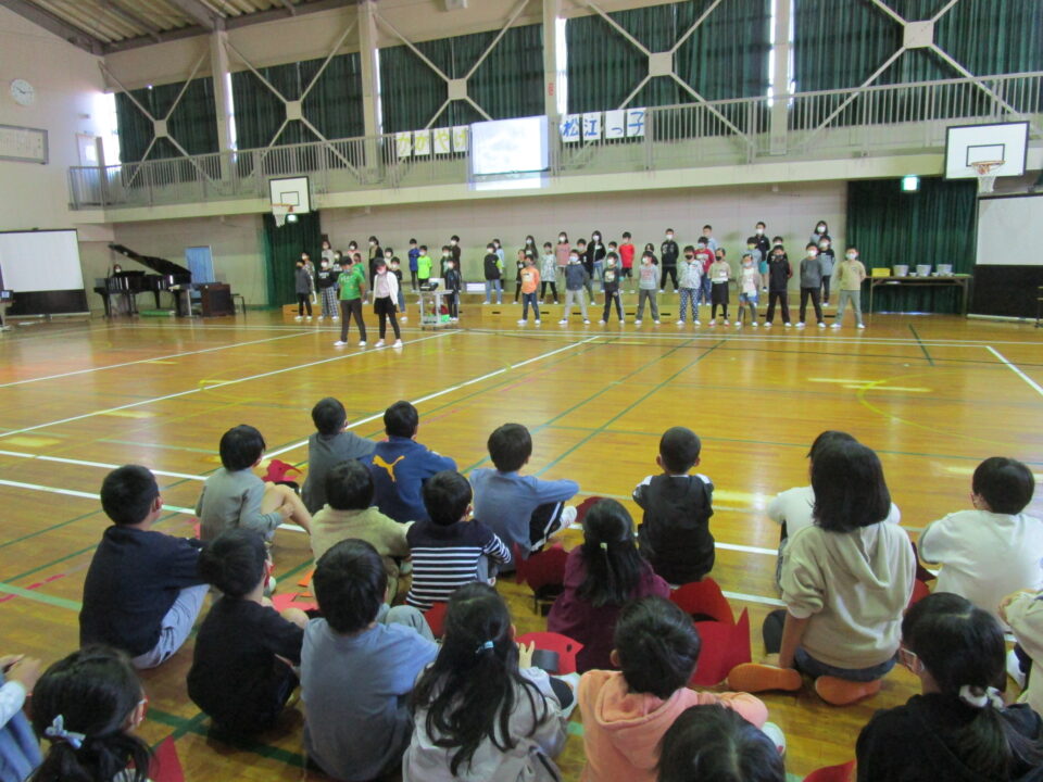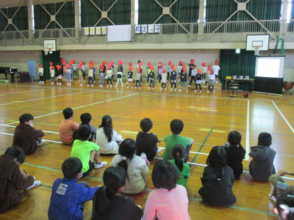 そこで、1つの学年には披露し、他の学年用には録画をして各学級で教室で見ることができるようにしました。