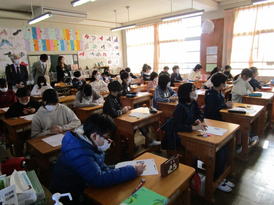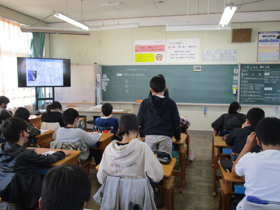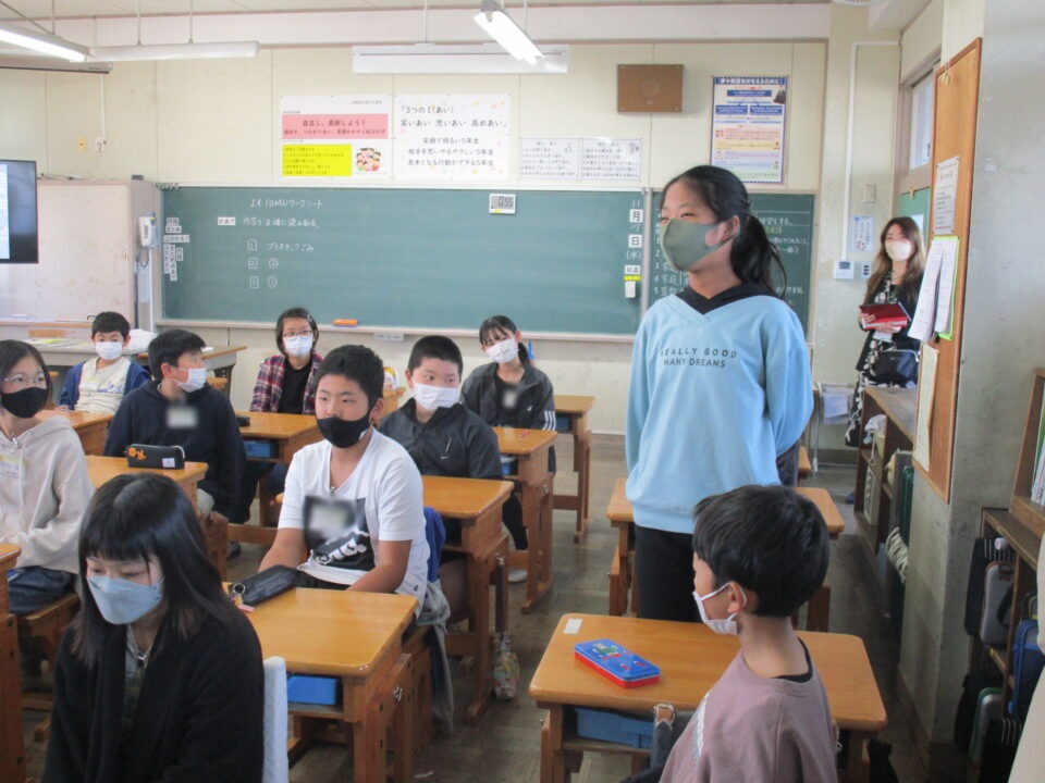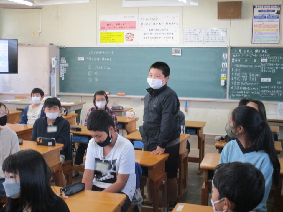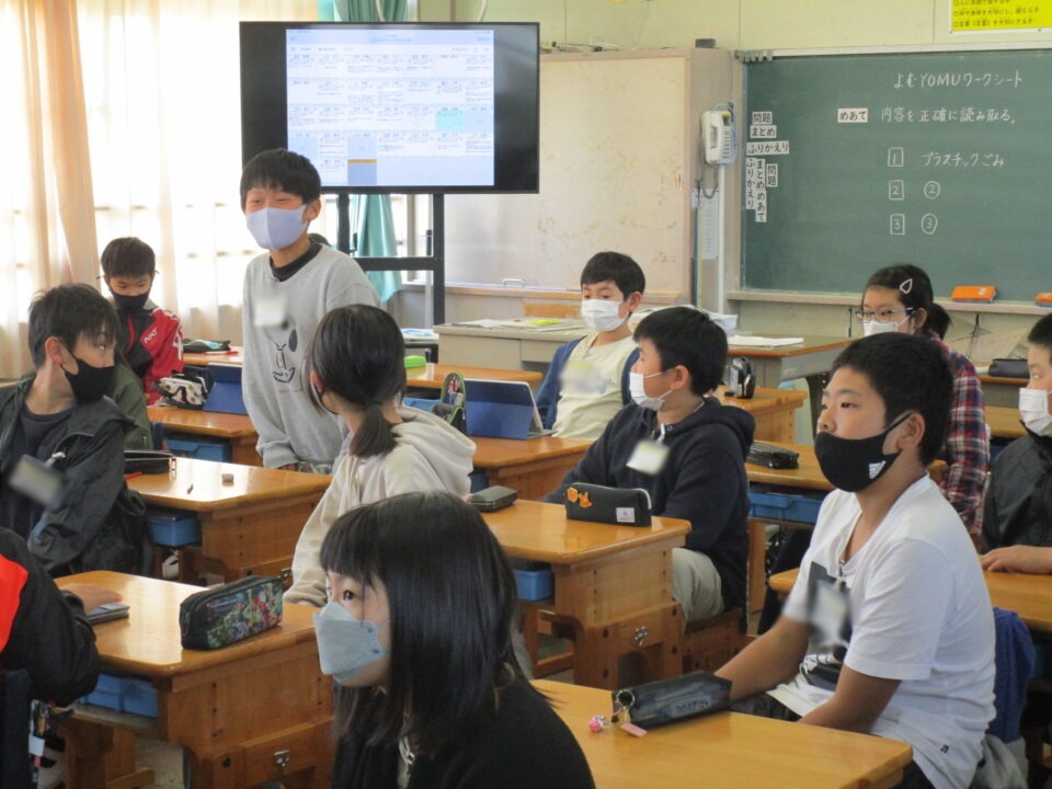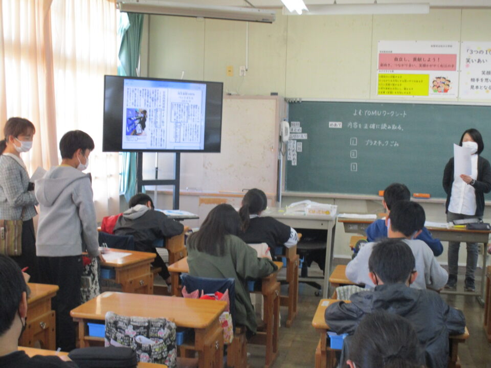 よむYOMUワークシートを解いて、答え合わせをしているところを見ていただき、そのあと取組の感想を聞いていただきました。