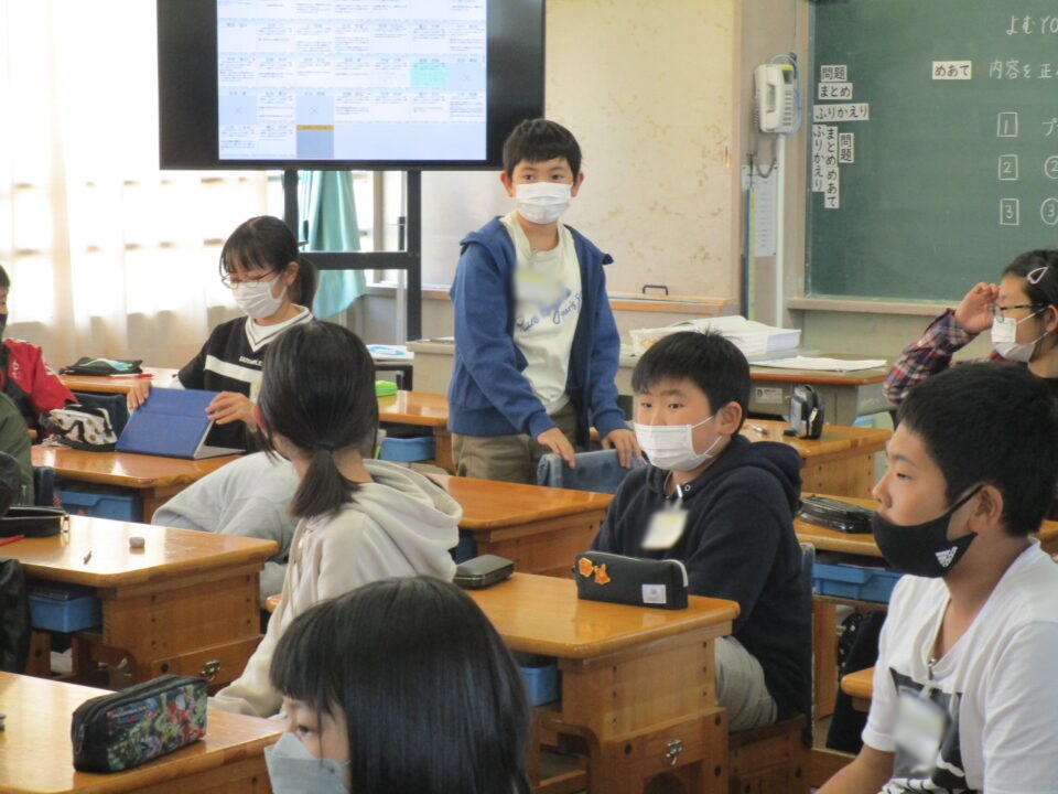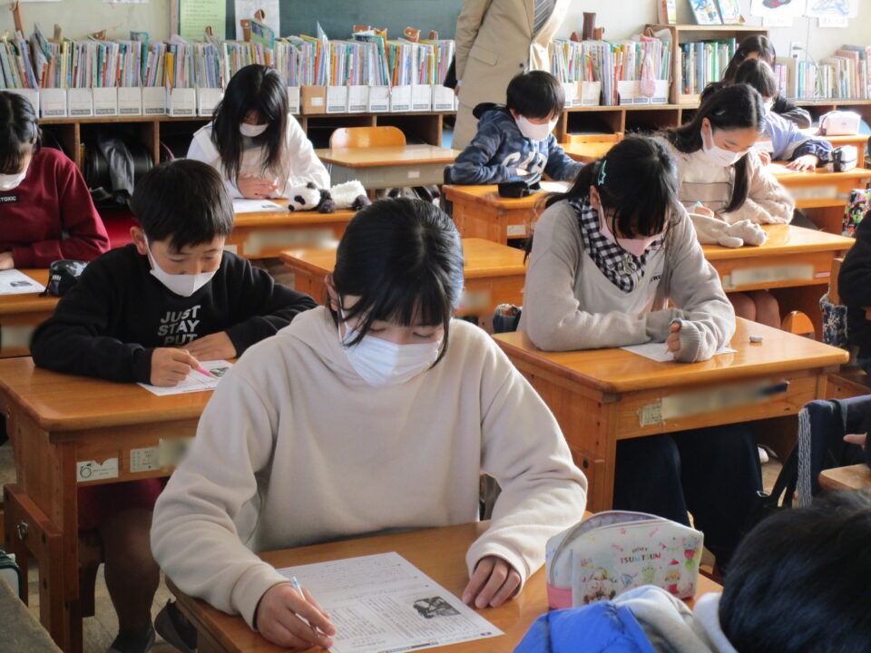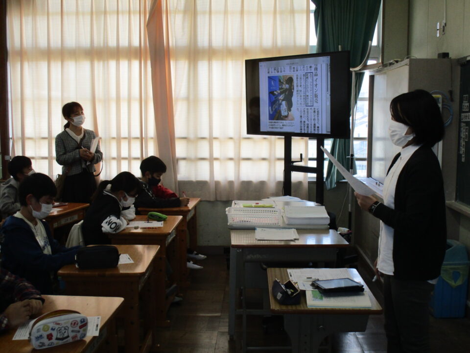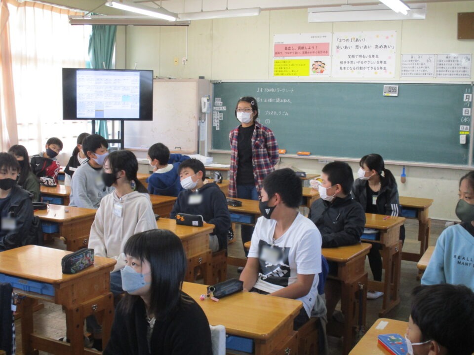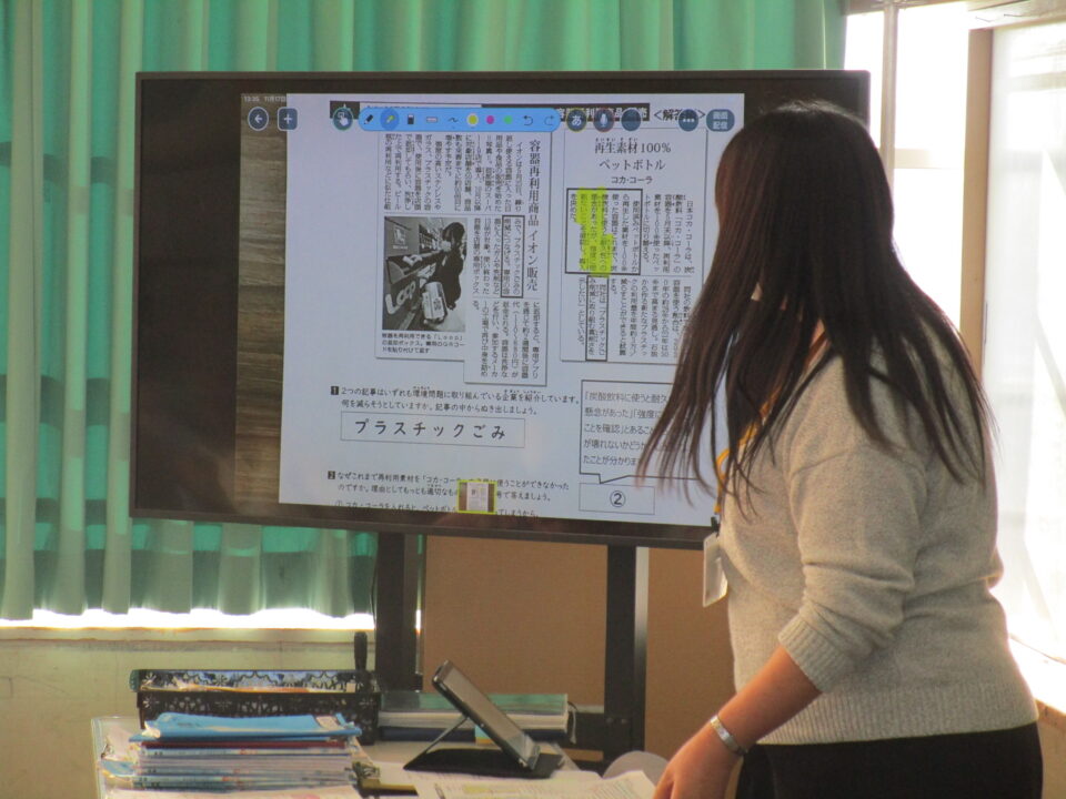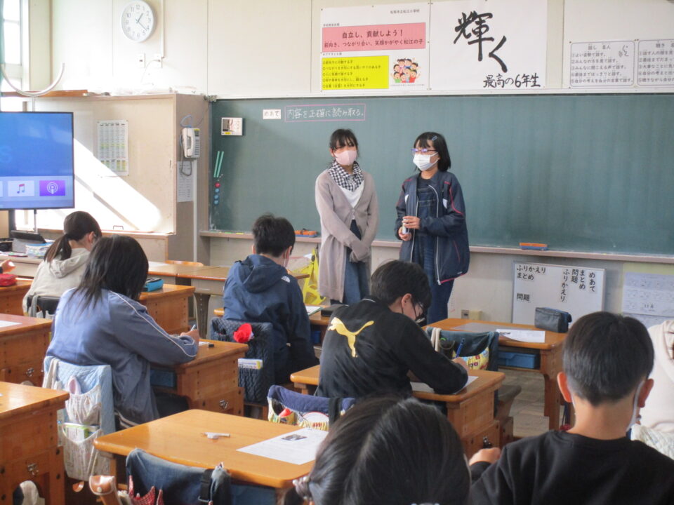よむYOMUワークシートを解いて、答え合わせをしているところを見ていただき、そのあと取組の感想を聞いていただきました。