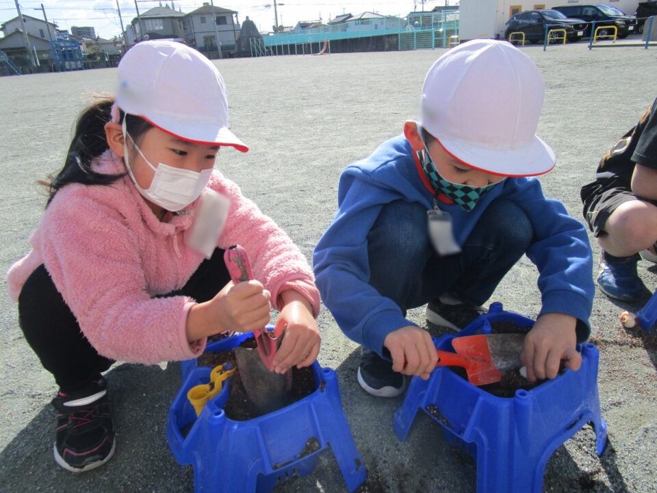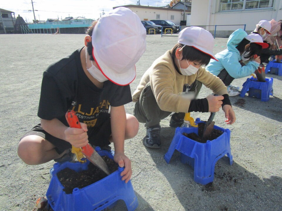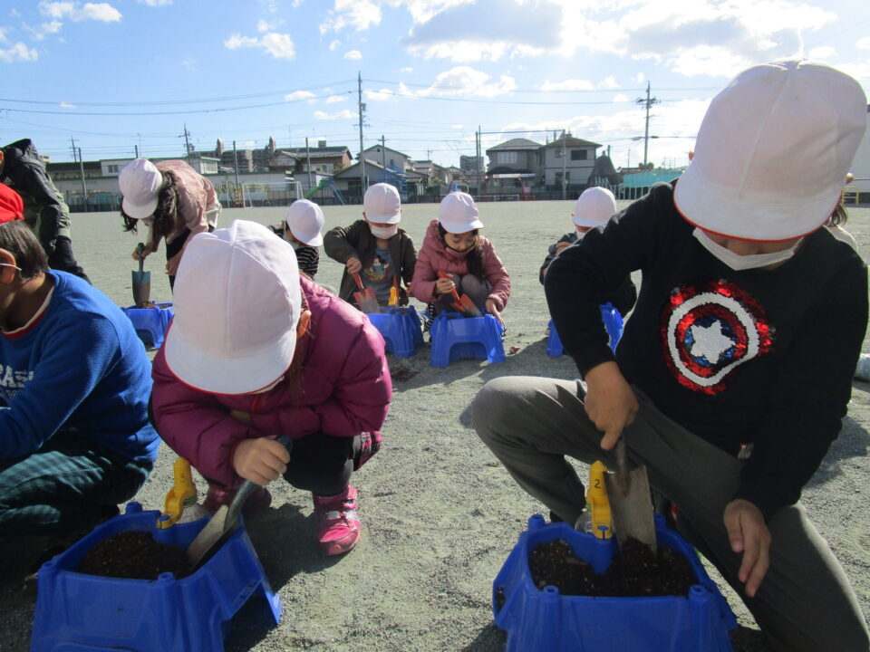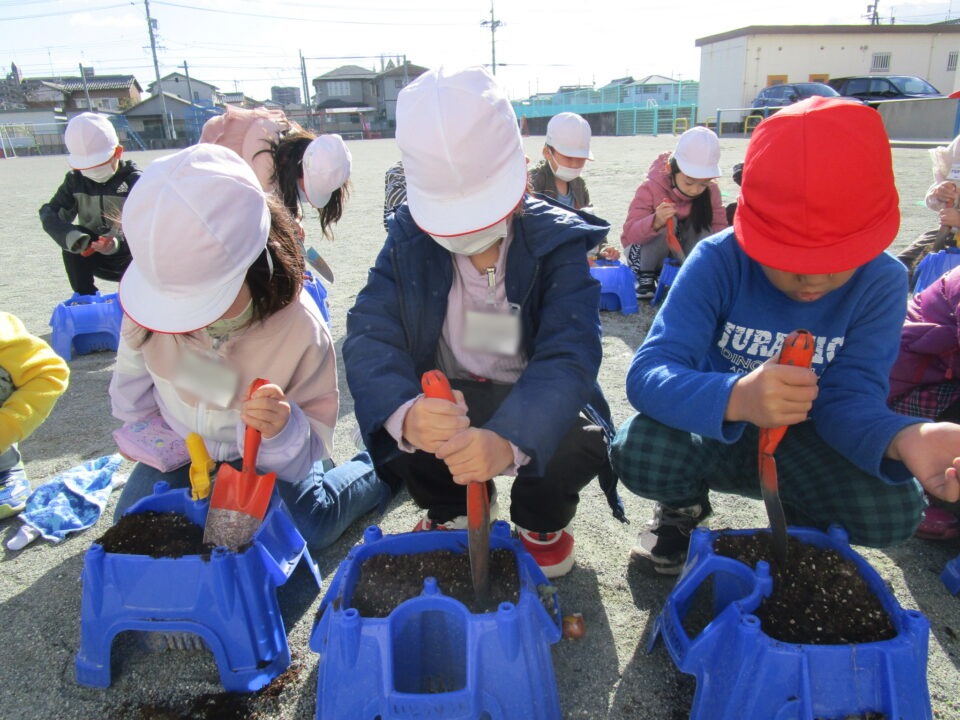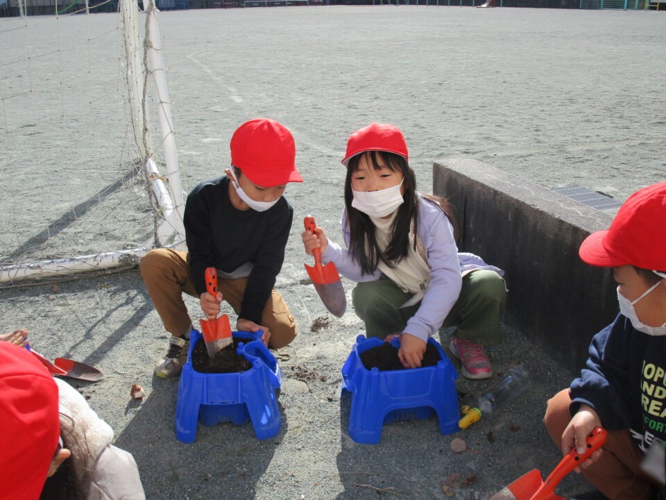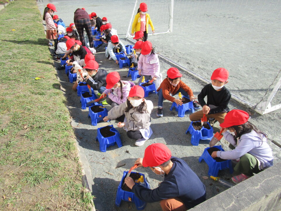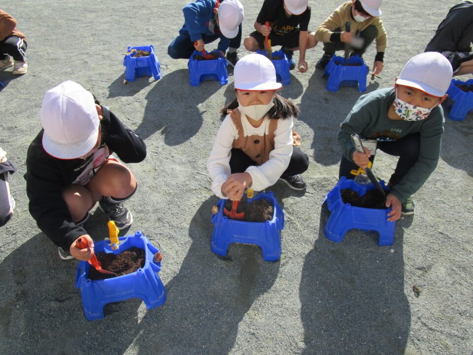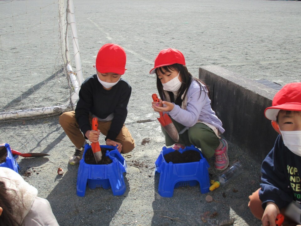 ホーム > 日々の活動の様子 / 2021年度 チューリップの球根植(きゅうこんう)え 1年生(ねんせい)の子(こ)たちは、生活科(せいかつか)でチューリップの球根(きゅうこん)を植(う)えました。 夏(なつ)のアサガオを育(そだ)てるときに使(つか)った鉢(はち)の土(つち)を耕(たがや)し、先生(せんせい)から新(あたら)しい土(つち)も入(い)れてもらいました。 芽(め)が出(で)てくるのが楽(たの)しみですね。 シェアする Twitter でシェア はてなブックマークに保存 LINE でシェア Facebook でシェア Pocket に保存 Feedly で購読 関連投稿 2024年度 / 日々の活動の様子 卒業式前日準備(そつぎょうしきぜんじつじゅんび) 日々の活動の様子 / 2019年度 夏(なつ)休(やす)み前(まえ) 子(こ)どもたちの学習(がくしゅう)の様子(ようす) 日々の活動の様子 / 2020年度 5-2と4-1で教育実習(きょういくじっしゅう)が始(はじ)まりました。 日々の活動の様子 / 2021年度 ベスパ水泳教室(すいえいきょうしつ) 6年生(ねんせい) 日々の活動の様子 西中学校入学説明会 日々の活動の様子 / 2020年度 4年生社会見学(ねんせいしゃかいけんがく)高須公園昼食(たかすこうえんちゅうしょく) 前の投稿 6年生(ねんせい) 調理実習(ちょうりじっしゅう)前半(ぜんはん) 次の投稿 6年生(ねんせい) 調理実習後半(ちょうりじっしゅうこうはん)
