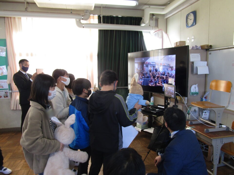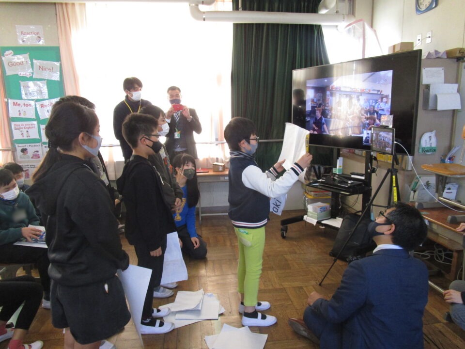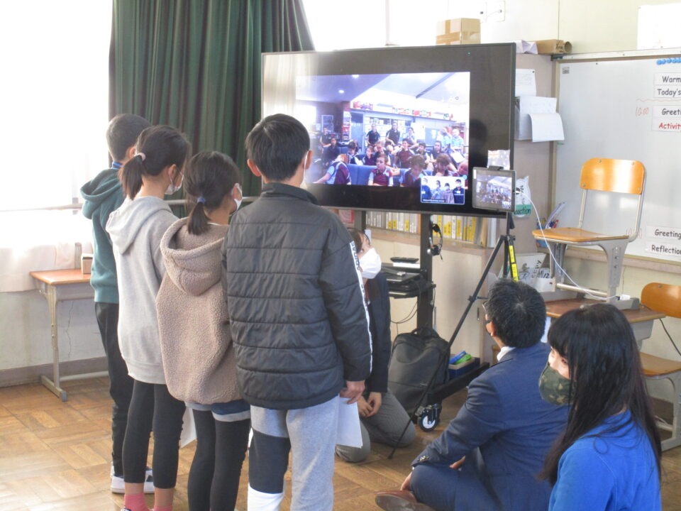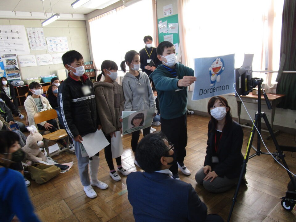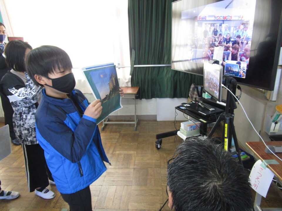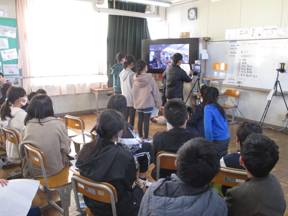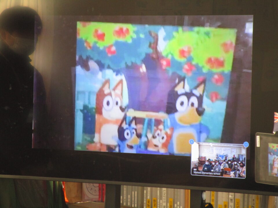 お互いに自分の学校についてや好きな食べ物、好きな動物、好きな教科、好きなアニメキャラクターなどを交流しました。