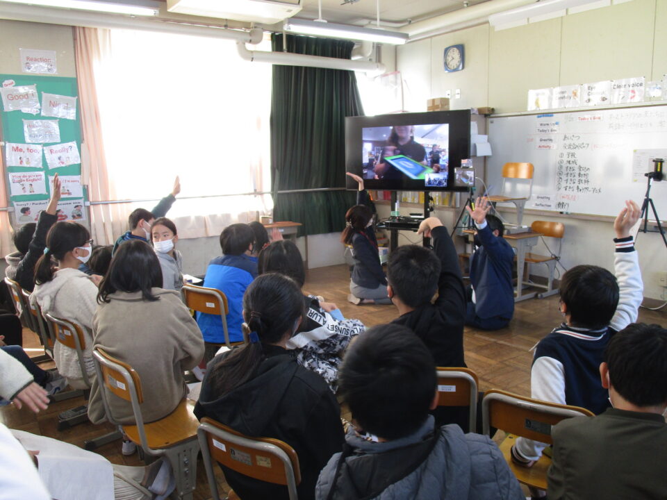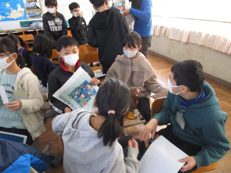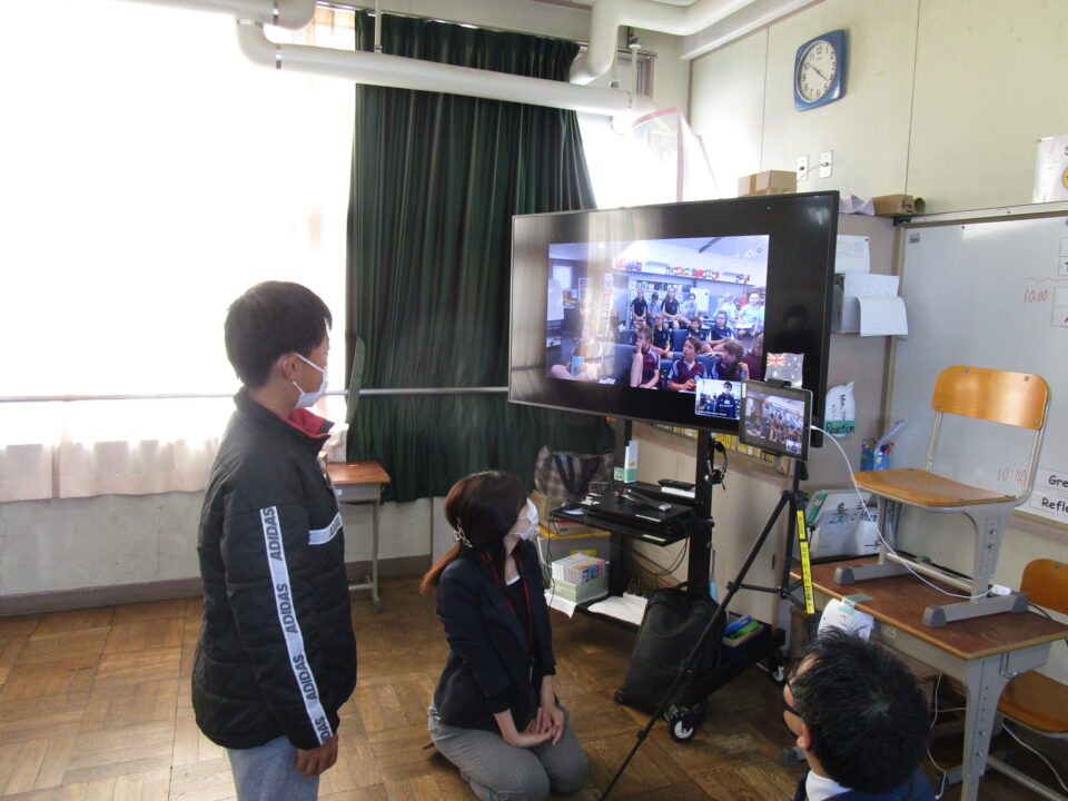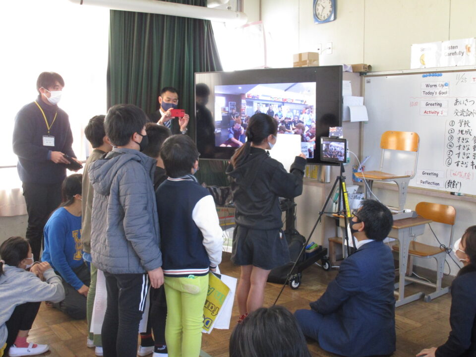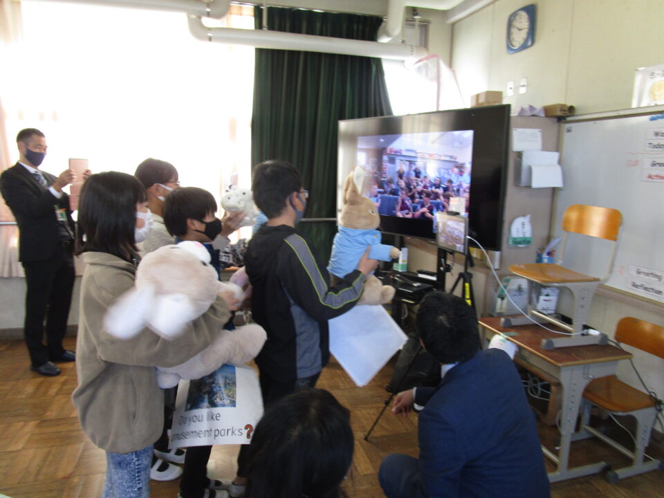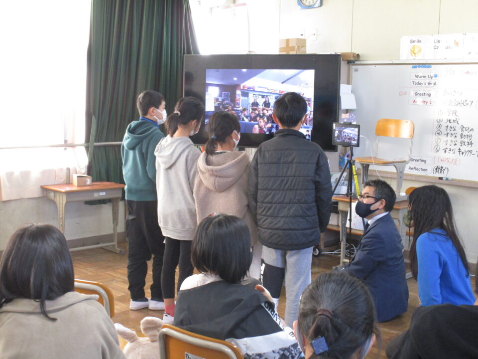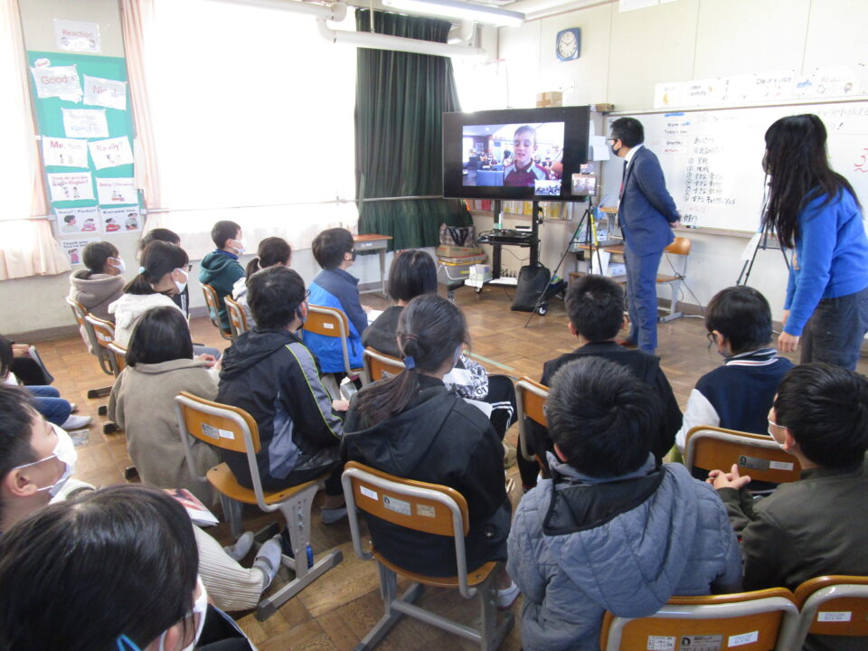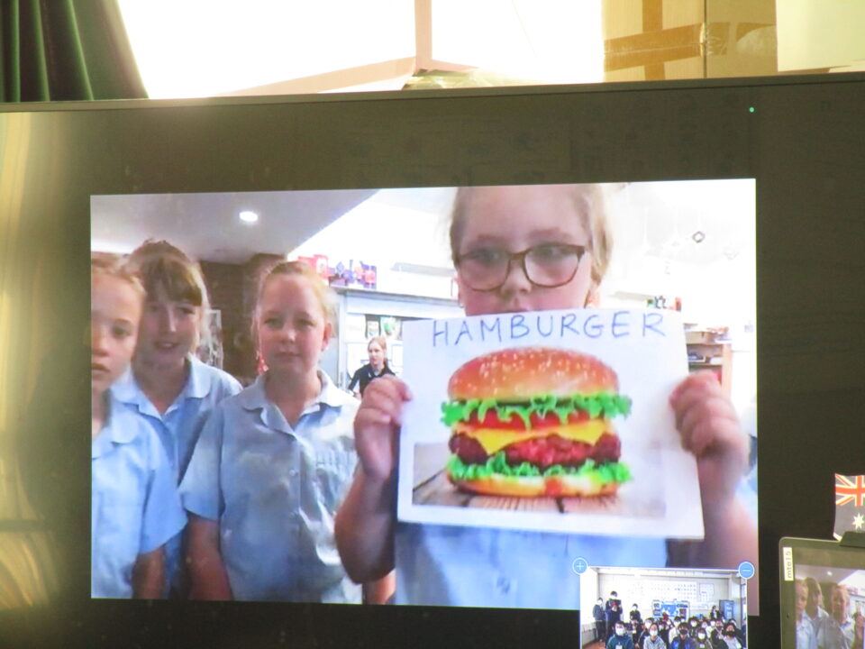 お互いに自分の学校についてや好きな食べ物、好きな動物、好きな教科、好きなアニメキャラクターなどを交流しました。