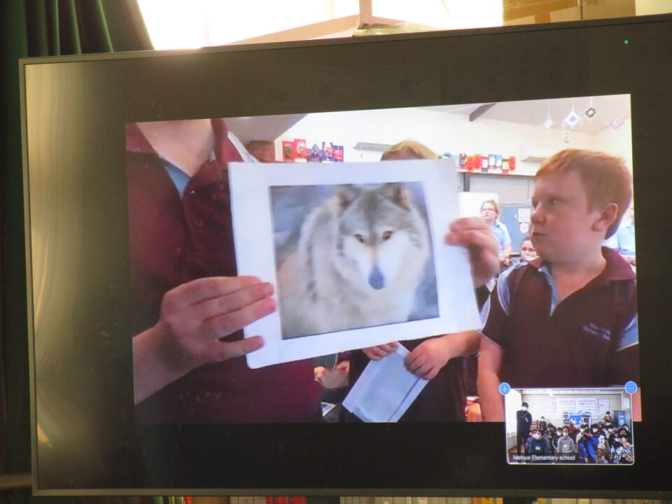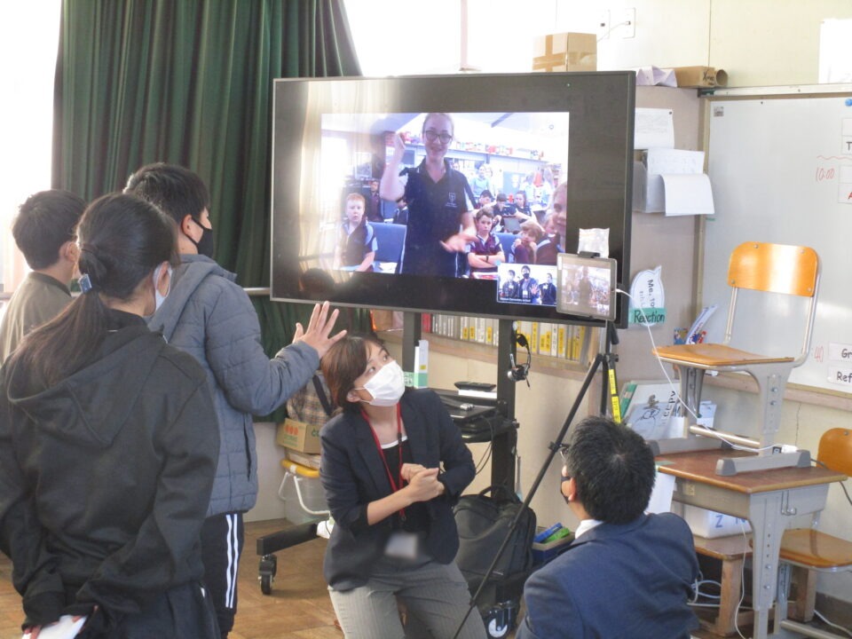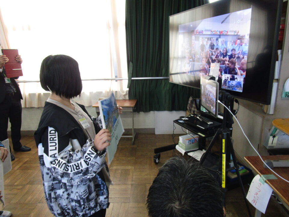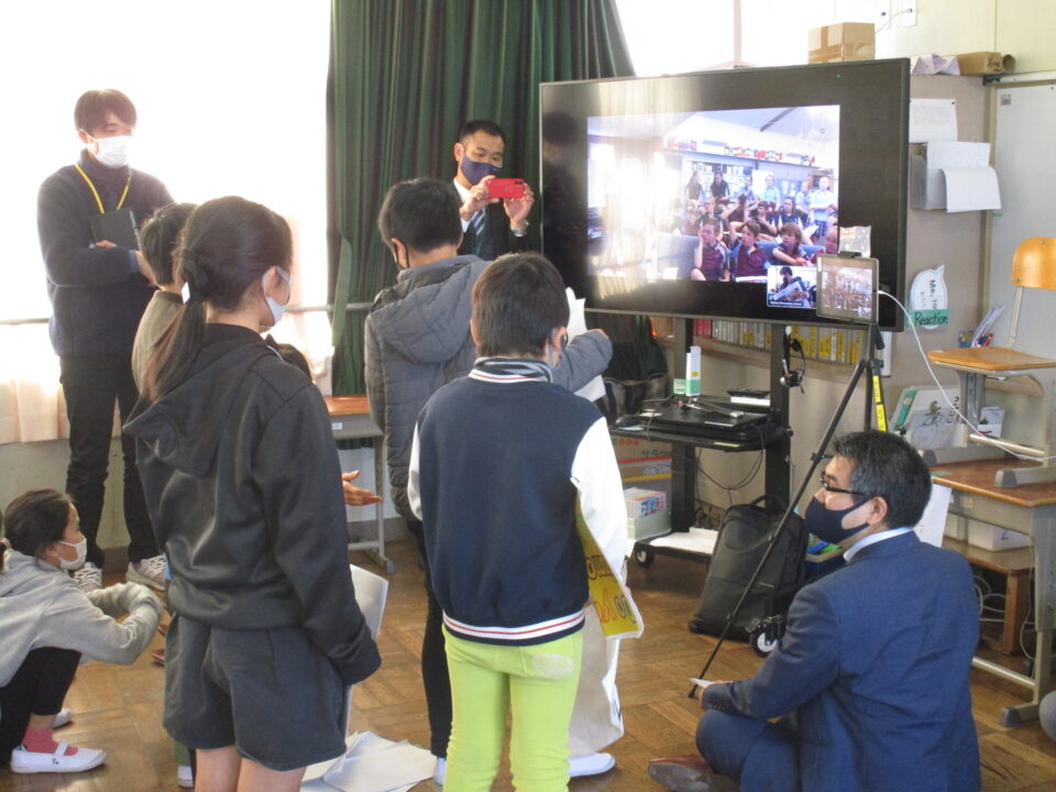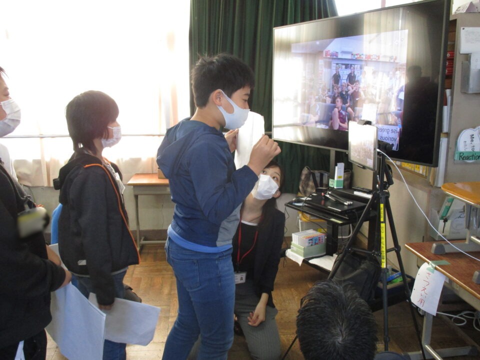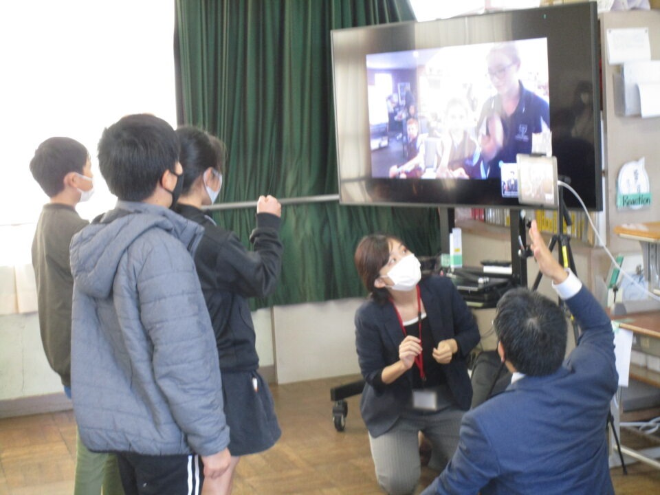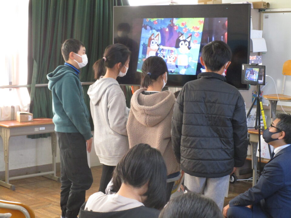お互いに自分の学校についてや好きな食べ物、好きな動物、好きな教科、好きなアニメキャラクターなどを交流しました。
