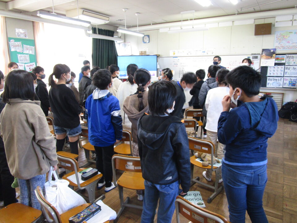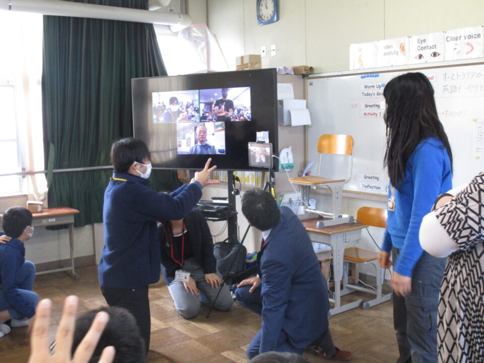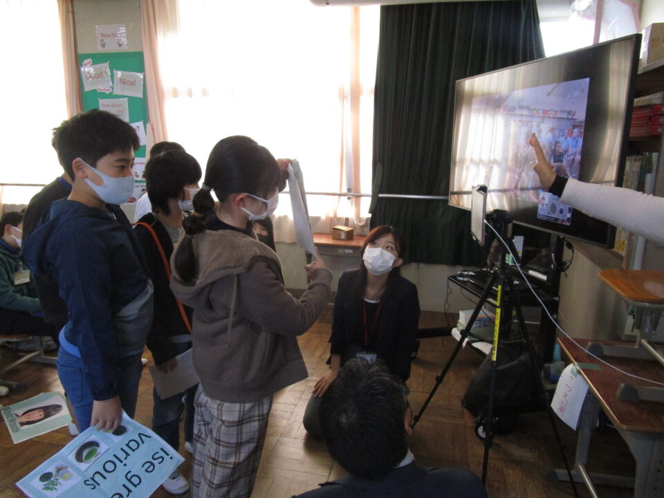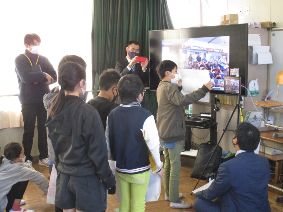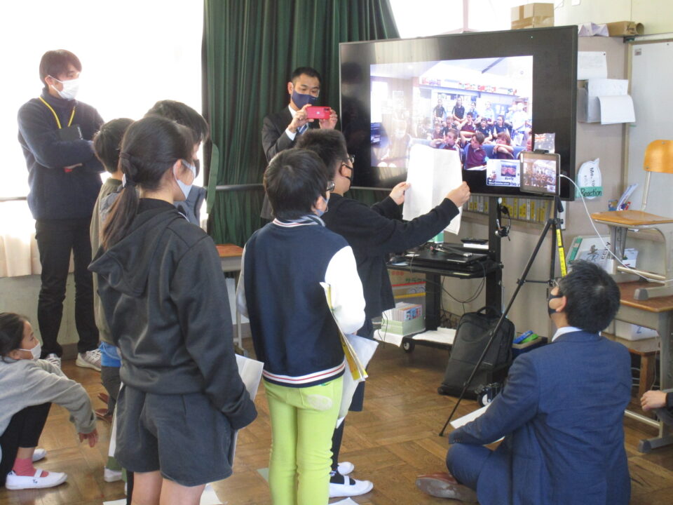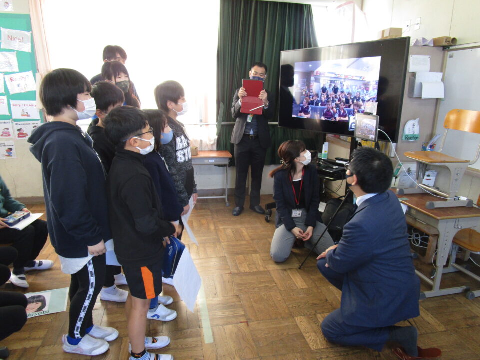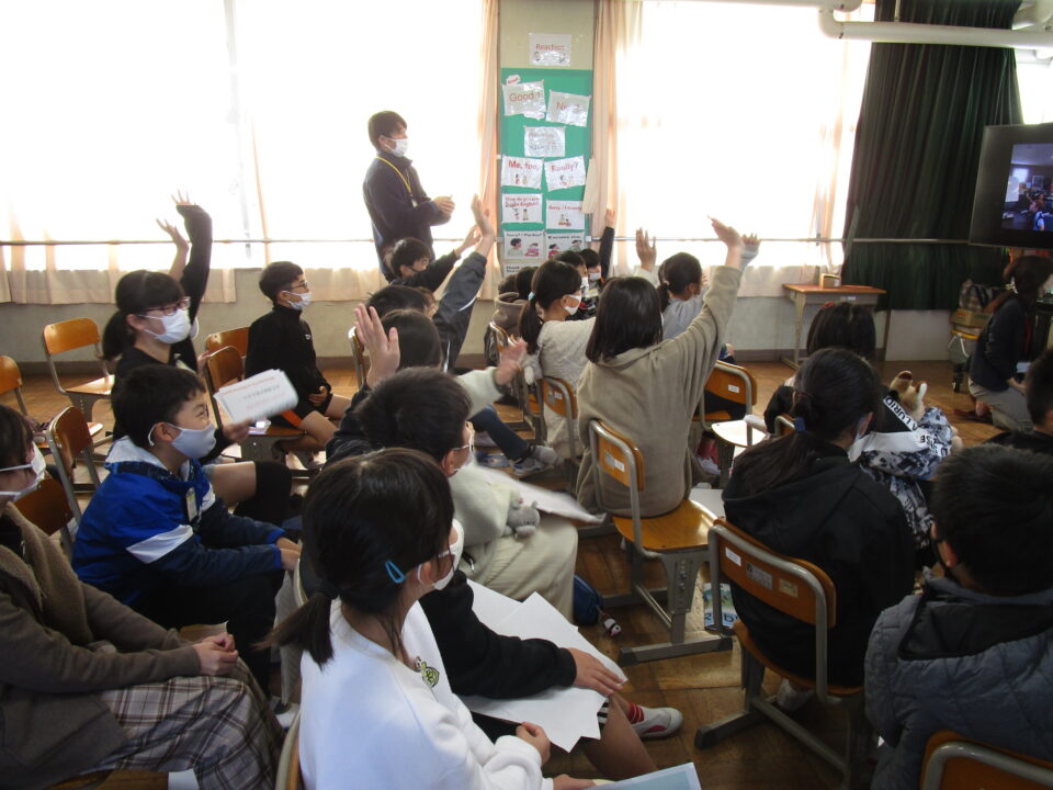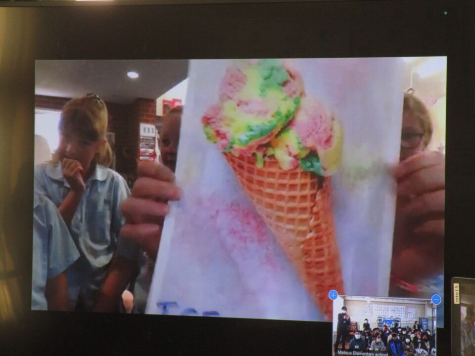 お互いに自分の学校についてや好きな食べ物、好きな動物、好きな教科、好きなアニメキャラクターなどを交流しました。