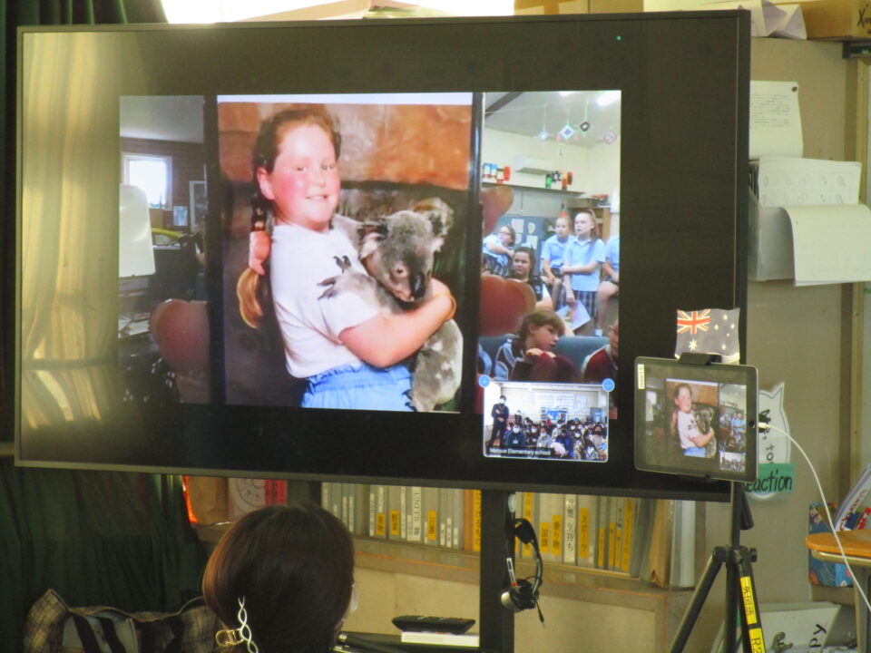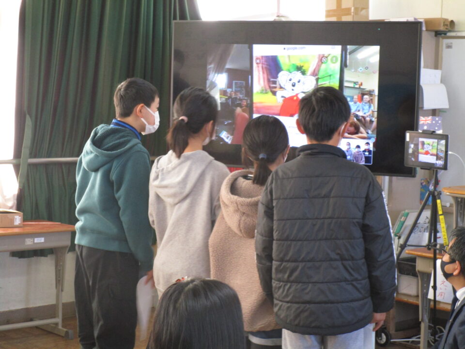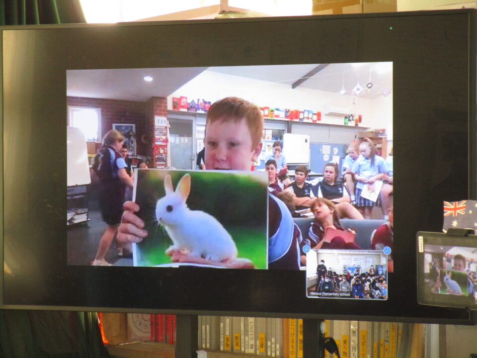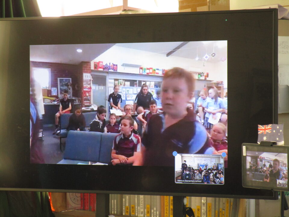 今日は、5-2の子どもたちがオーストラリアの小学生とオンラインで交流する日でした。
