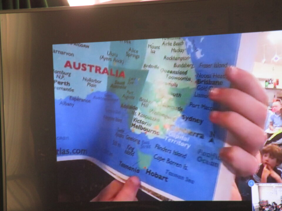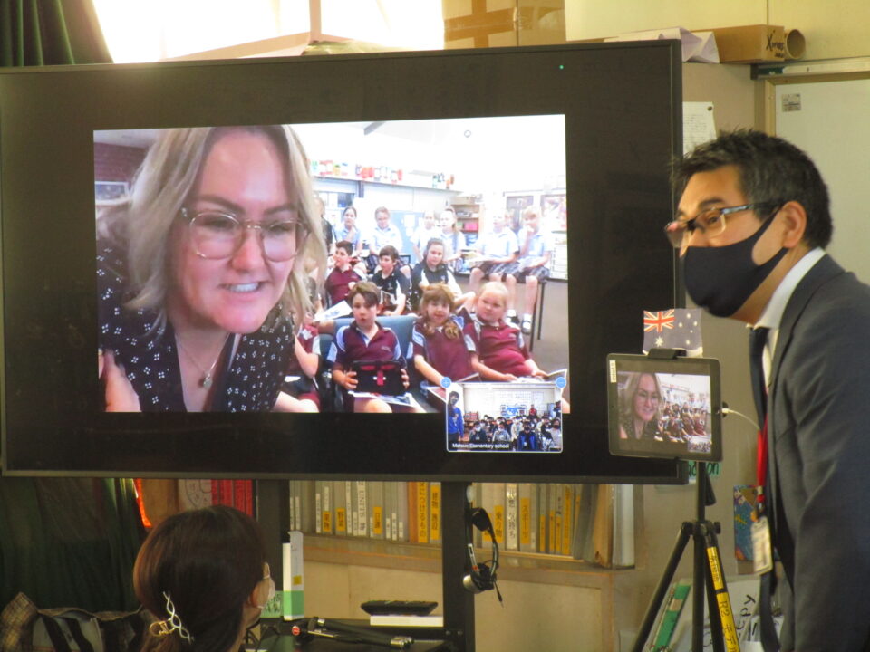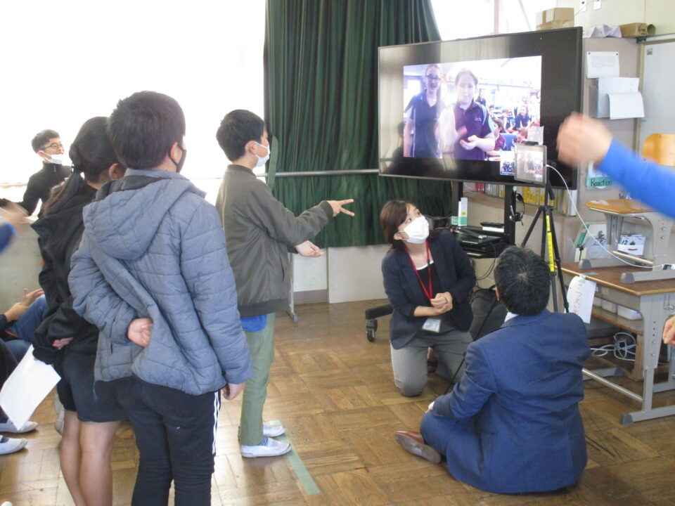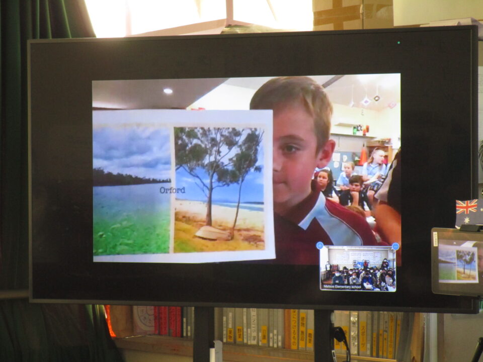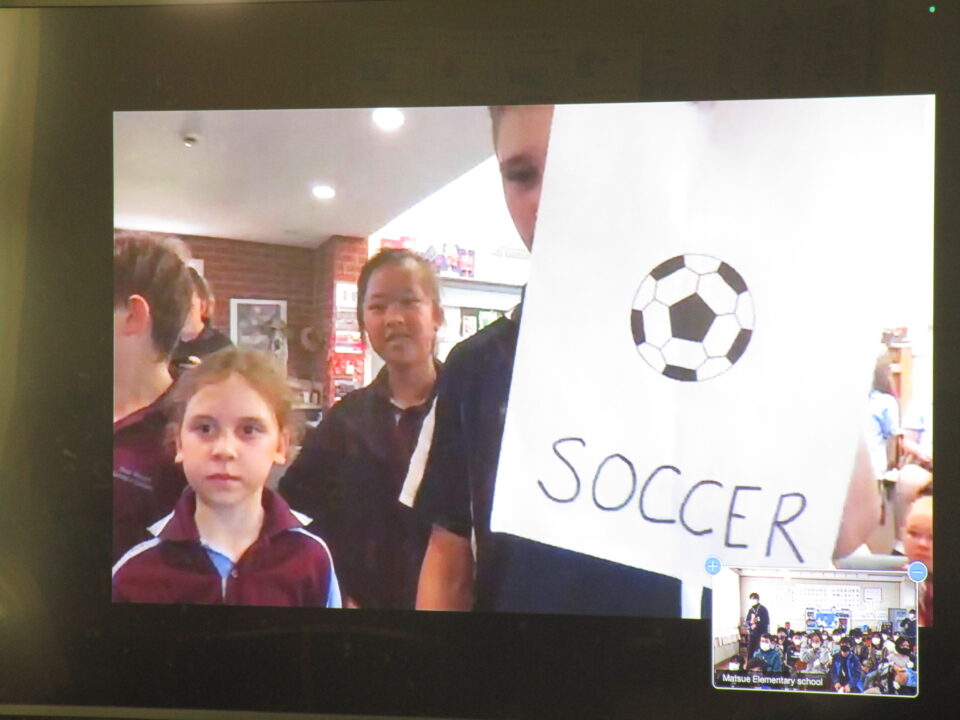 今日は、5-2の子どもたちがオーストラリアの小学生とオンラインで交流する日でした。