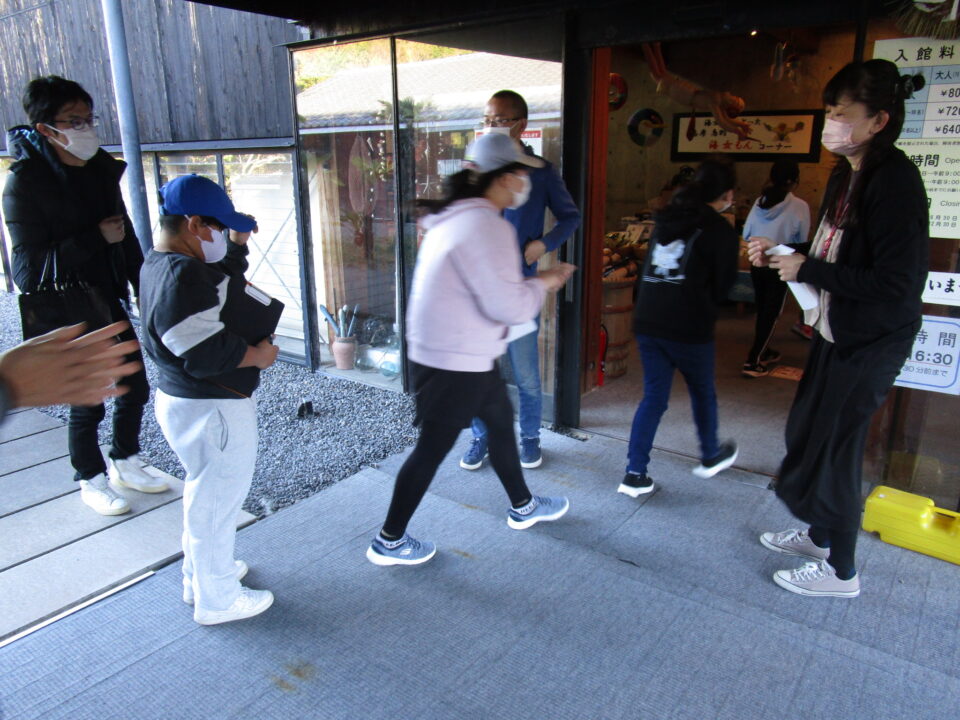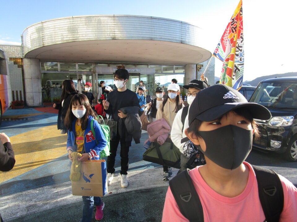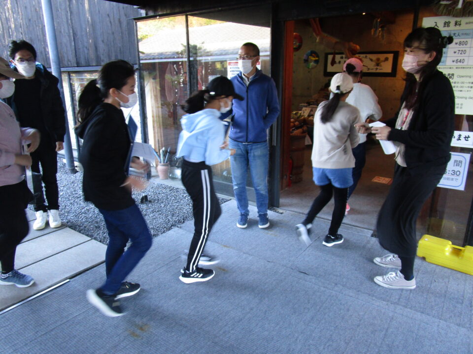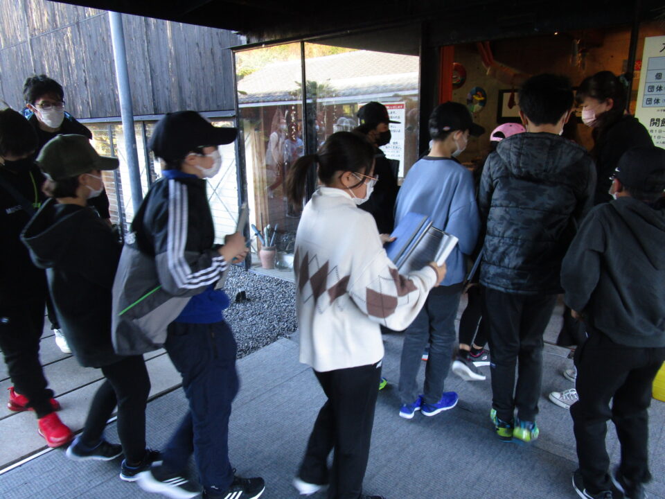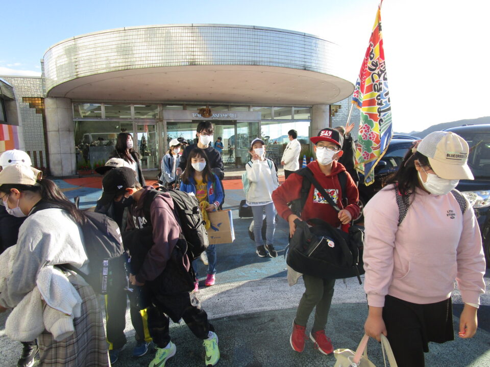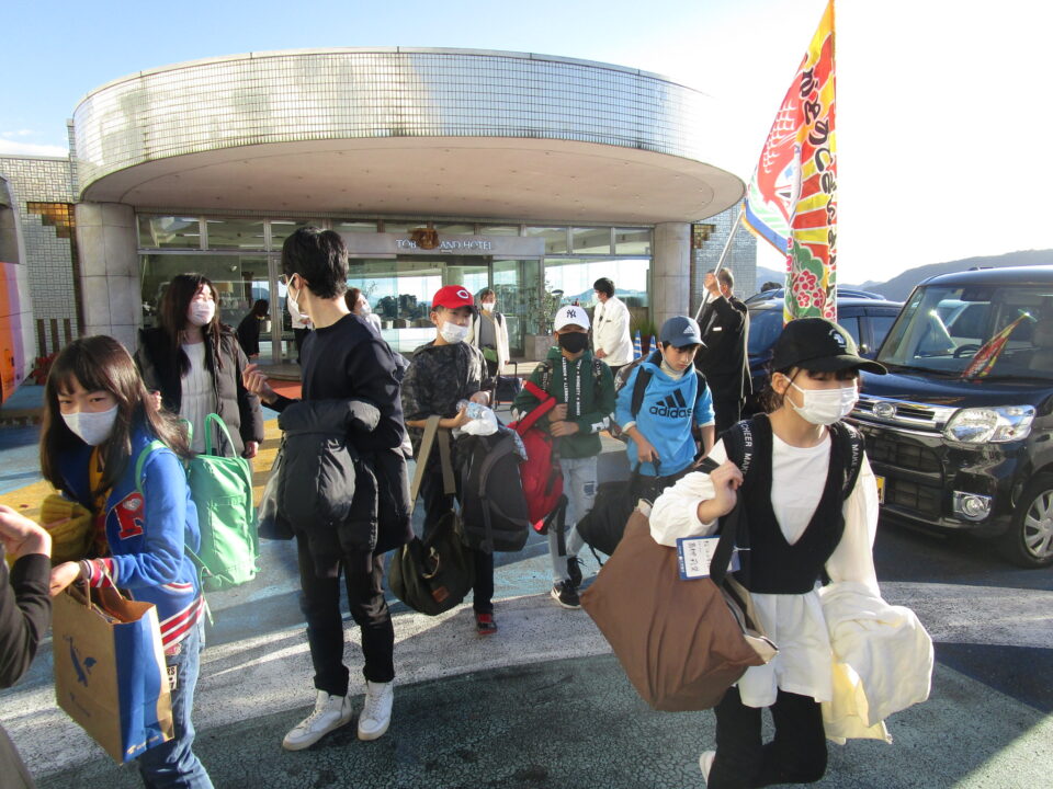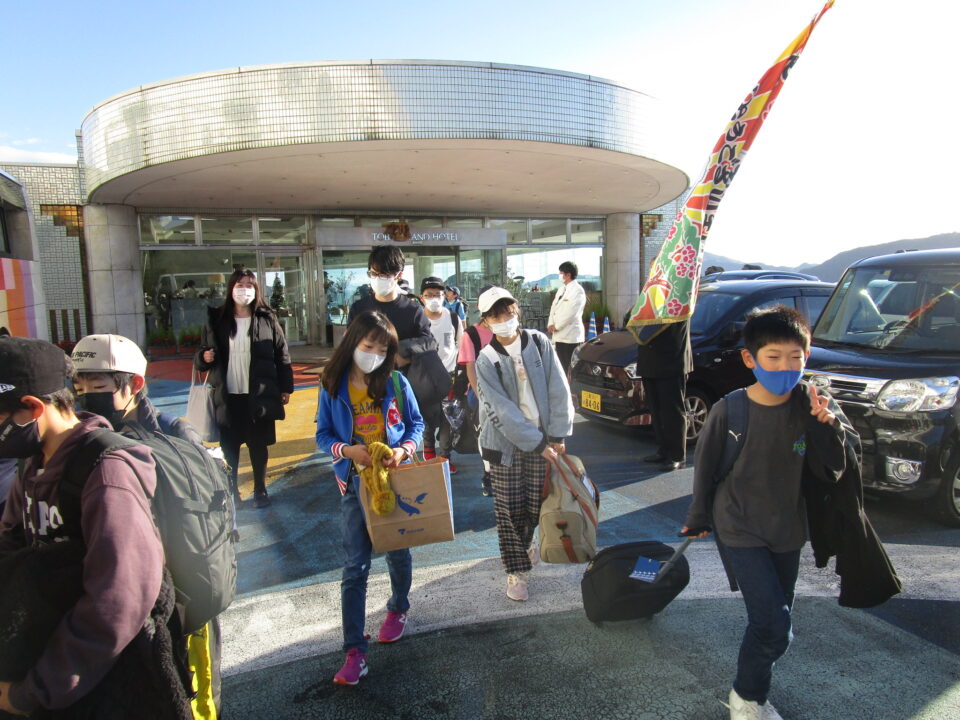 部屋の片づけの合格をもらったら、ロビーに集合!