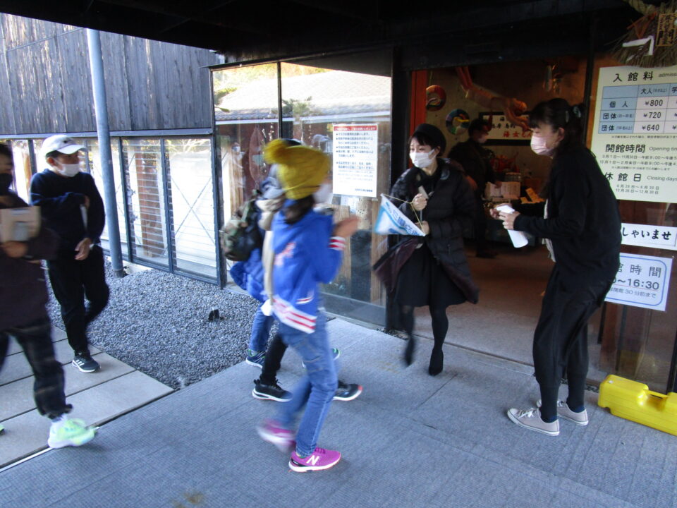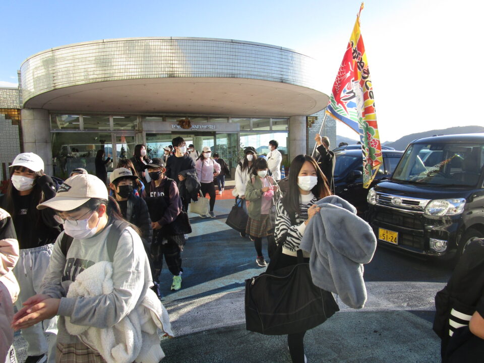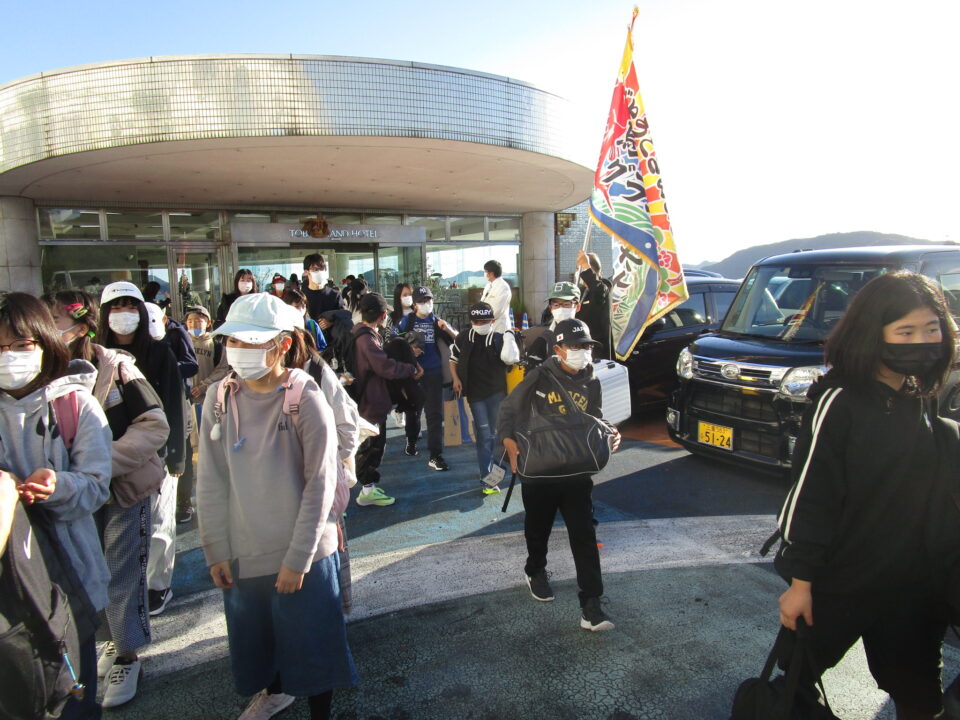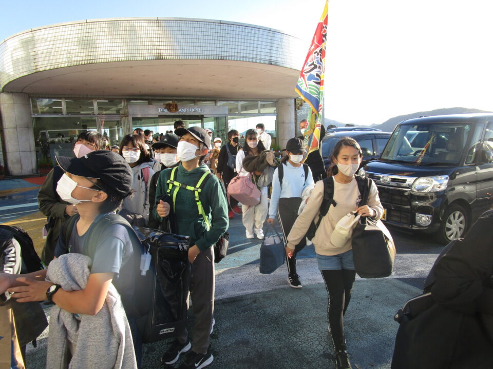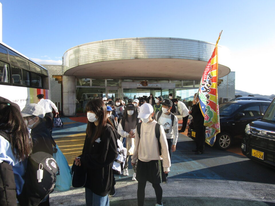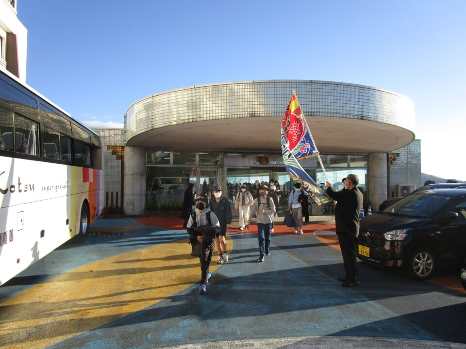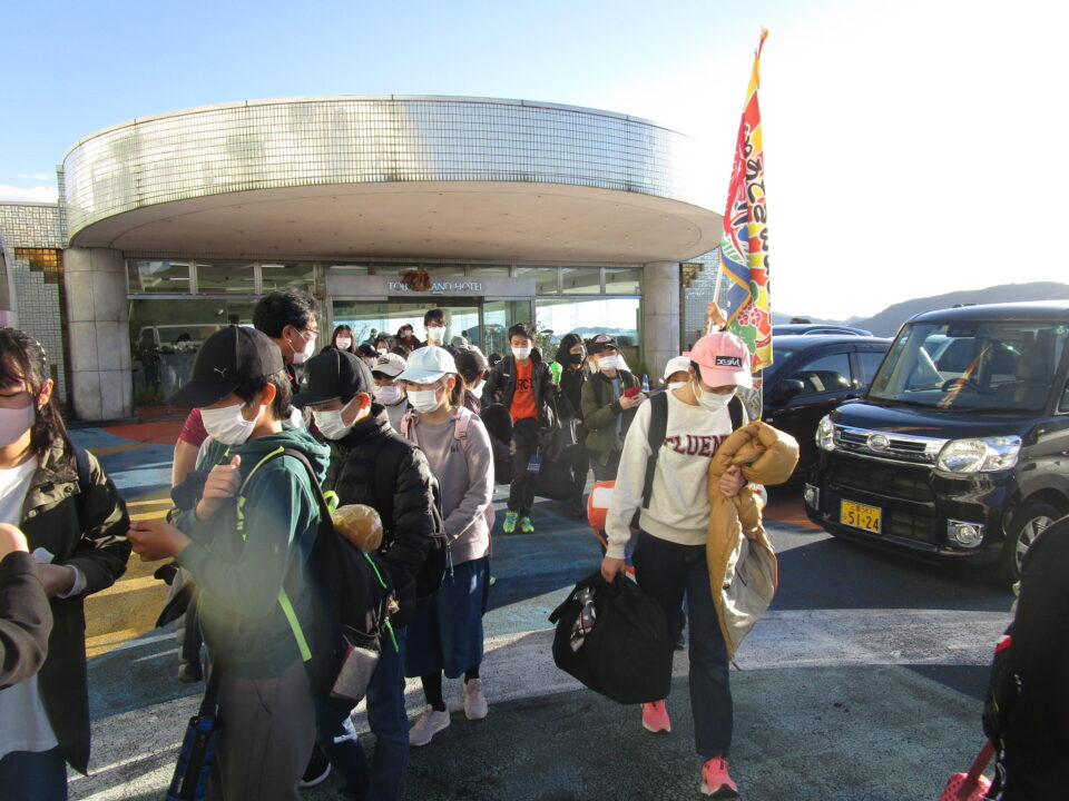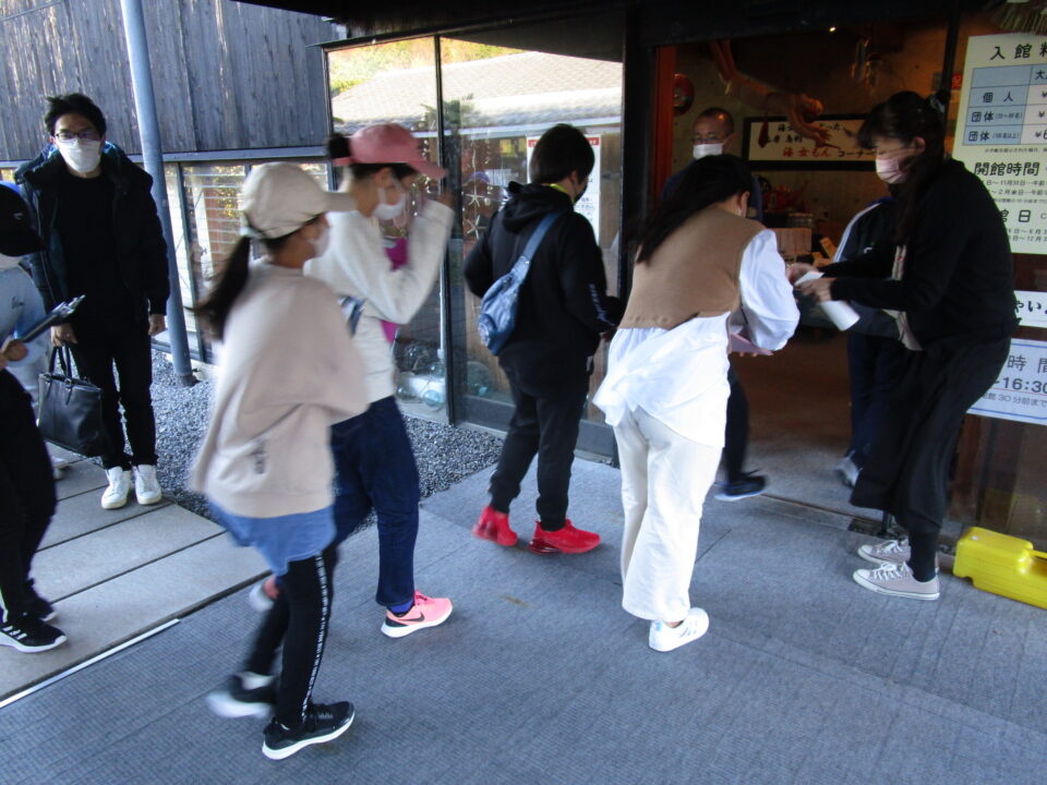 部屋の片づけの合格をもらったら、ロビーに集合!