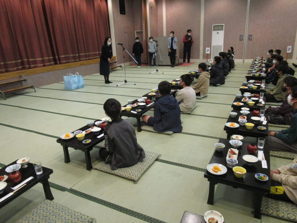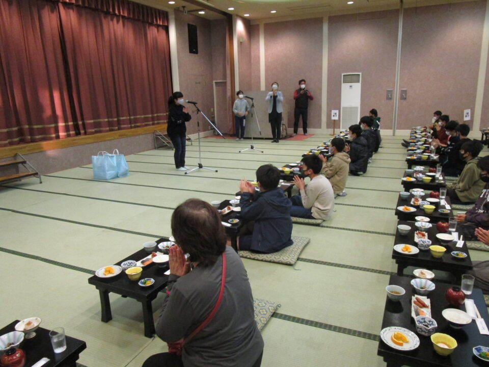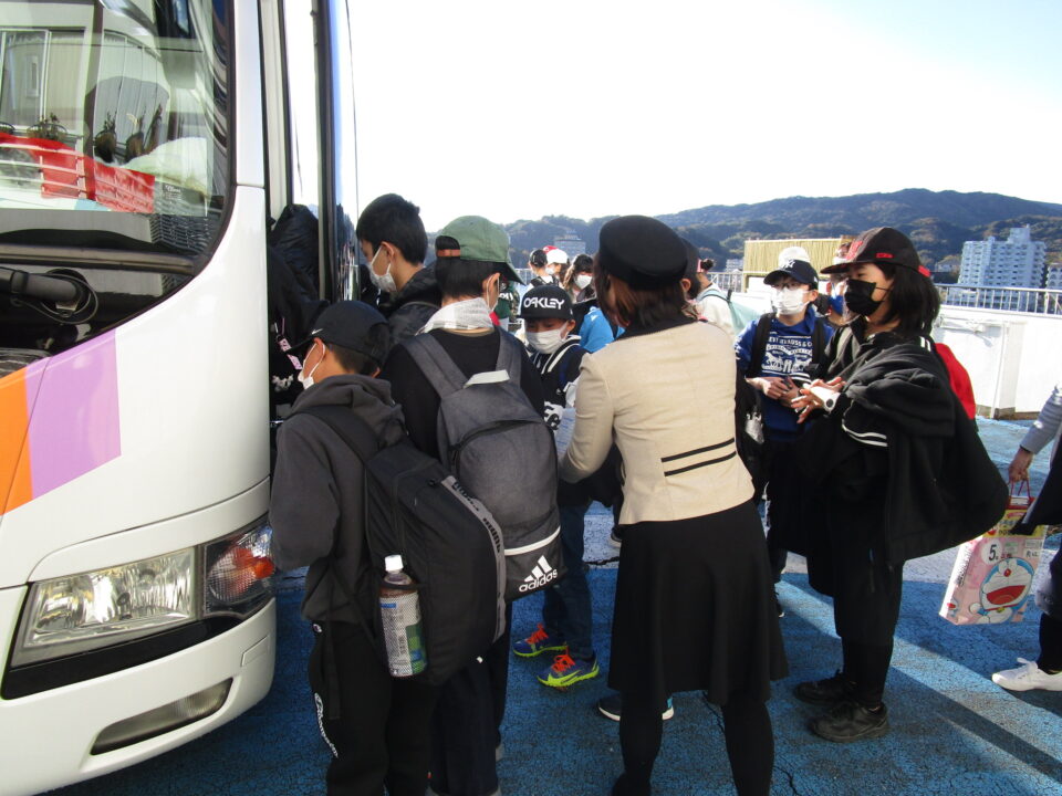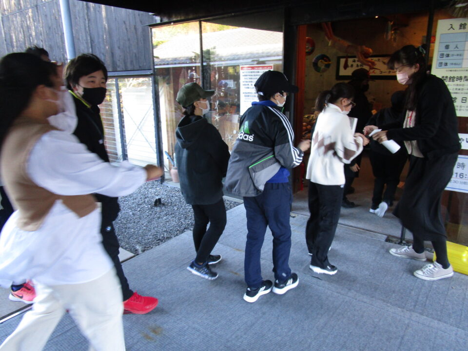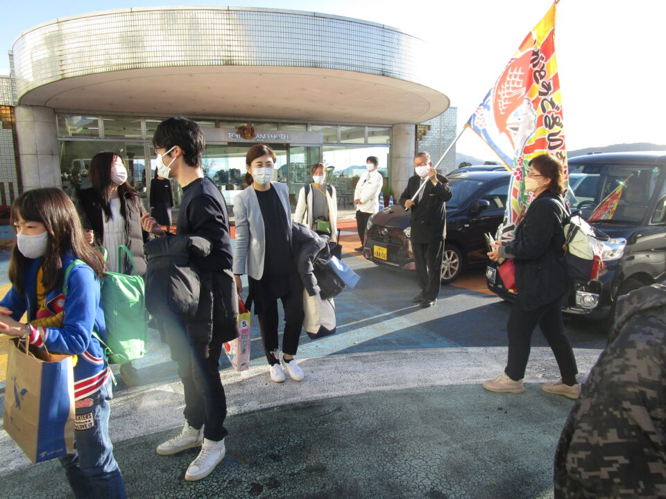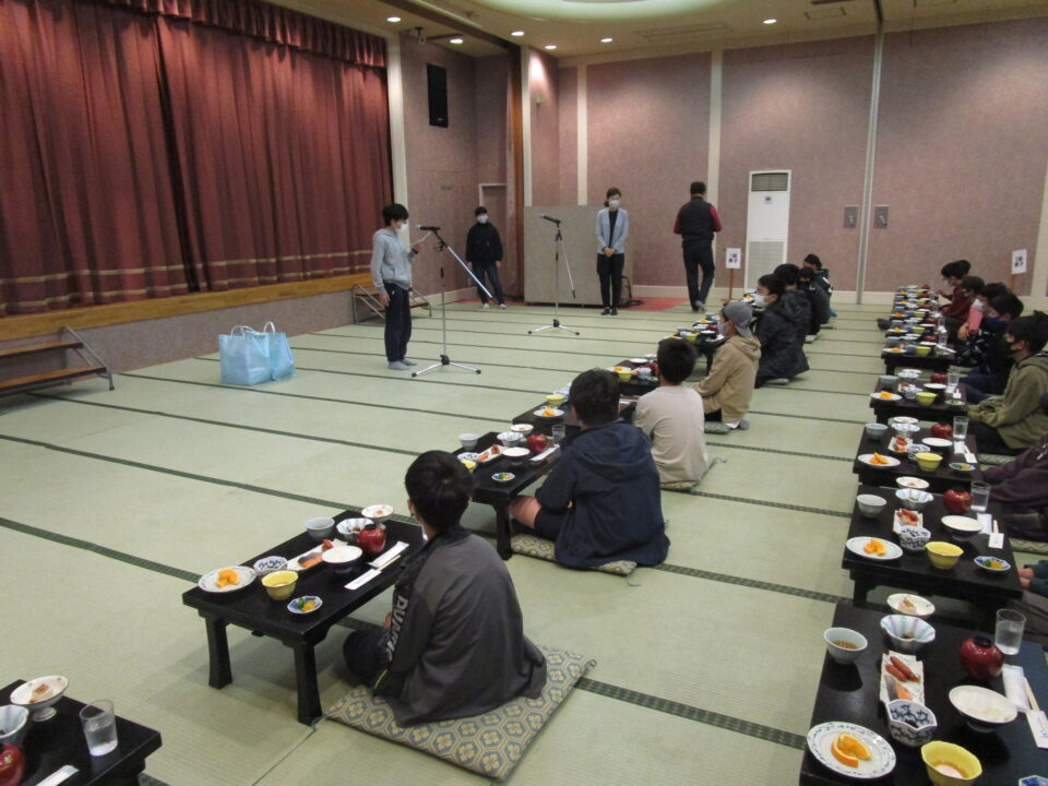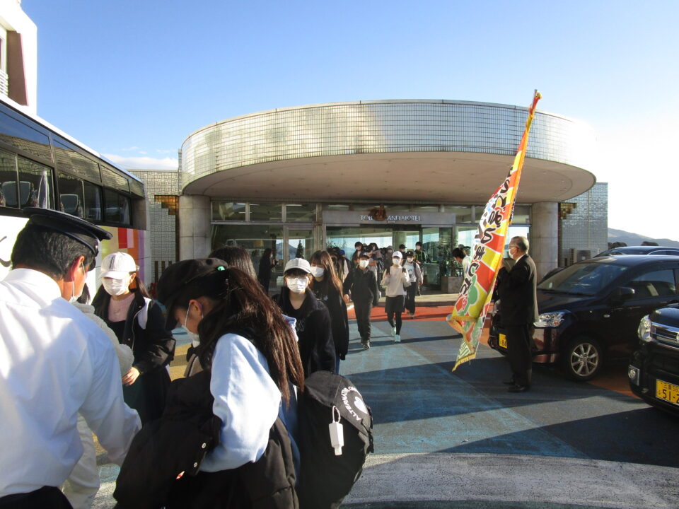 部屋の片づけの合格をもらったら、ロビーに集合!