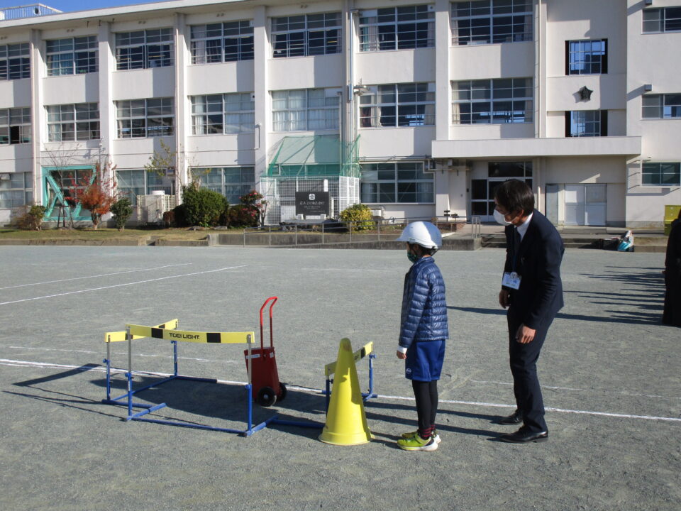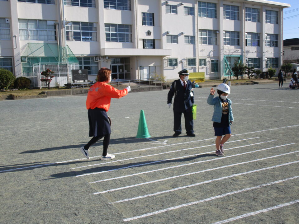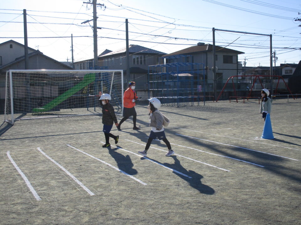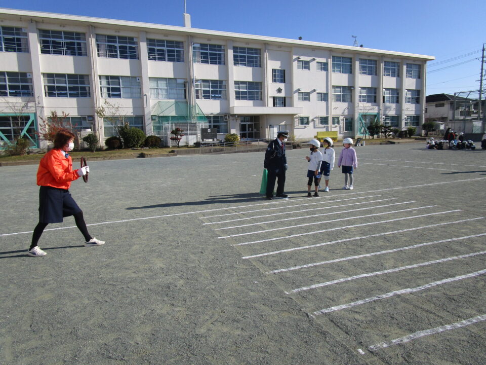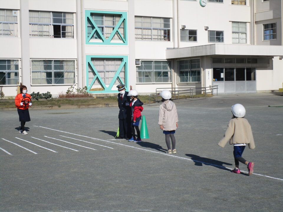 とまとーずさんと交通指導員さんに来ていただき、1,2年生は歩き方、横断歩道のわたり方等を練習しました。学校でも担任の先生や通学団会で地区担当の先生から、何度も教えてもらっていますが、今日は、再確認ですね。