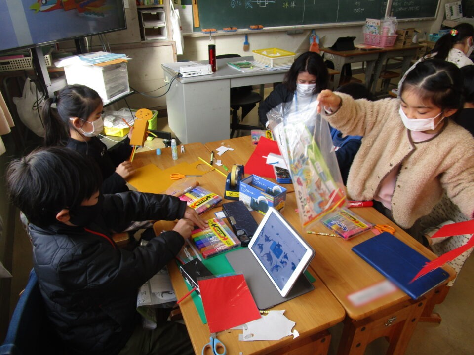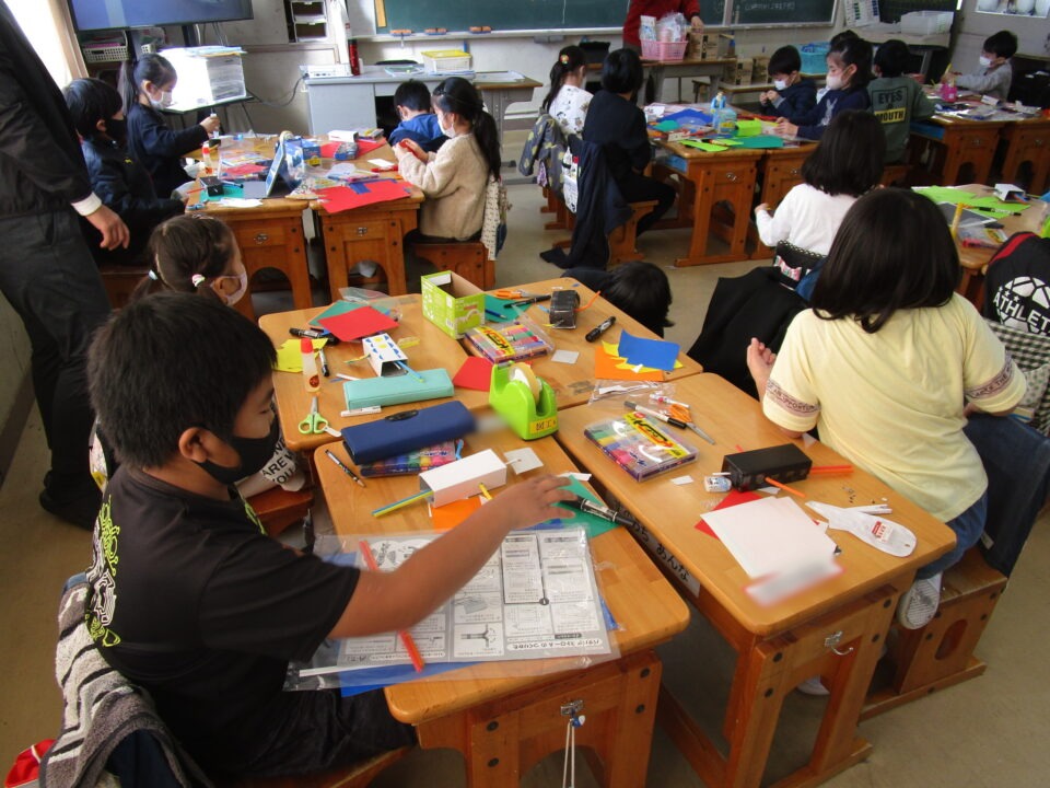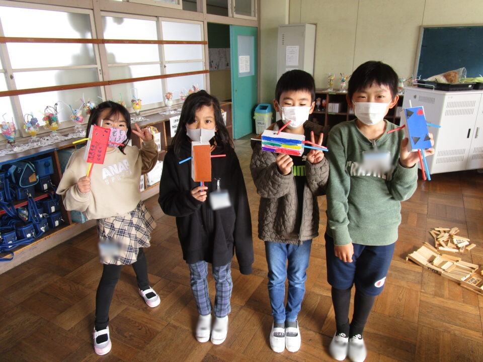 2年生は、ストローや画用紙を使って、動くおもちゃ「パタパタストロー」を作っていました。