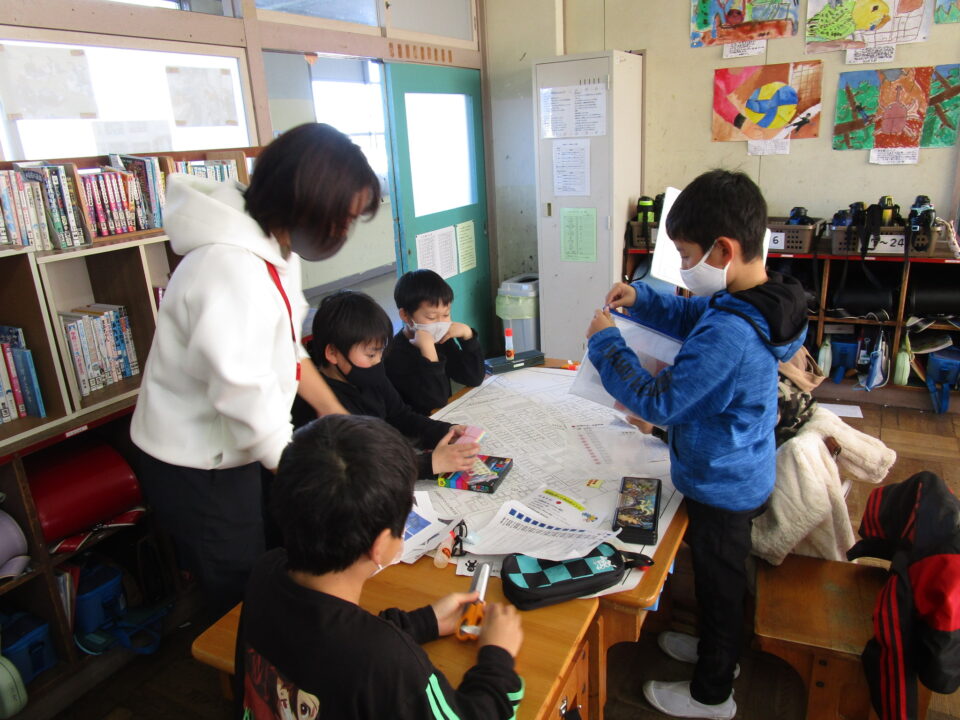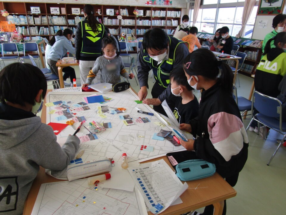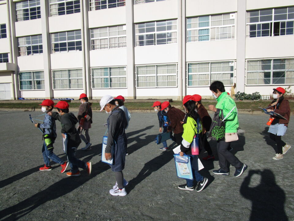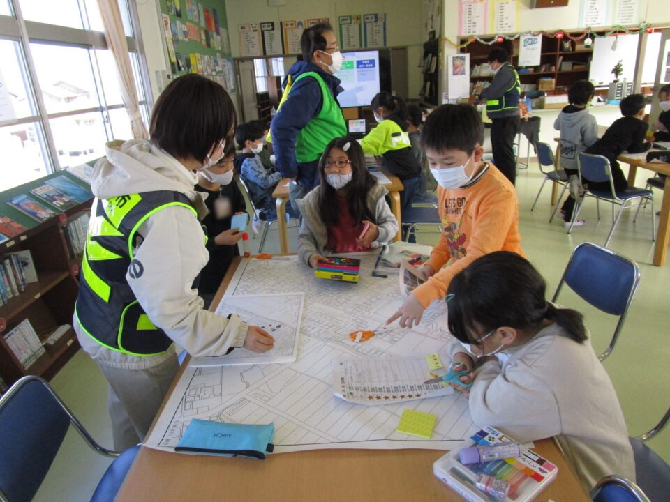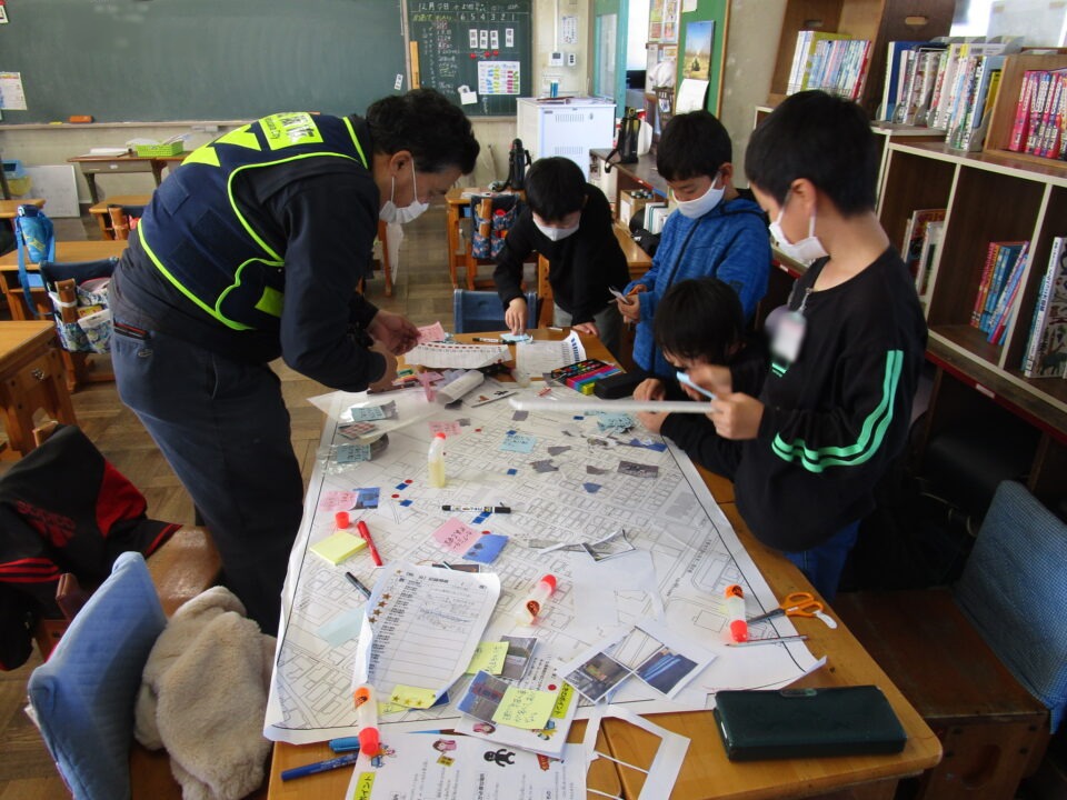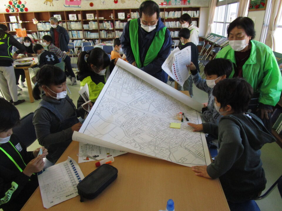 年生ねんせいたちは、自分じぶんたちのんでいる地域ちいき交通安全こうつうあんぜん防災ぼうさい防犯ぼうはんの3つの観点かんてん観察かんさつするために、ウォッチングにかけました。