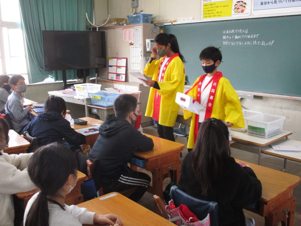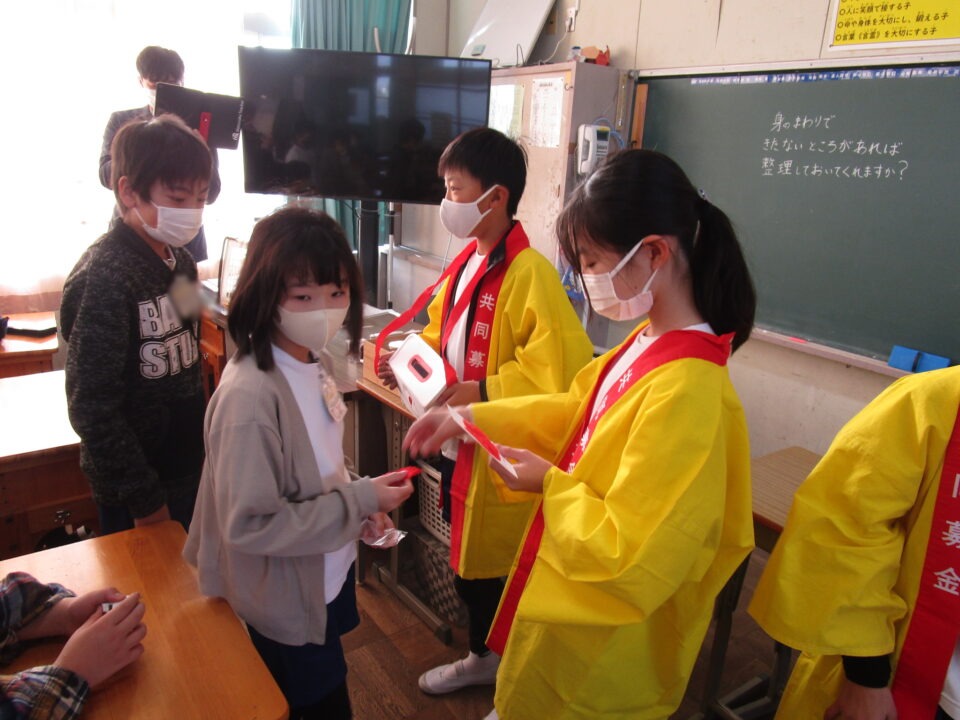 この募金は、社会福祉に使われます。たくさんの人が協力してくれましたね。ありがとうございます。