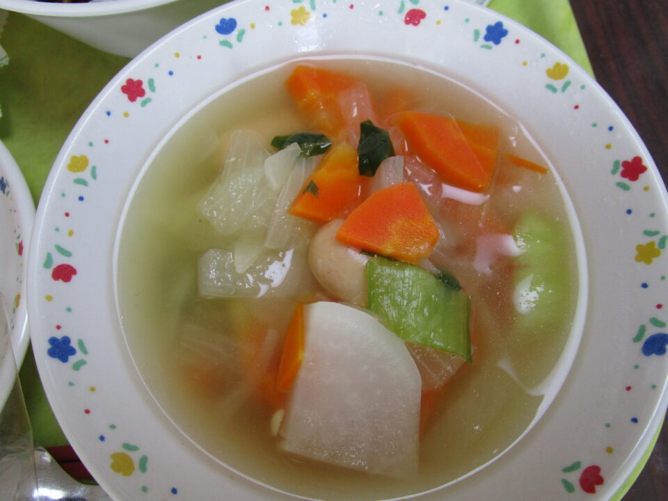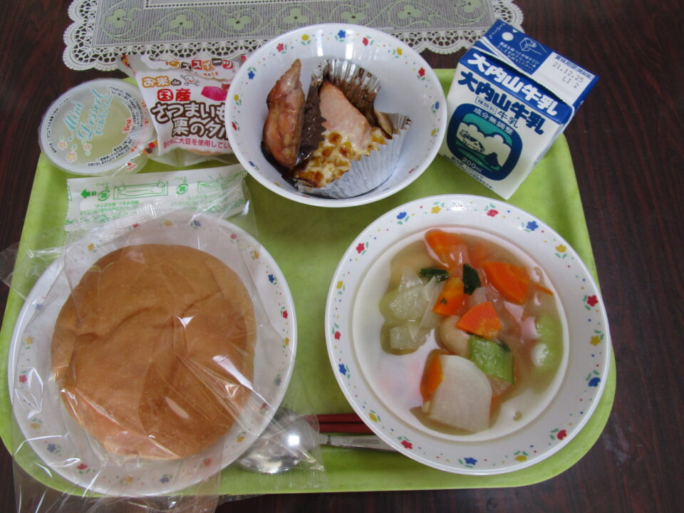 米粉入りパン(丸形)、牛乳、ポトフに