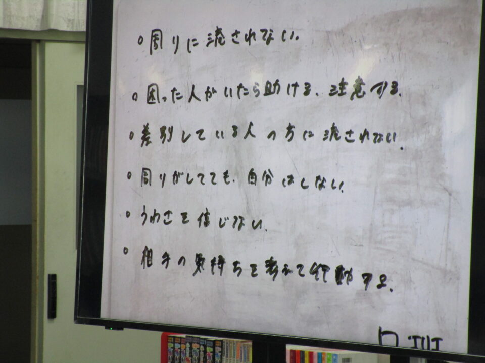 〇(略)人権委員になって、いろいろな差別があって今も続いていることが分かりました。これからは、いろいろな人に寄り添えるようになっていきたいなと思いました。