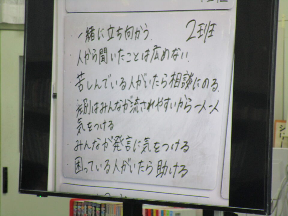 10日(金)の西中校区人権フォーラムを開催し、昨日、13日(月)に西中学校で「人権フォーラム実行委員会」がありました。西中、阿坂小、伊勢寺小、松江小の実行委員の子たちが集まり、ふり返りをしました。