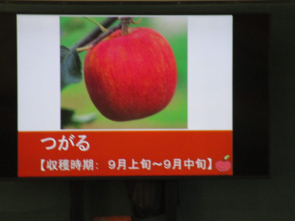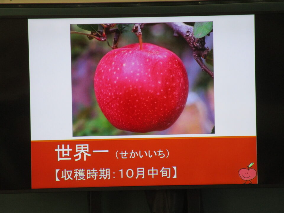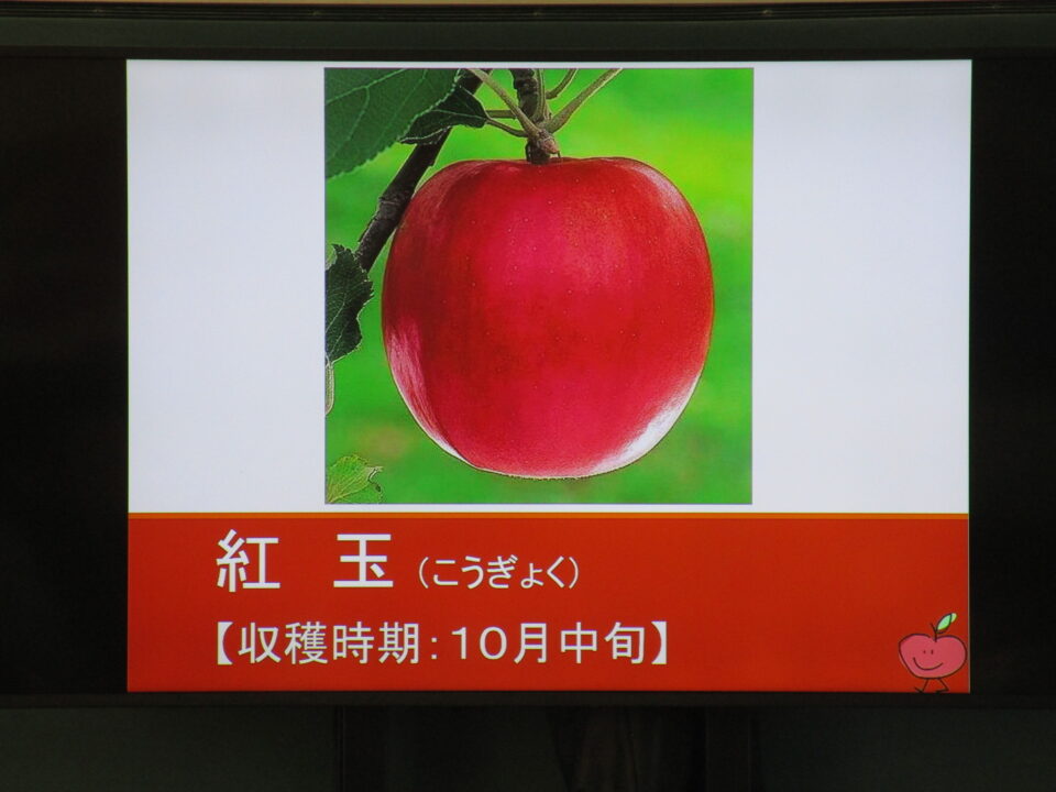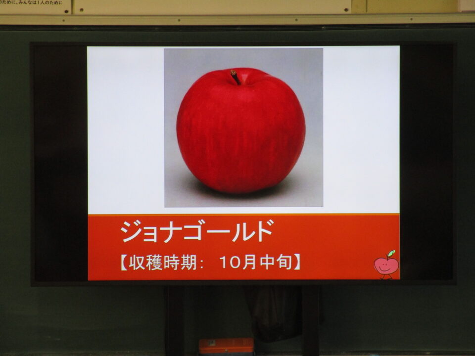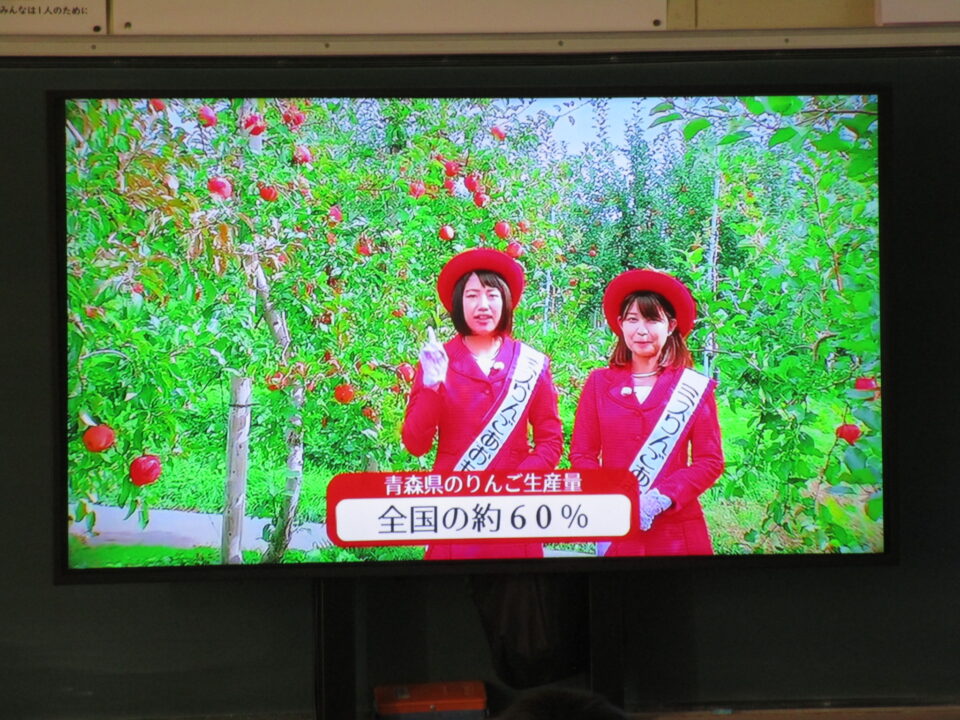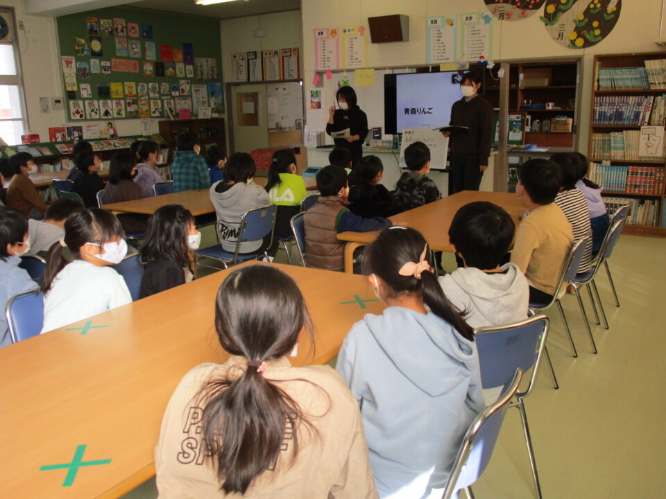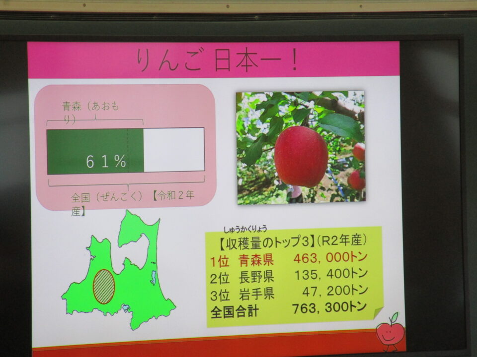 今日は、3年生~6年生で「青森県産のりんご」の学習がありました。