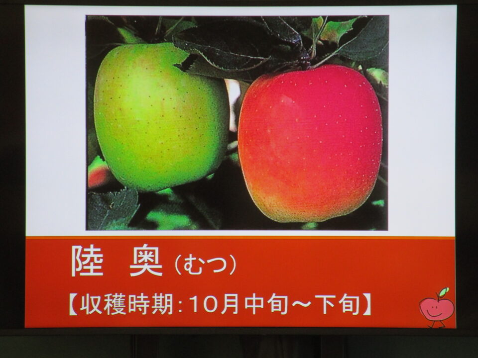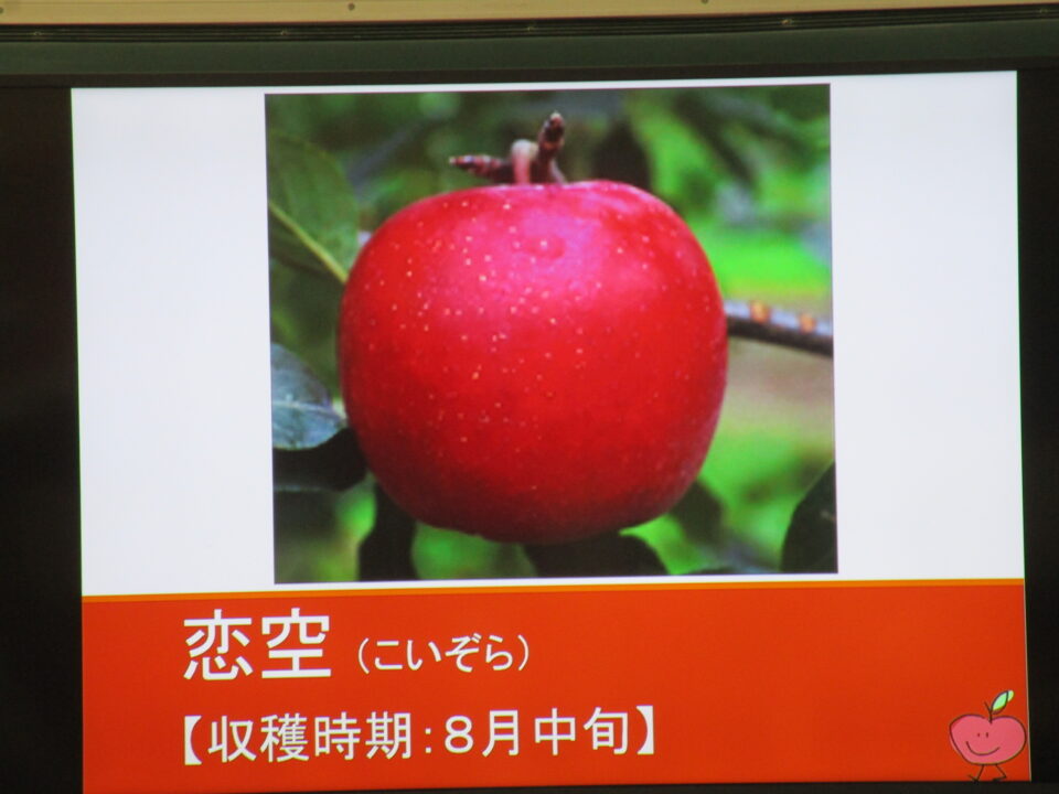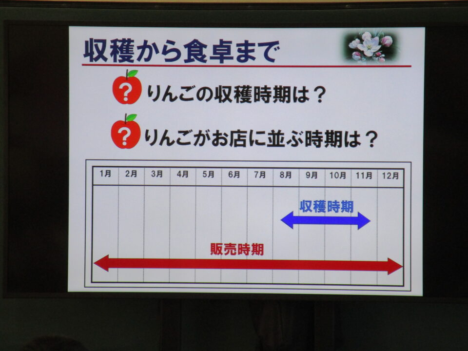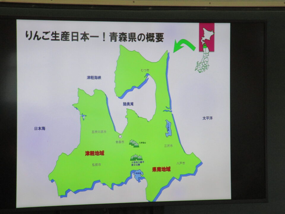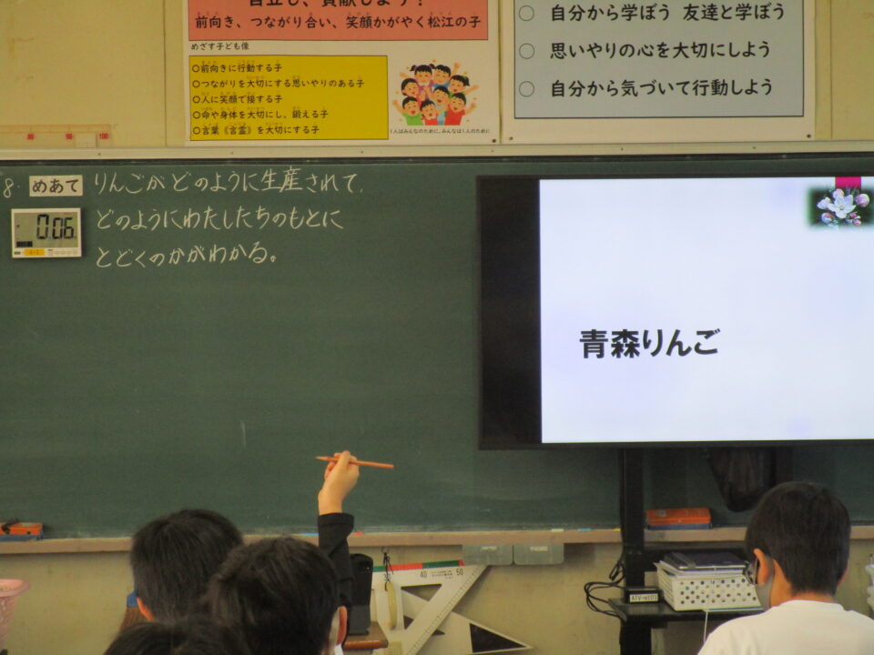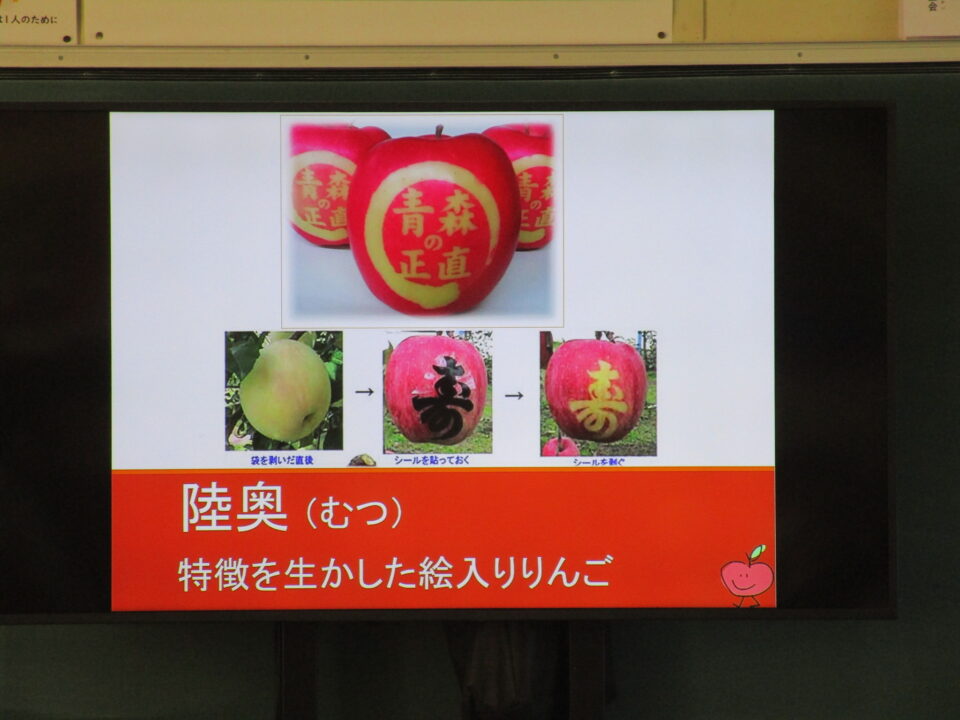 今日は、3年生~6年生で「青森県産のりんご」の学習がありました。