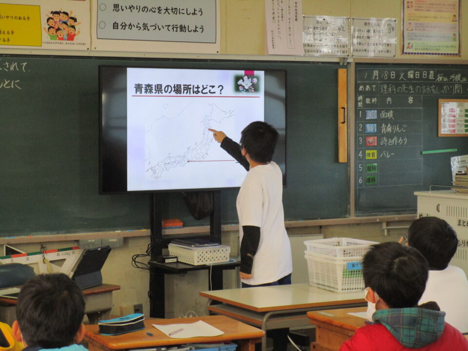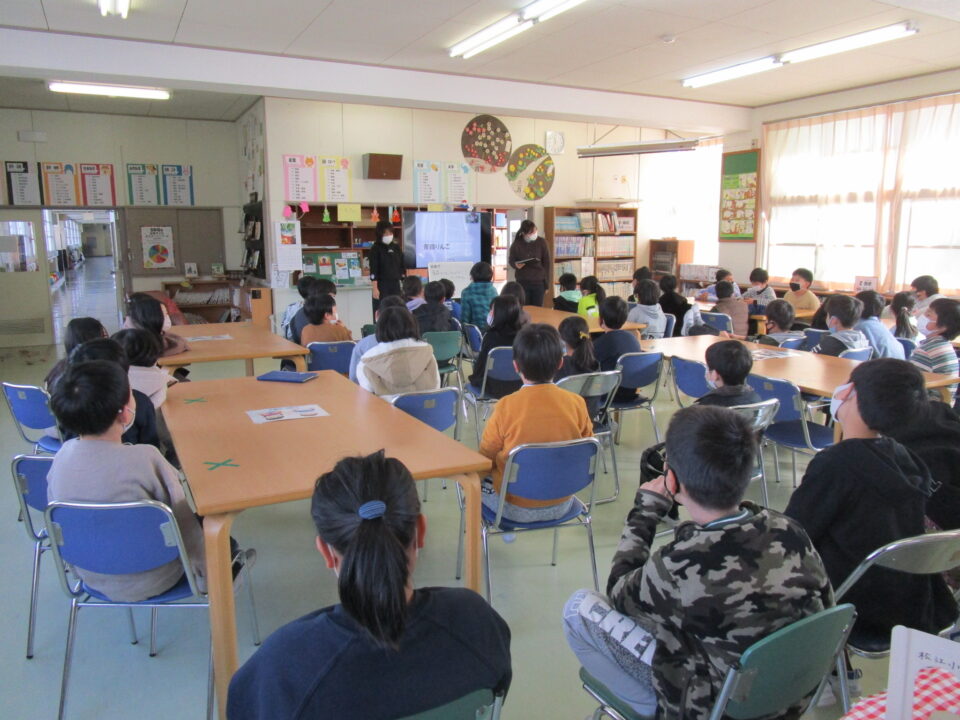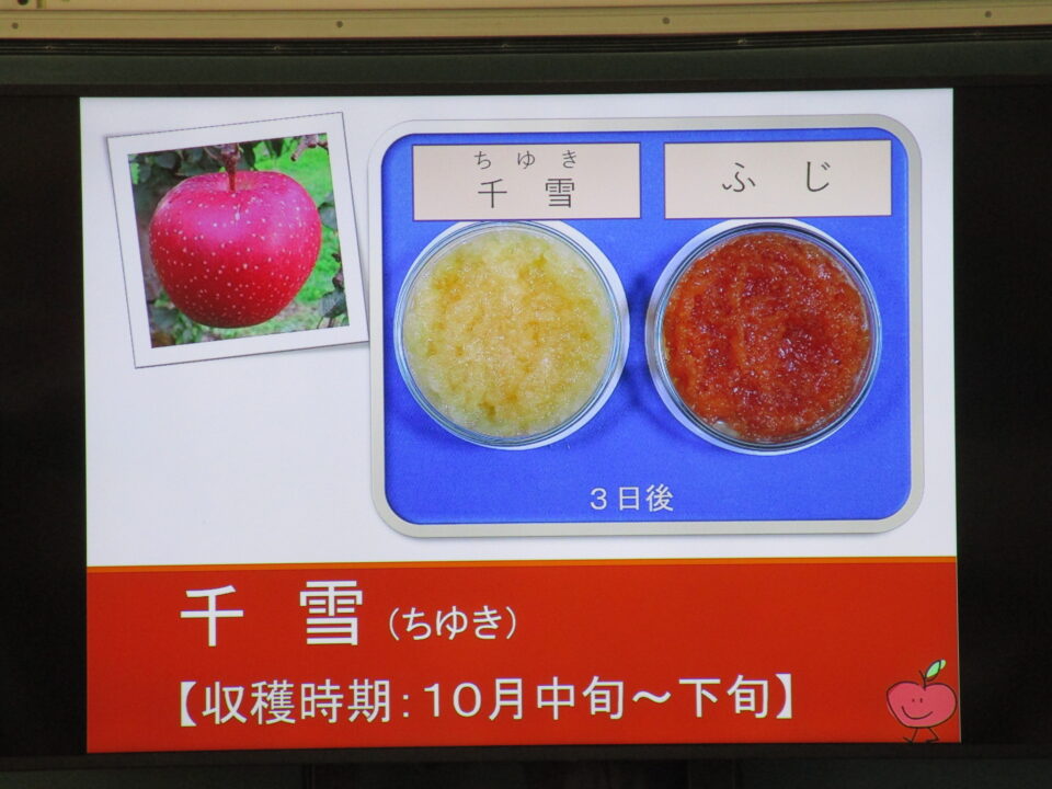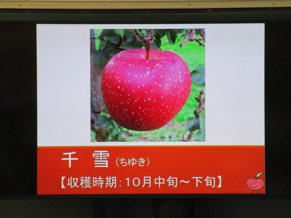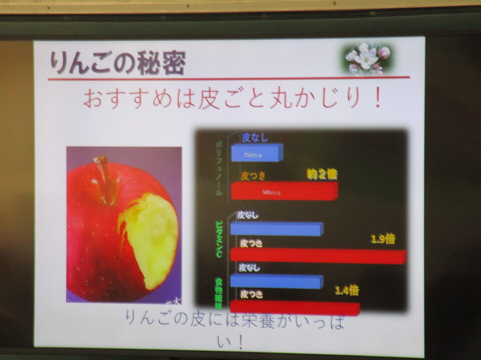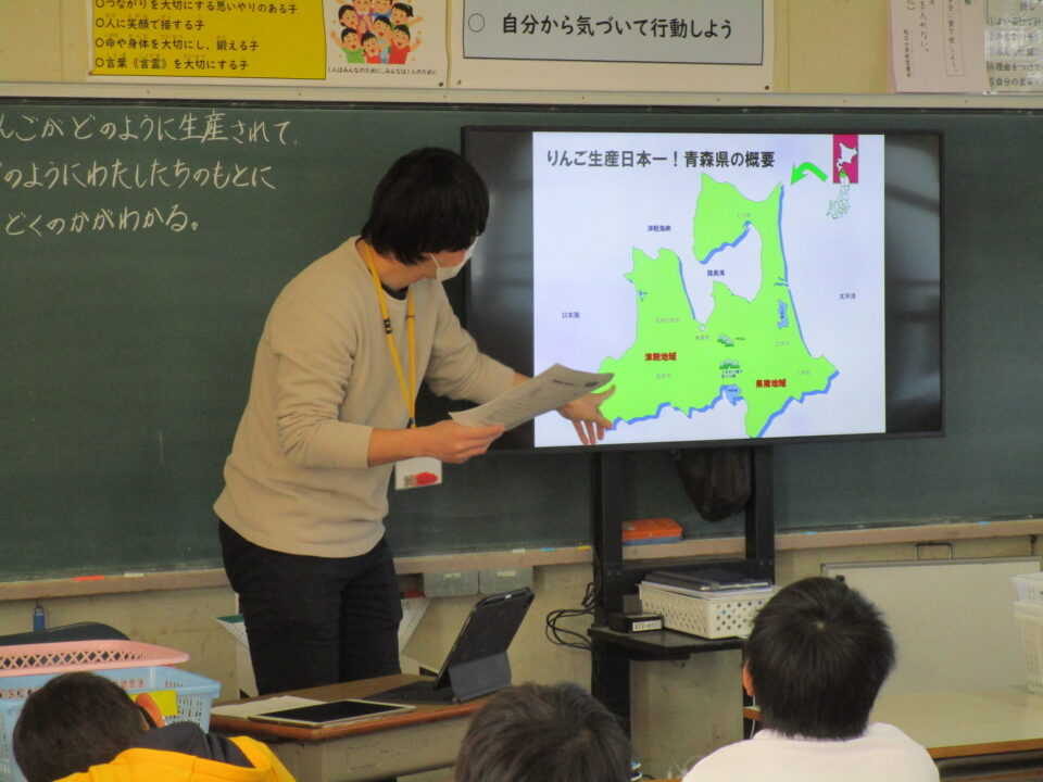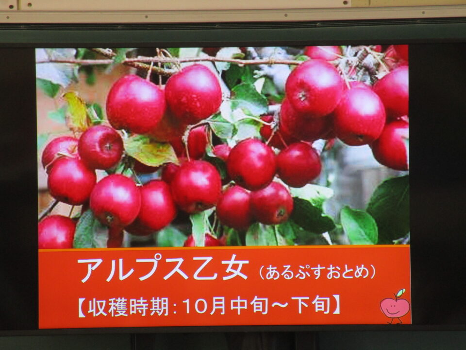今日は、3年生~6年生で「青森県産のりんご」の学習がありました。