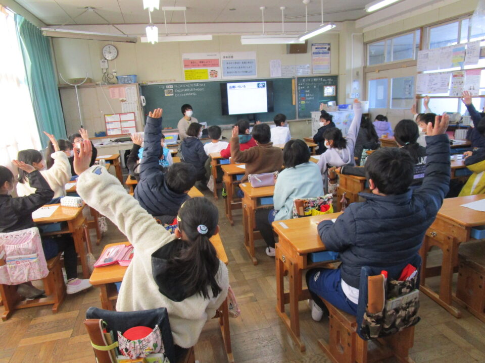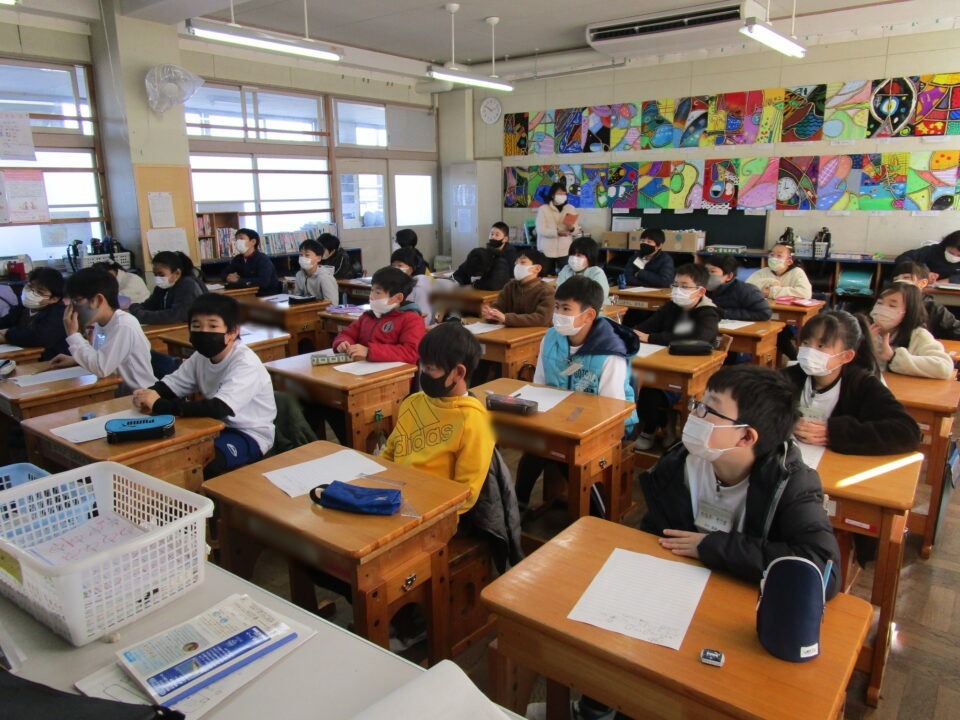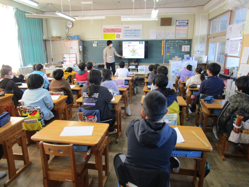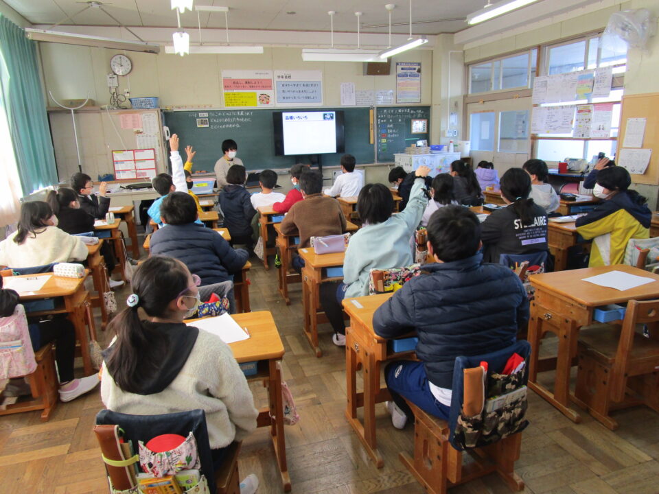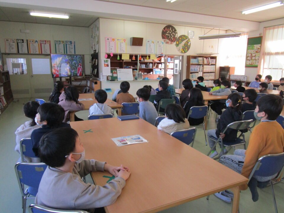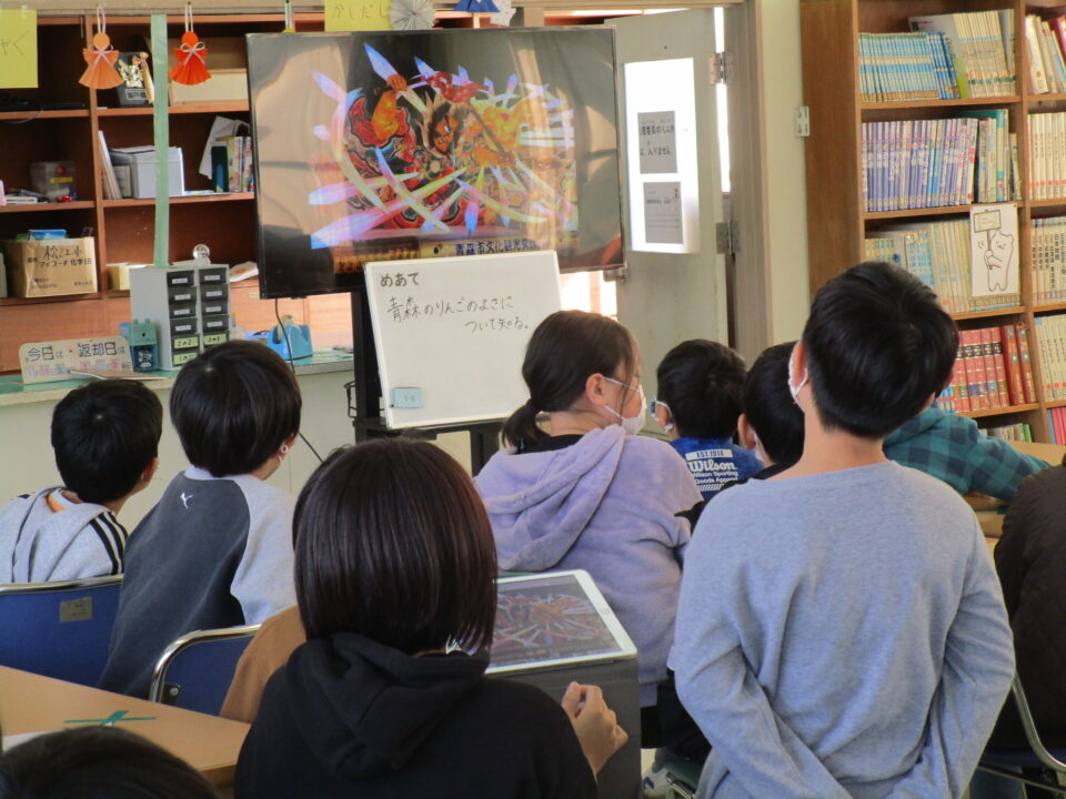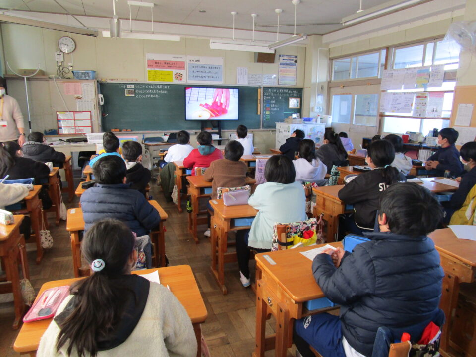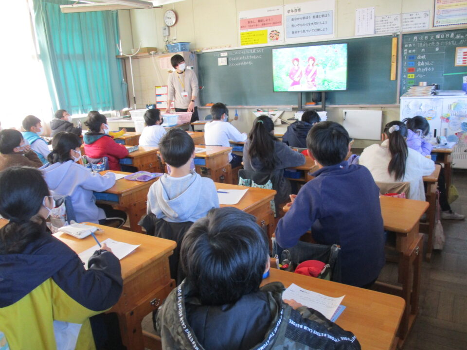 当初は、青森県から来ていただき、お話をしていただく予定でしたが、コロナ感染の拡大の恐れがありますので、DVDなどを送っていただき、担任が授業を行いました。