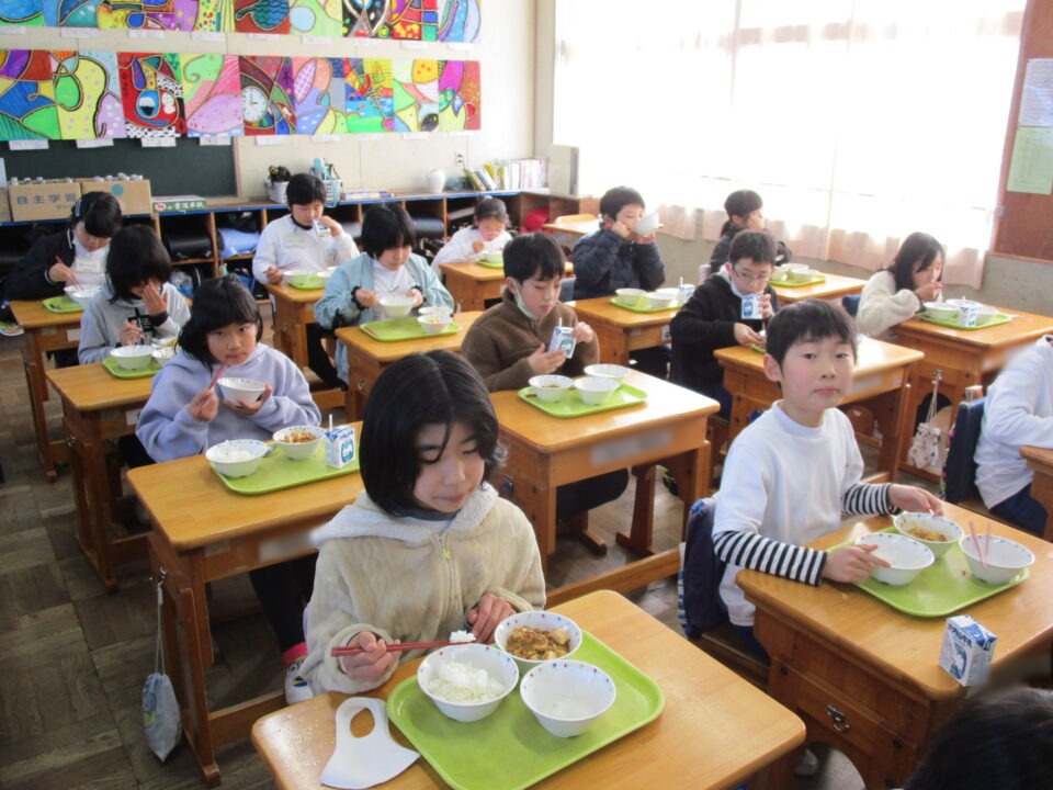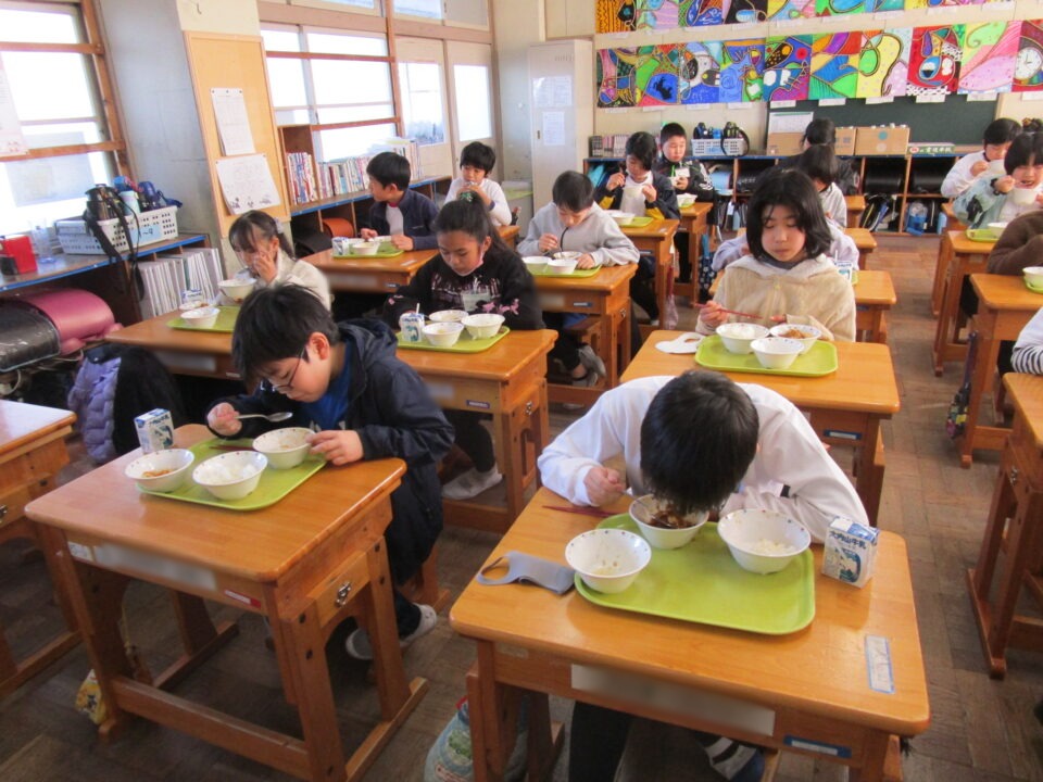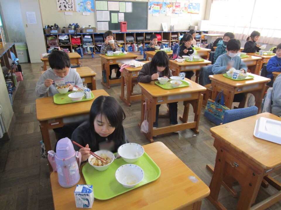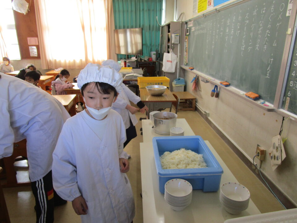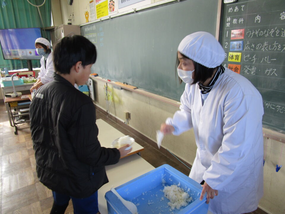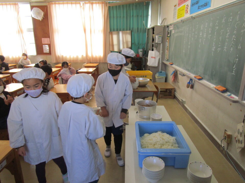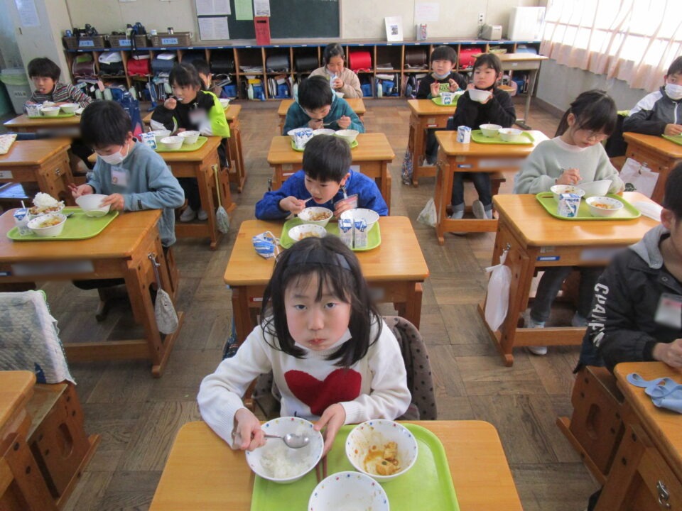 学校では、黙食にしております。おかわりをする際は、マスクをしてもらいに行き、教職員が配食を致します。
