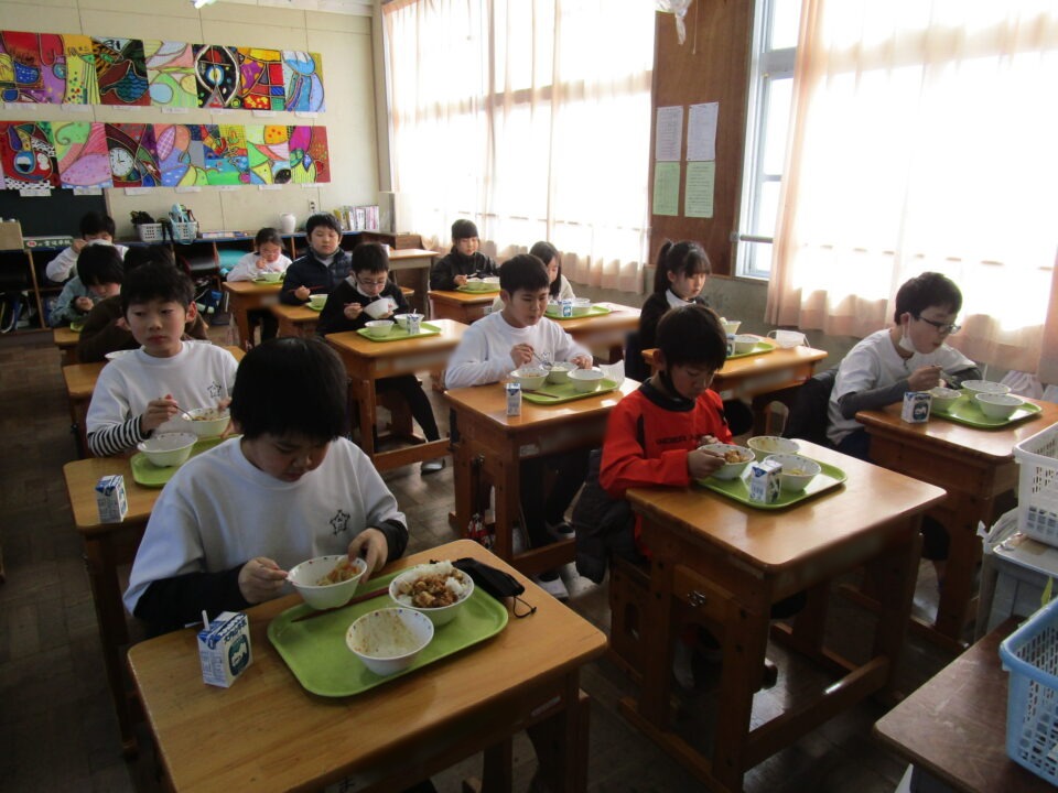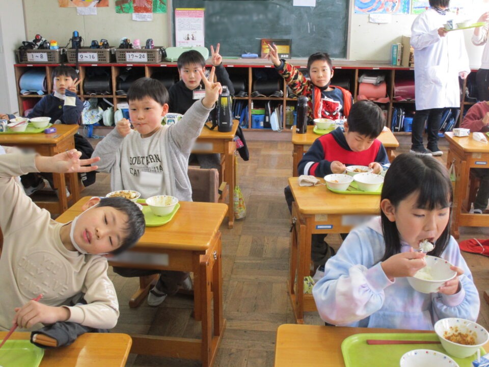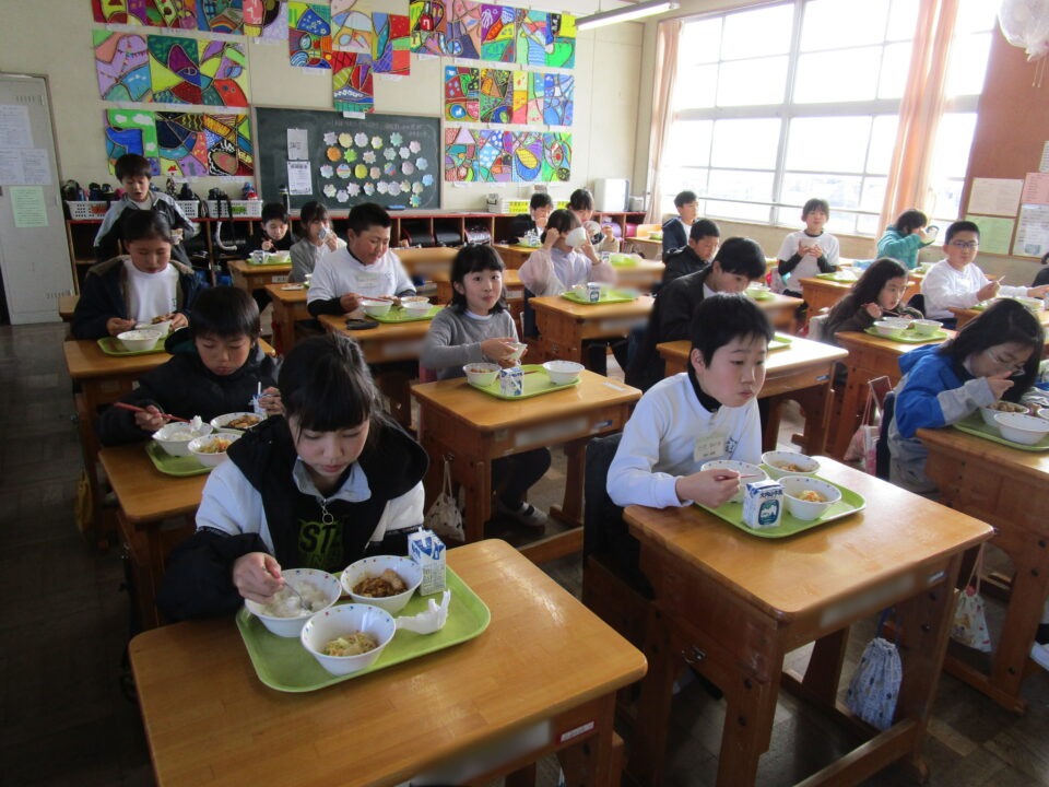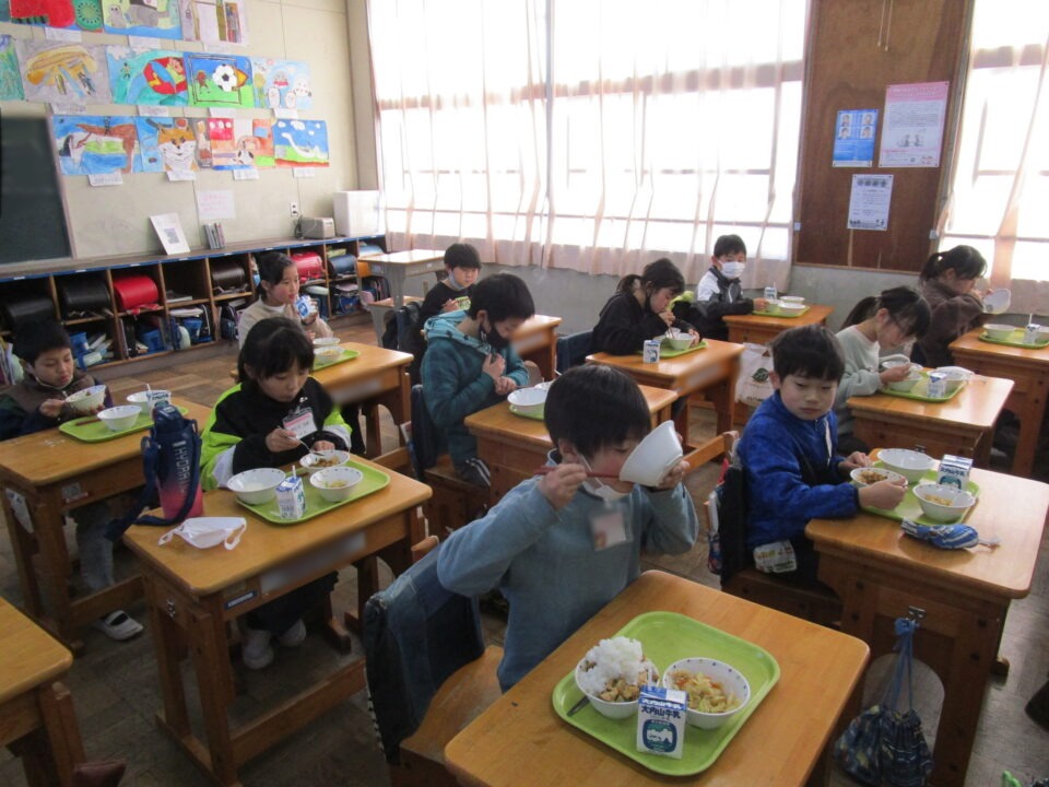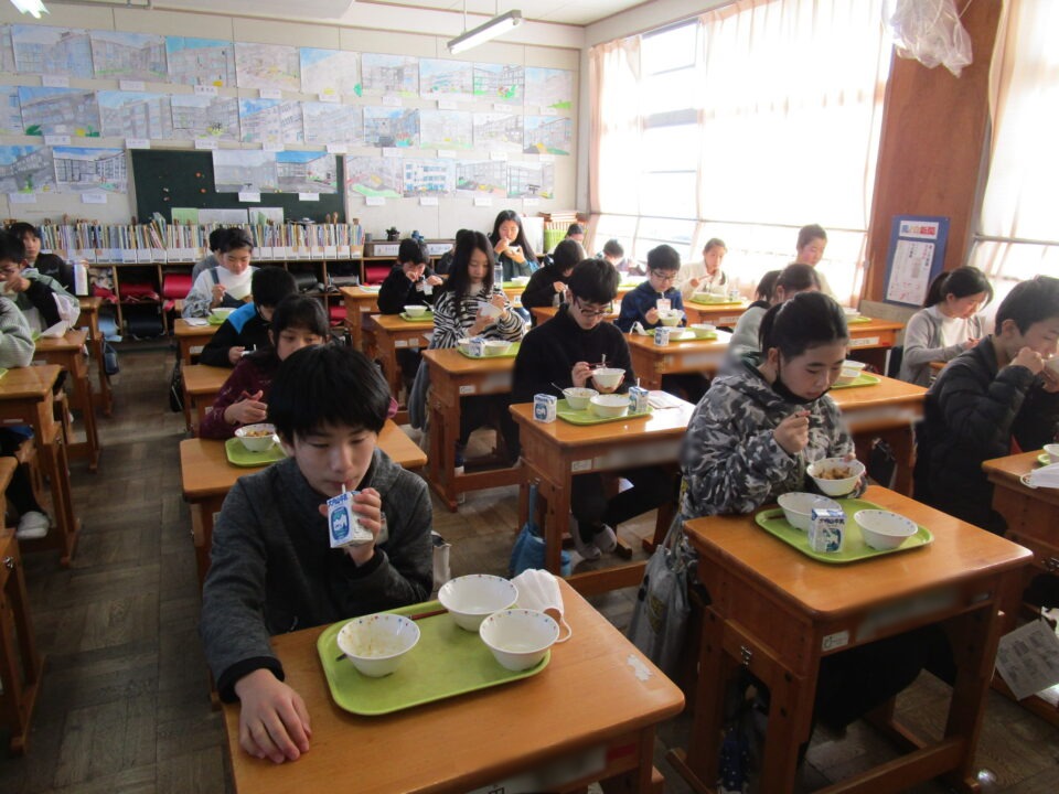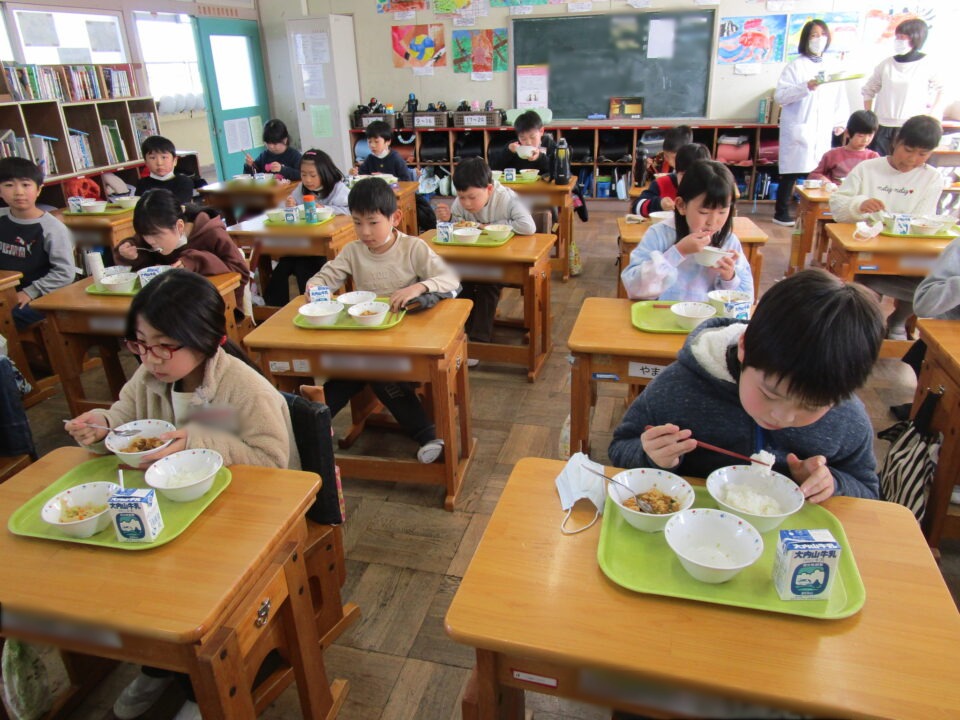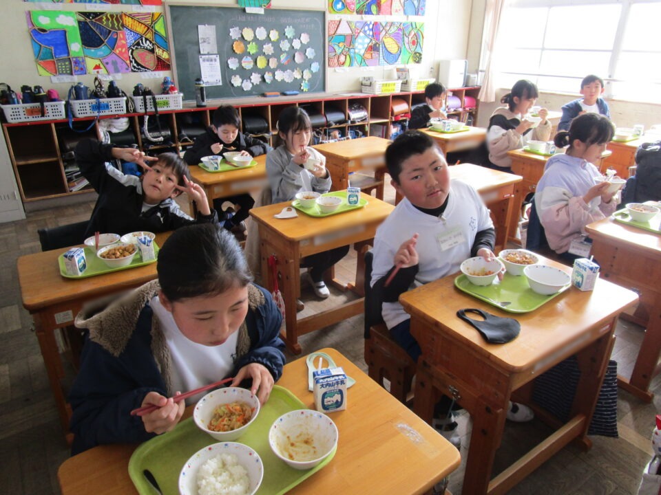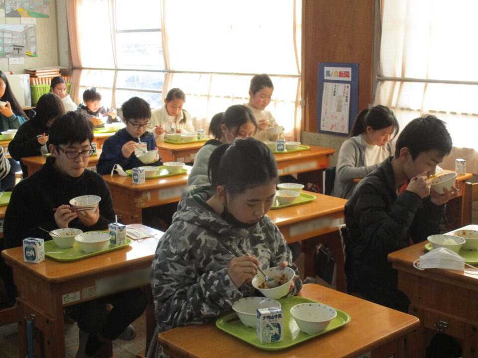 学校では、黙食にしております。おかわりをする際は、マスクをしてもらいに行き、教職員が配食を致します。