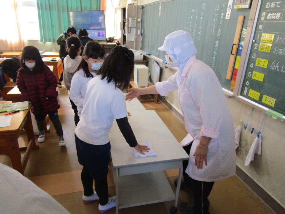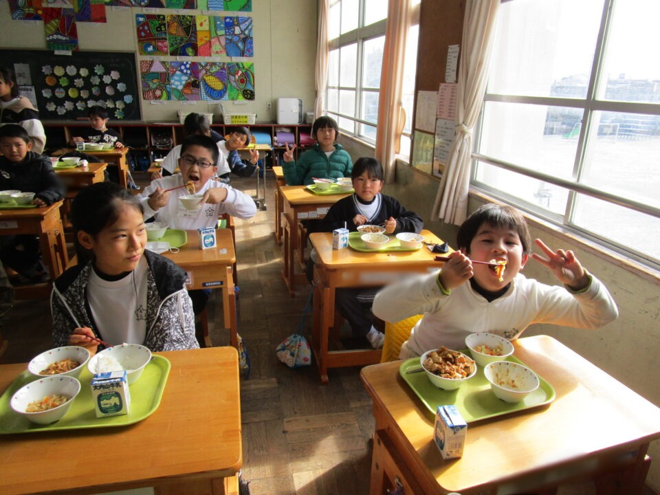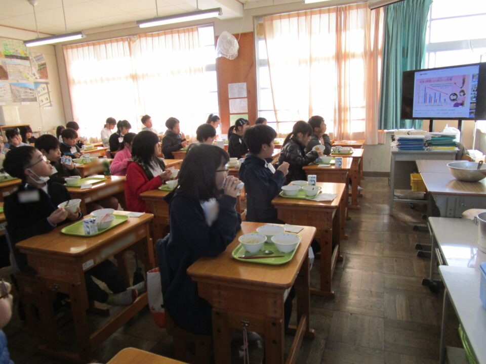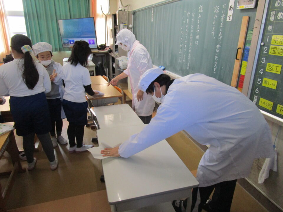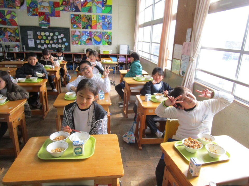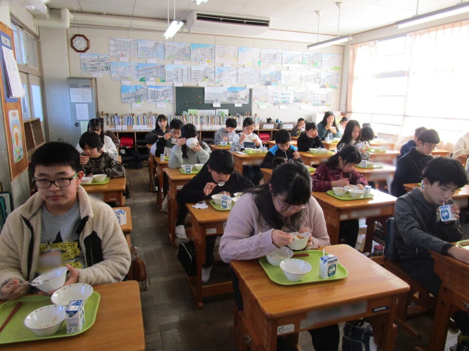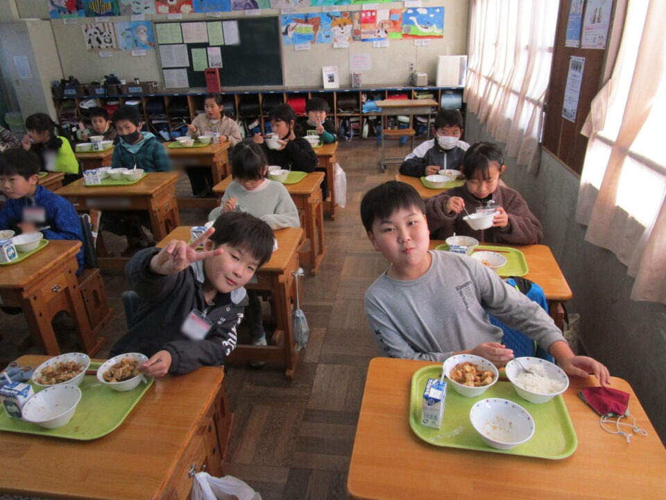 学校では、黙食にしております。おかわりをする際は、マスクをしてもらいに行き、教職員が配食を致します。